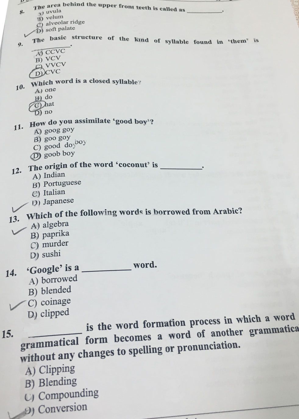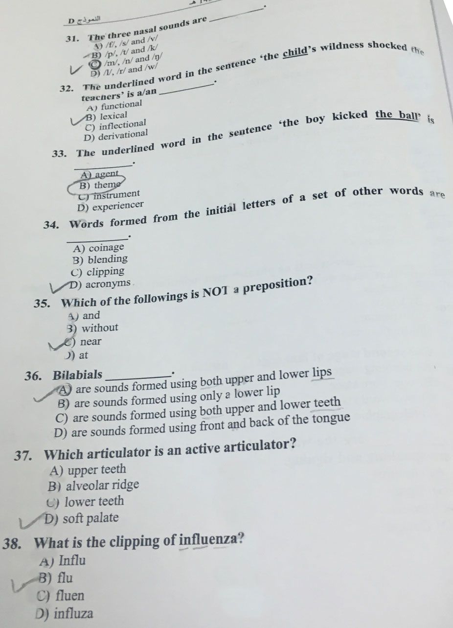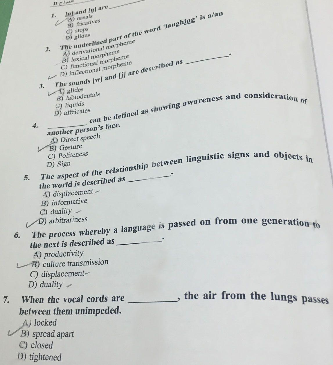 اختبار مدخل إلى اللغويات الفصل الأول 1437هـ نموذج D