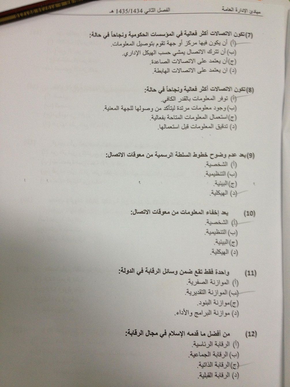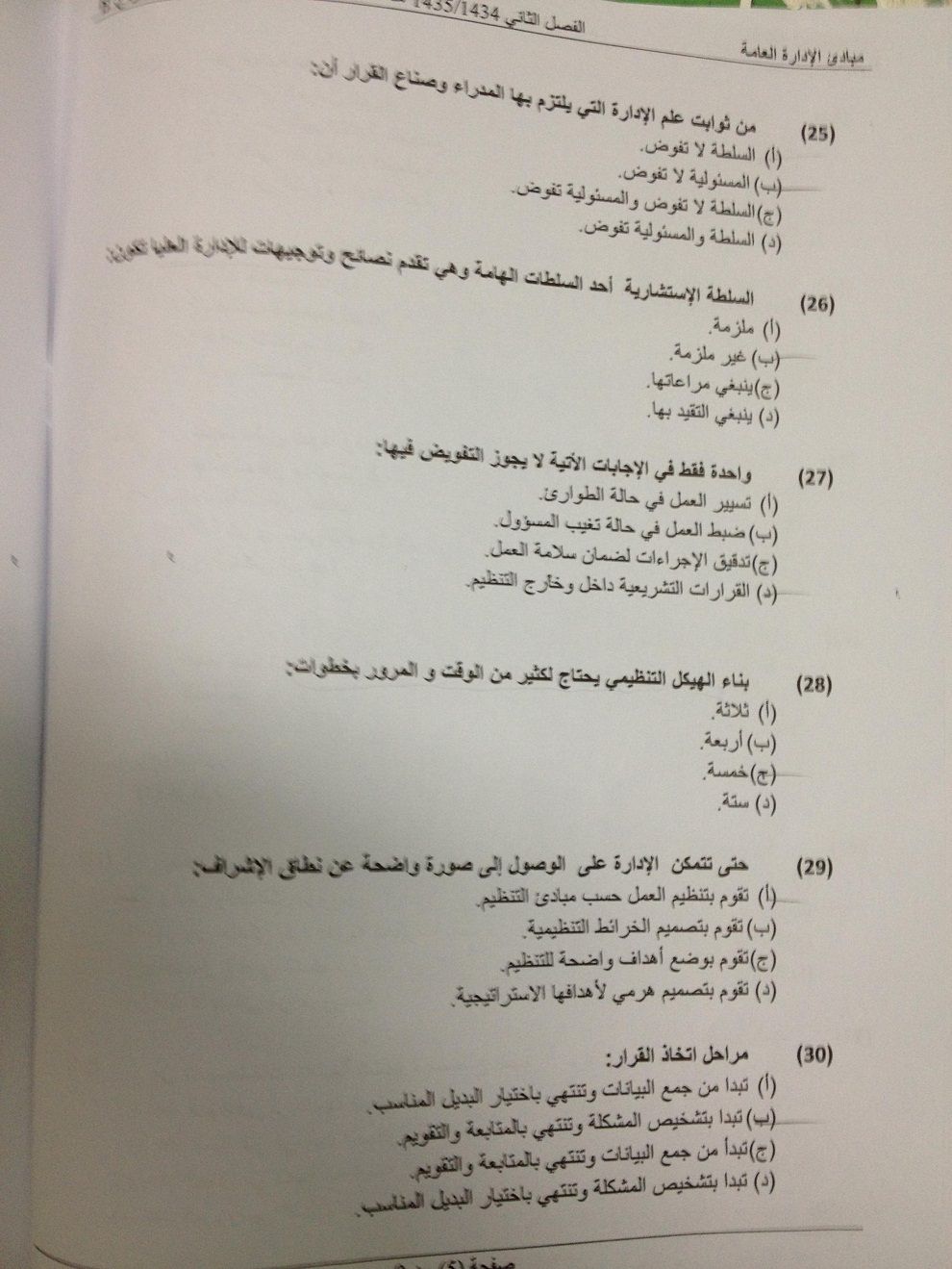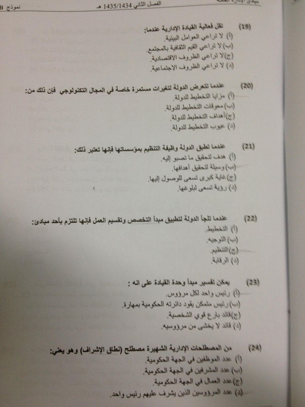 اسئلة اختبار مادة مبادئ الإدارة العامة الفصل الدراسي الثاني 1435هـ نموذج (b)