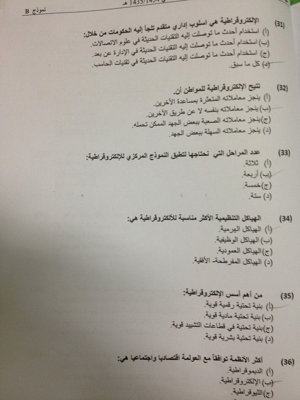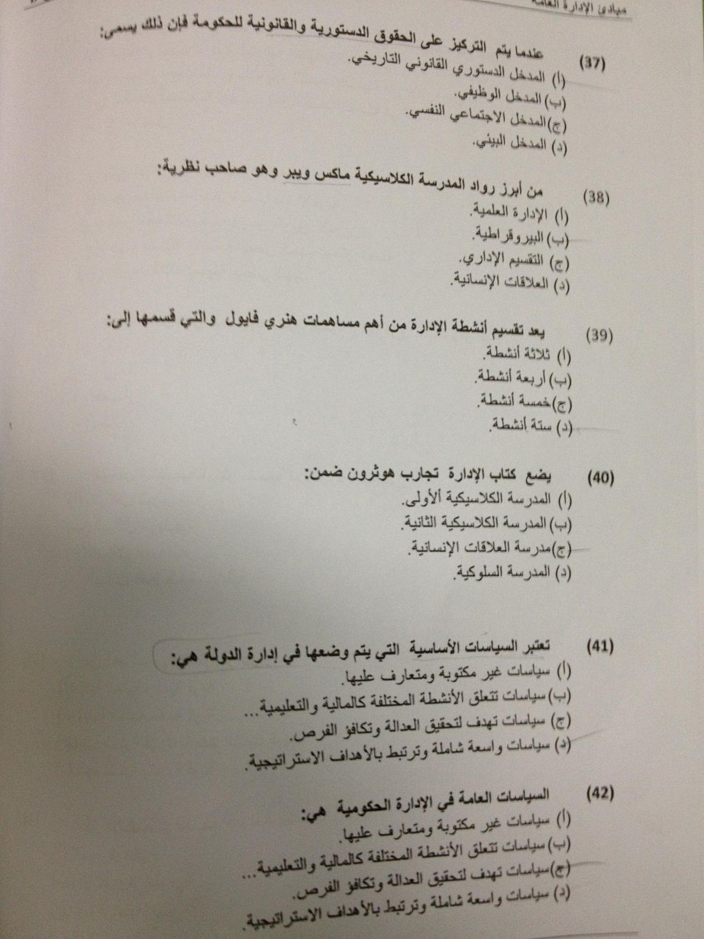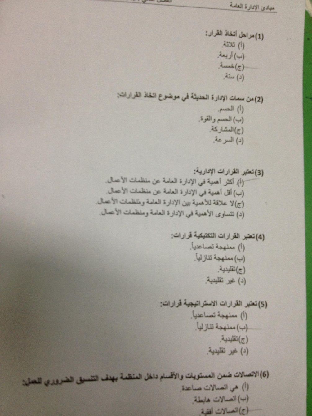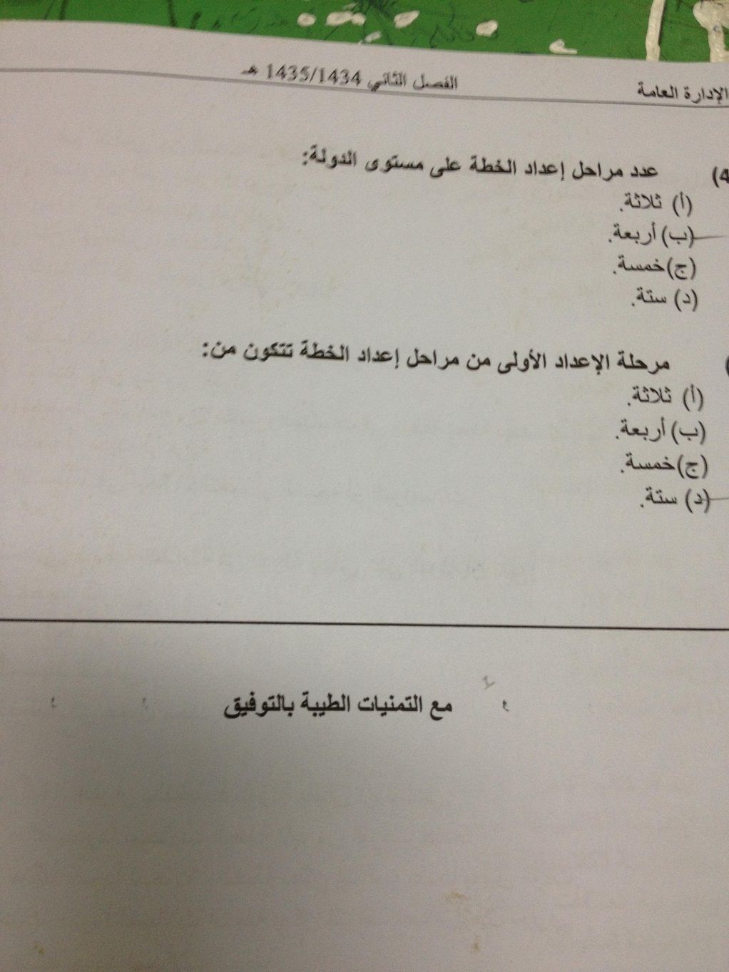 اسئلة اختبار مادة مبادئ الإدارة العامة الفصل الدراسي الثاني 1435هـ نموذج (b)
