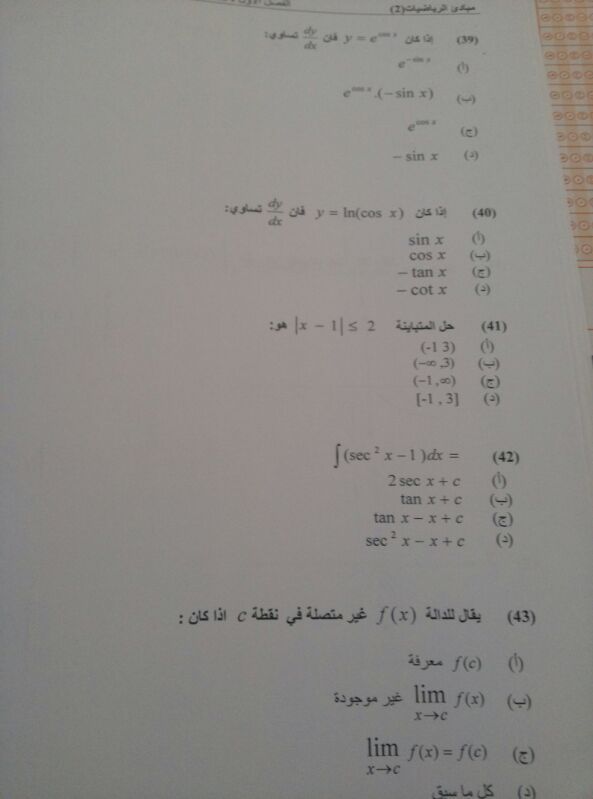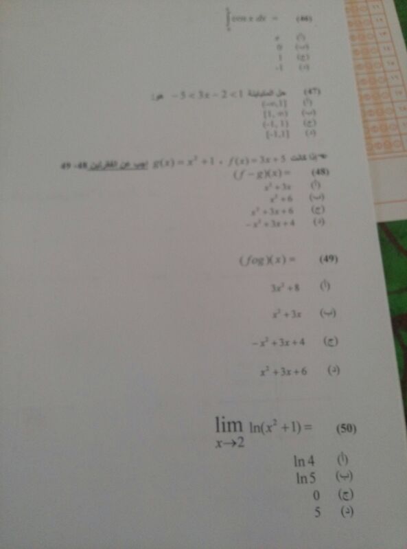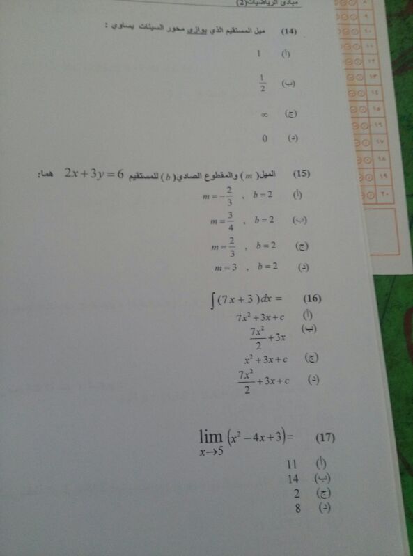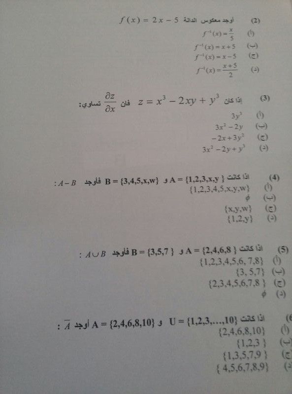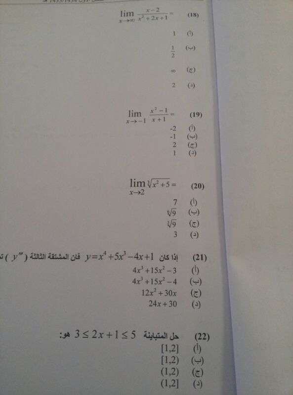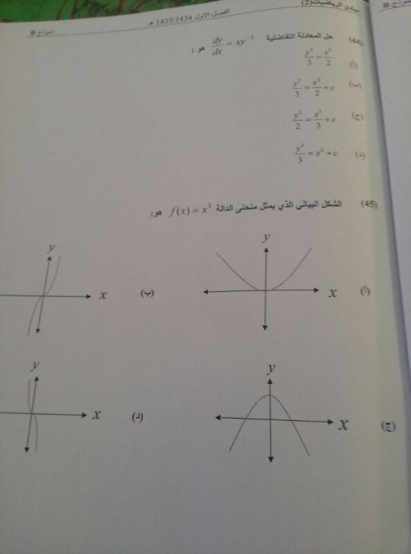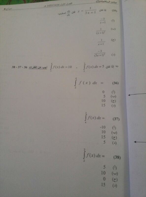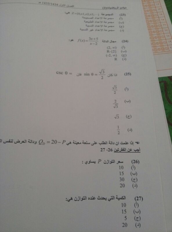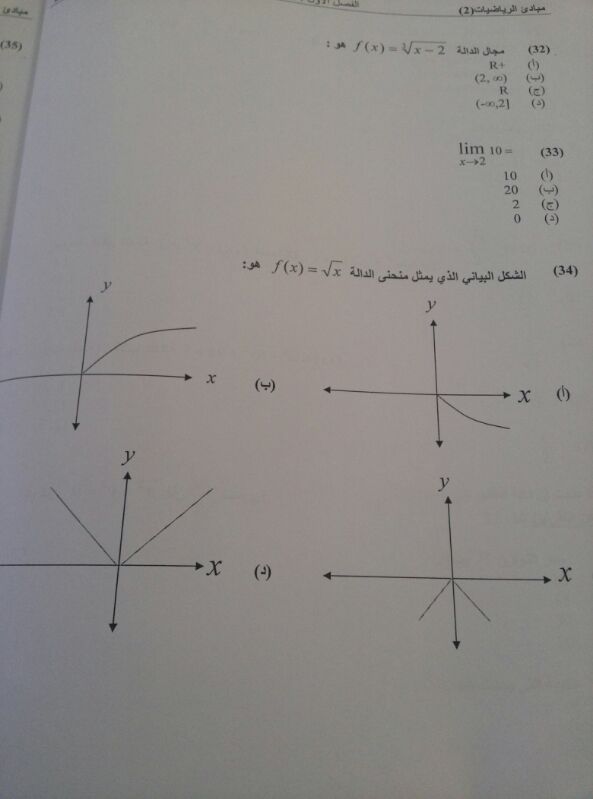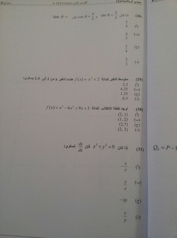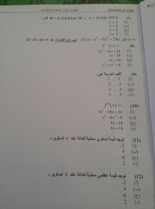 اسئلة اختبار مادة مبادئ الرياضيات 2 الفصل الدراسي الأول 1435هـ نموذج (b)
