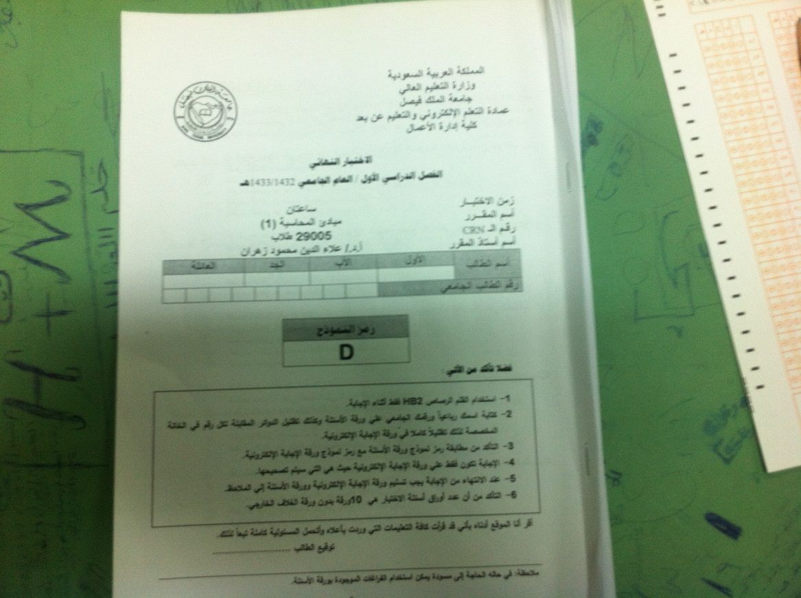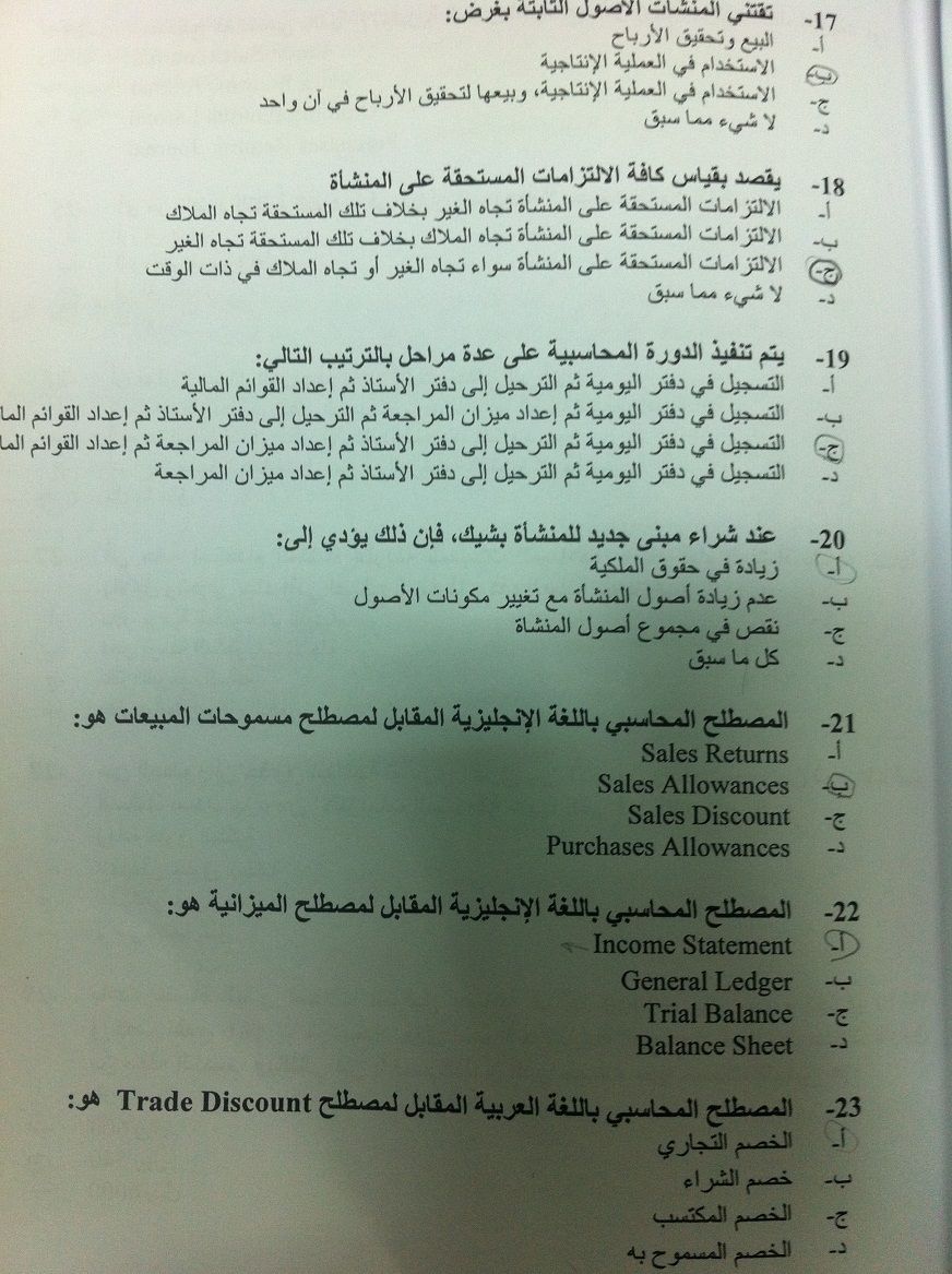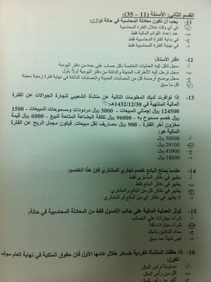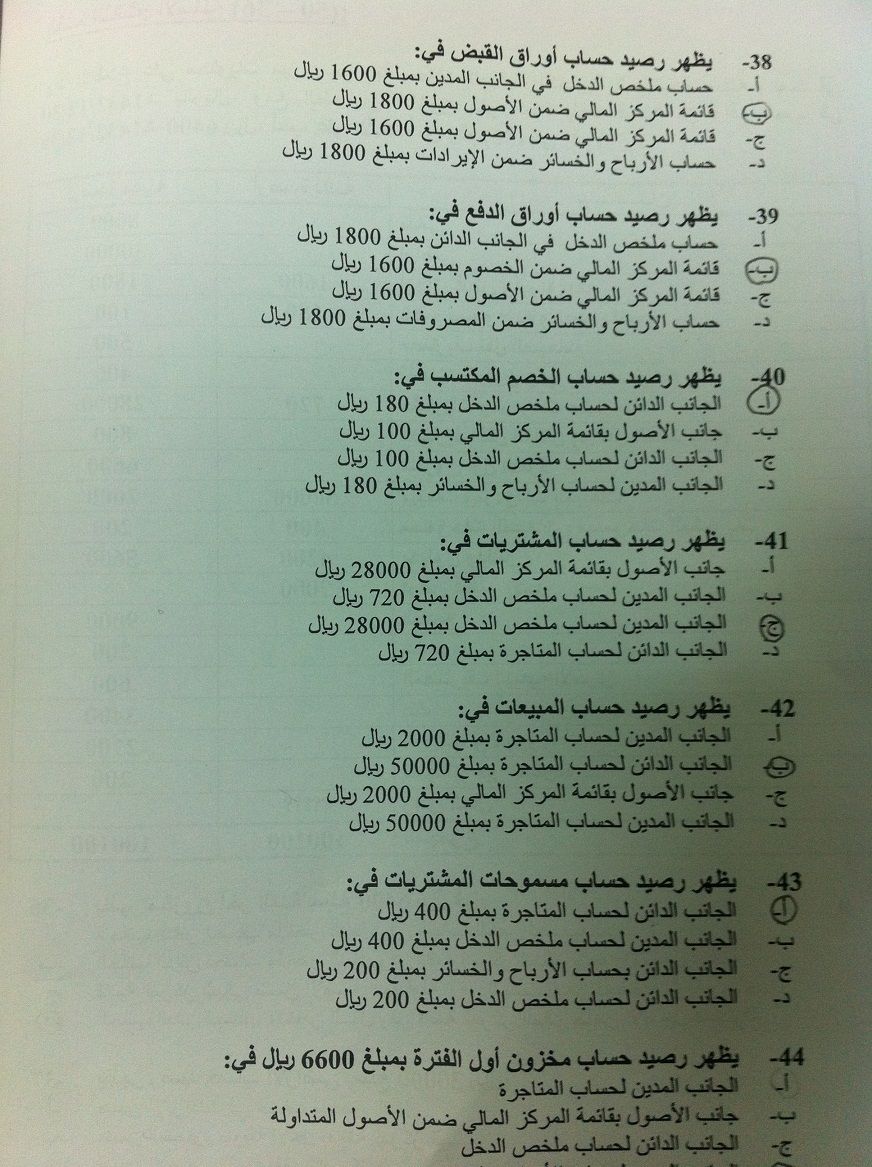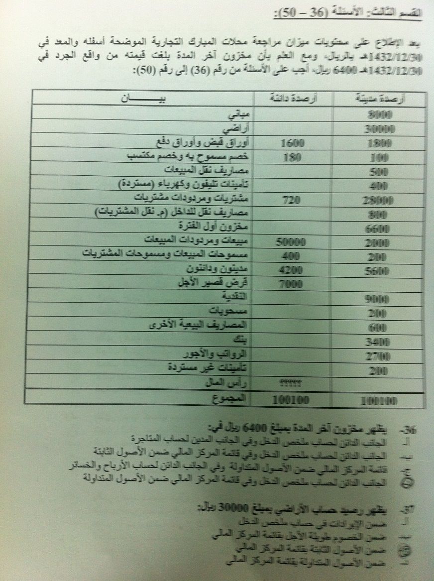 اسئلة اختبار مادة مبادئ المحاسبة 1 الفصل الدراسي الأول 1433هـ نموذج (d)