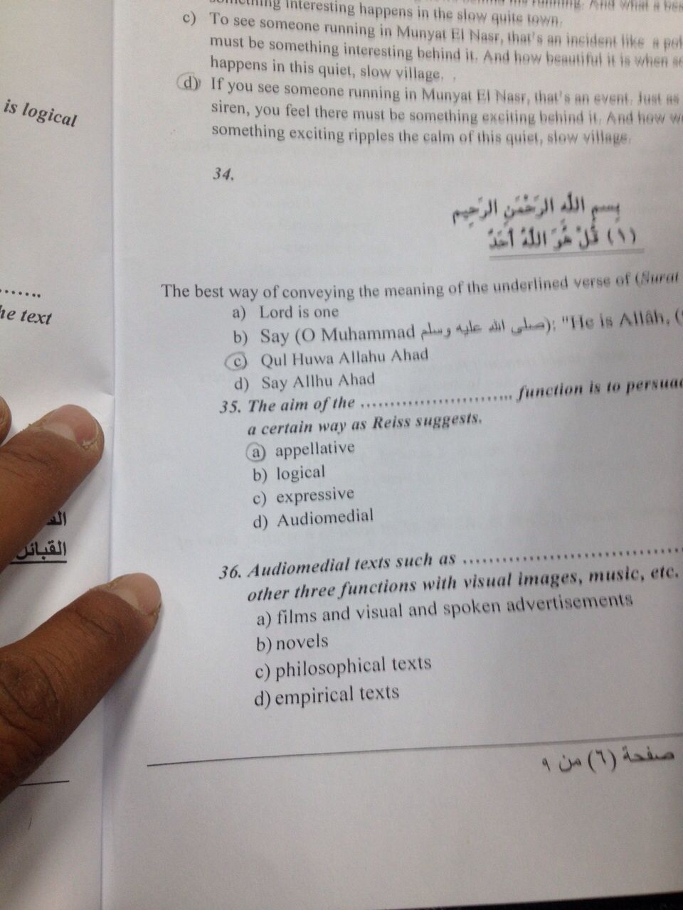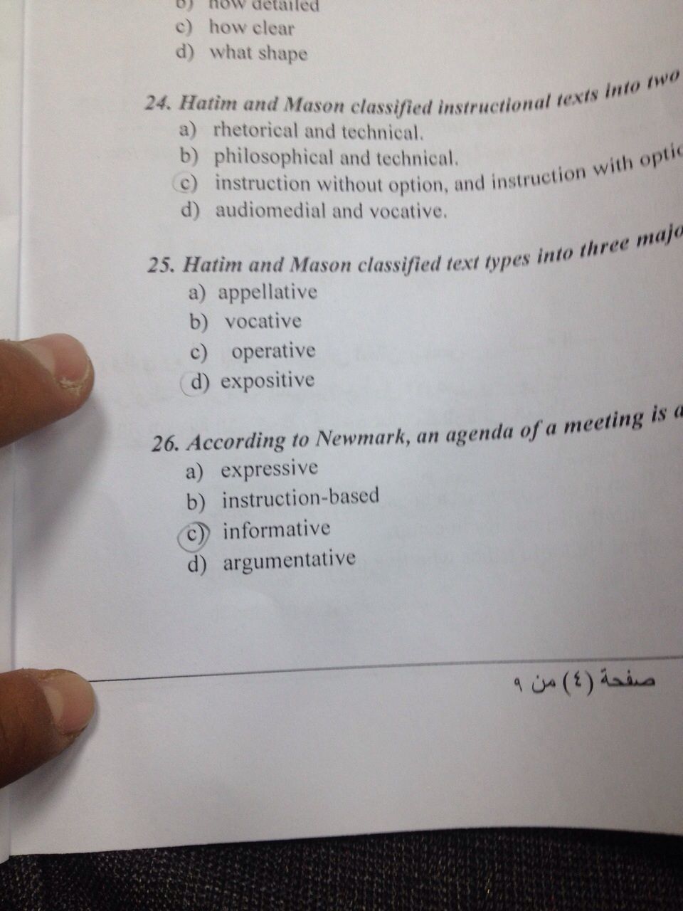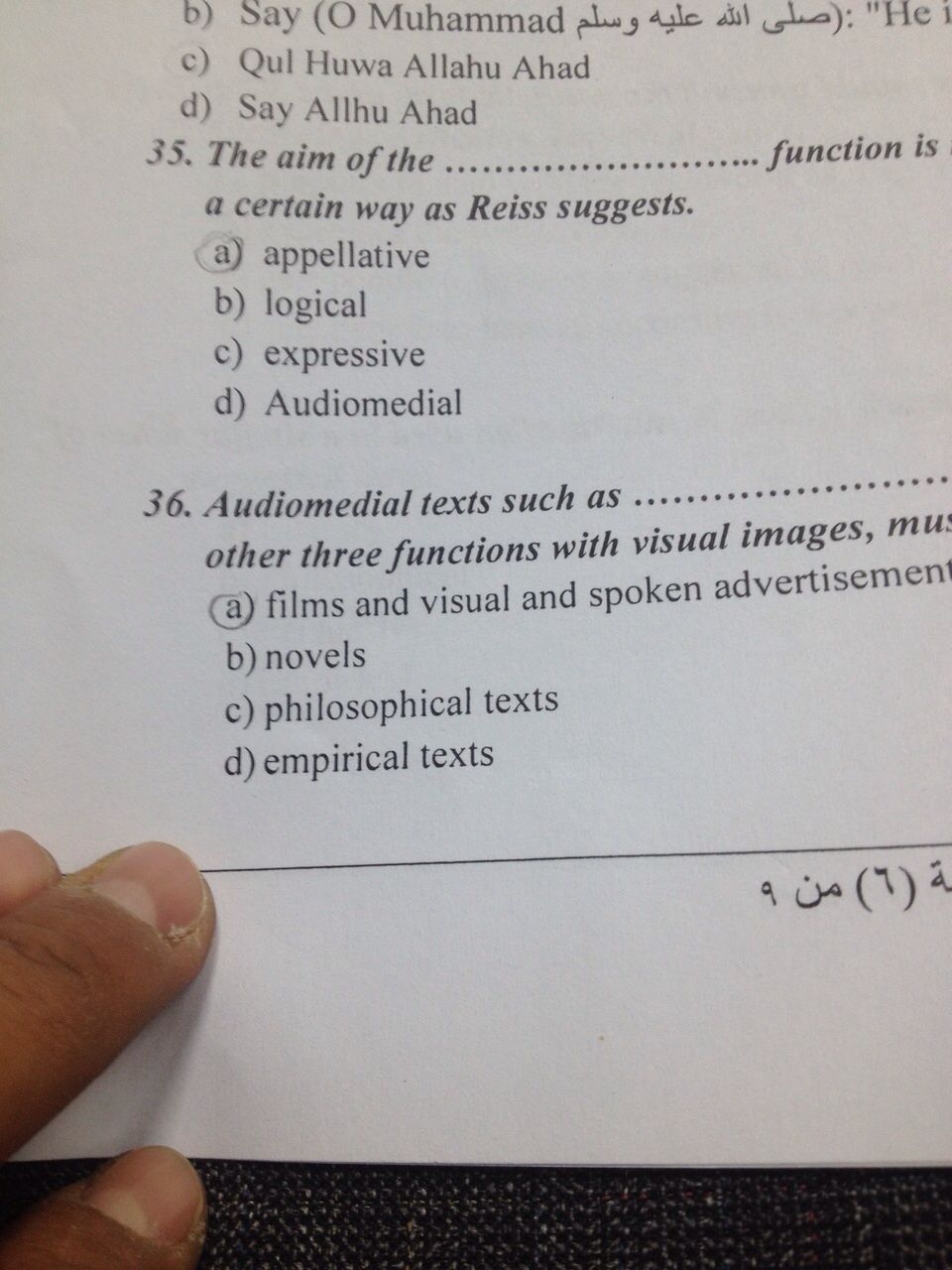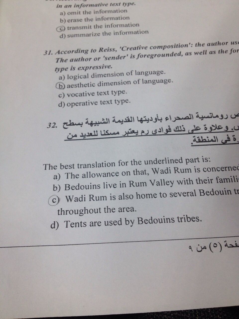 اسئلة اختبار ترجمة الأنماط النصية الفصل الأول 1436هـ نموذج (D)