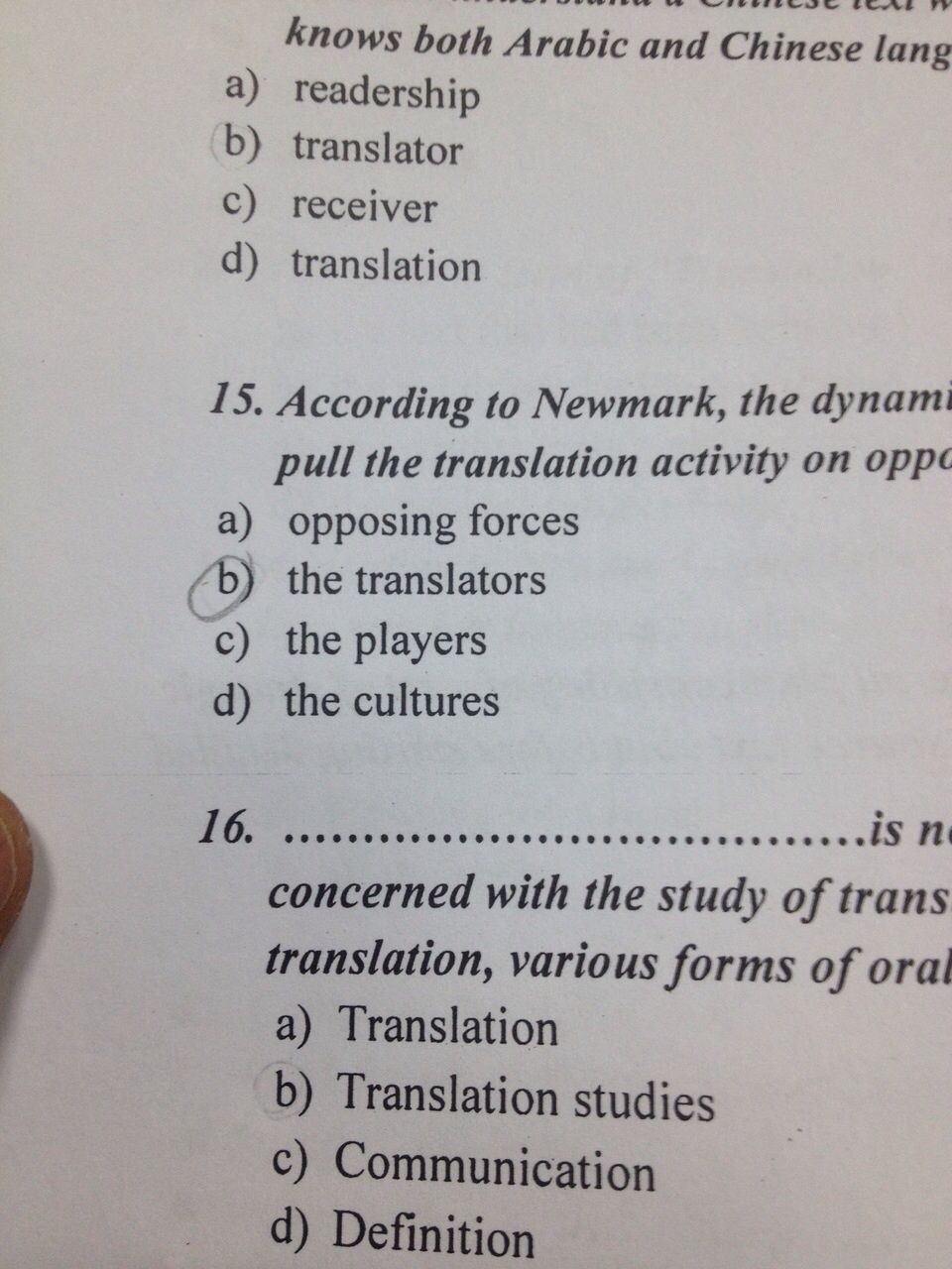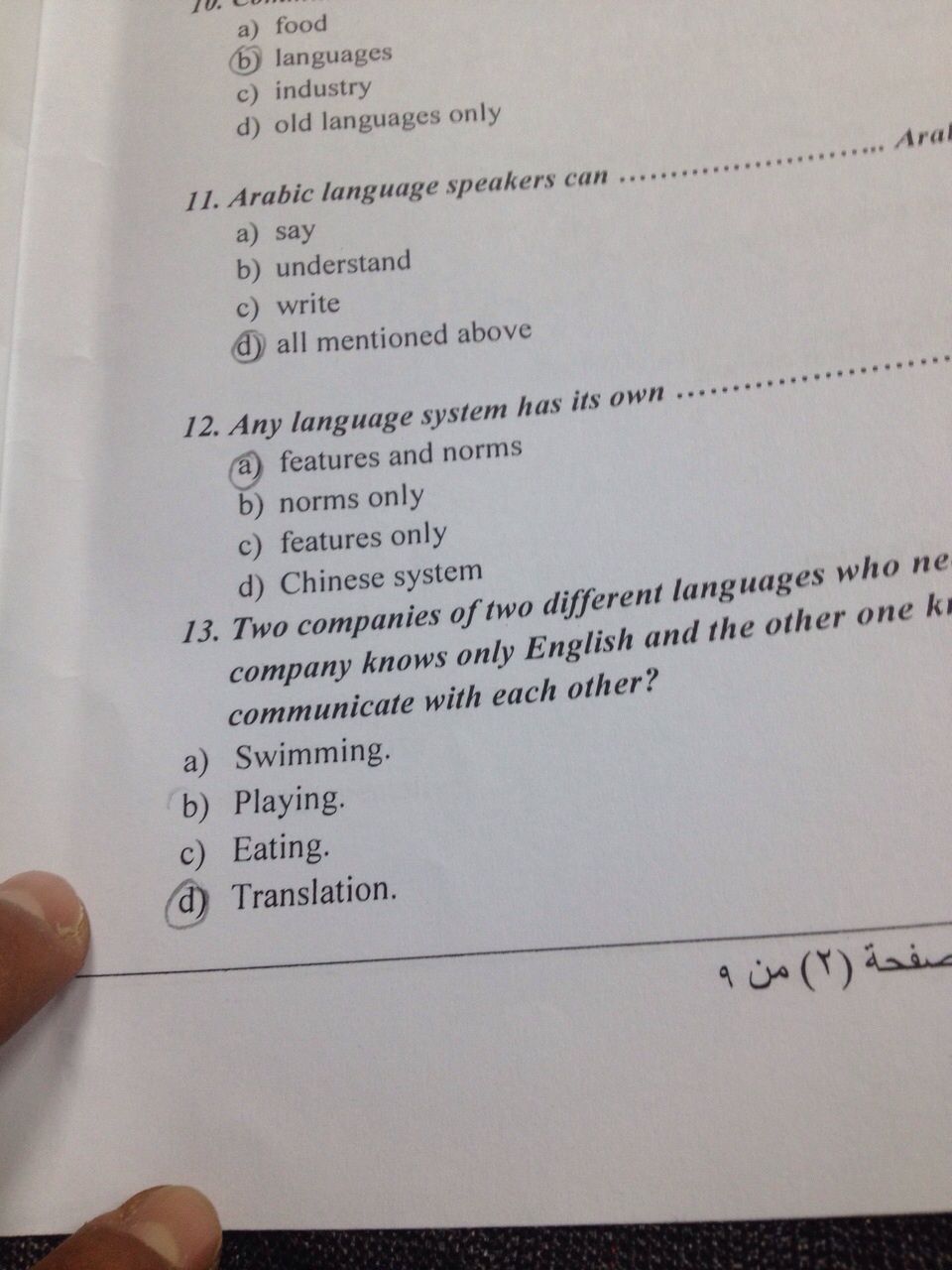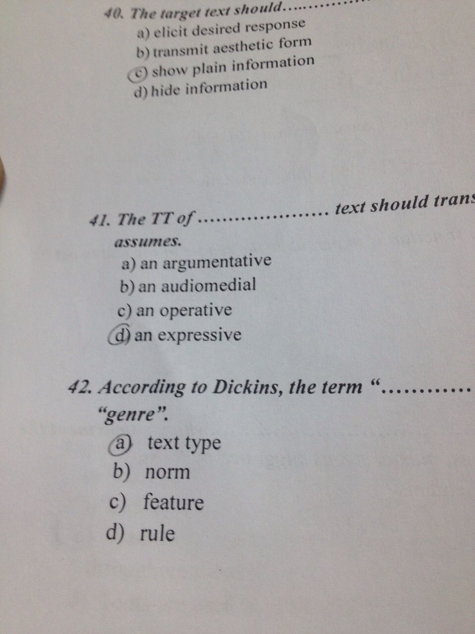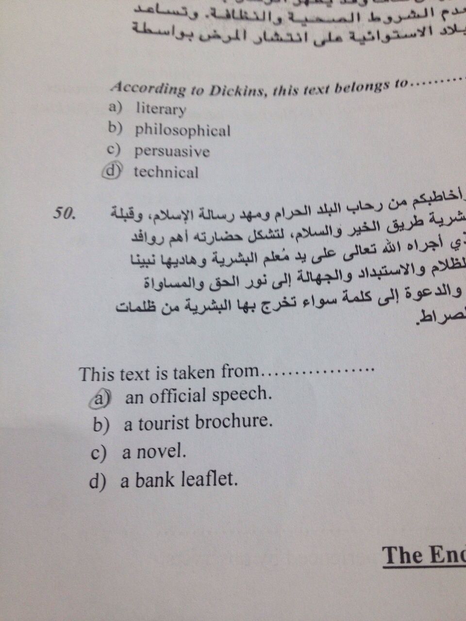 اسئلة اختبار ترجمة الأنماط النصية الفصل الأول 1436هـ نموذج (D)