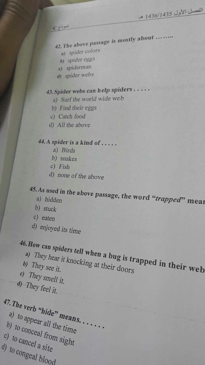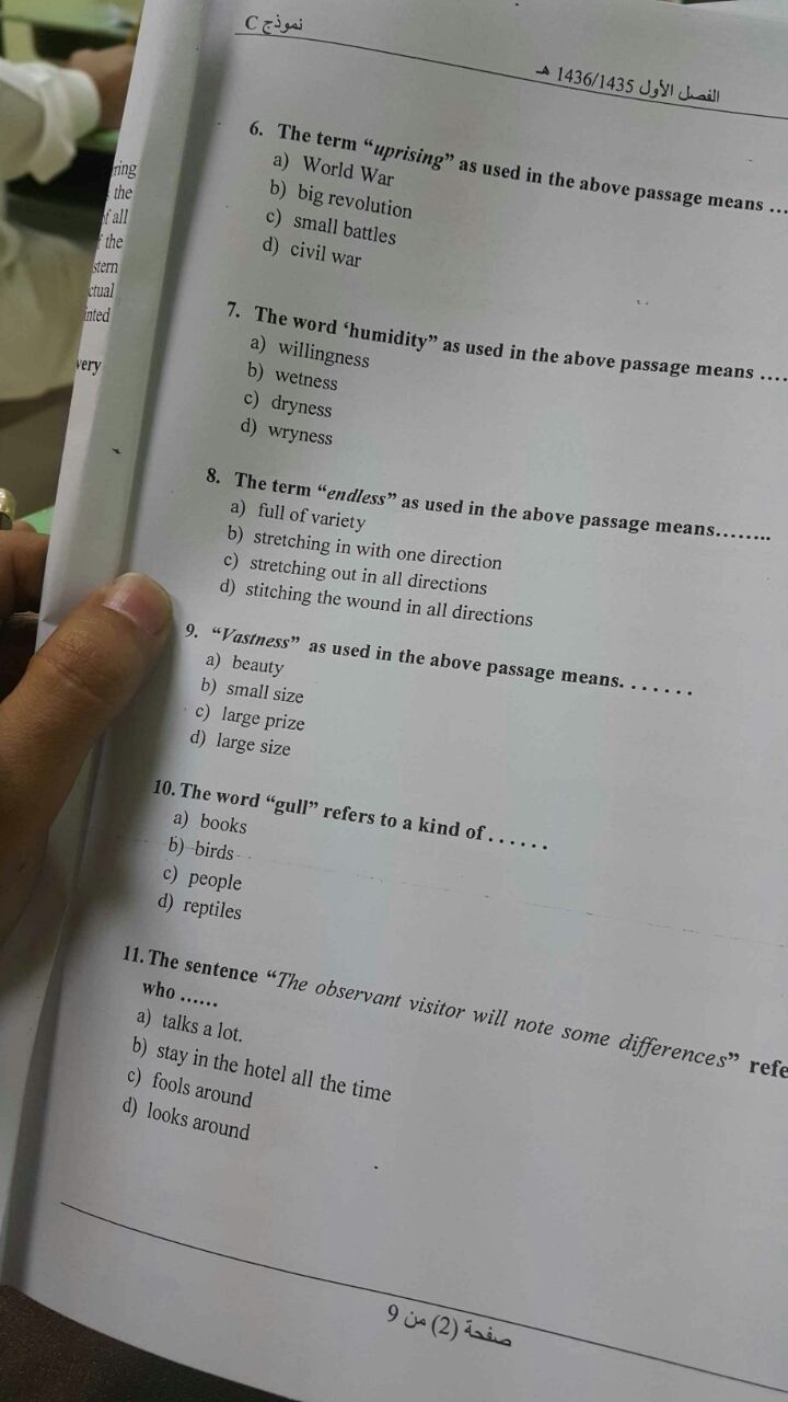 اسئلة اختبار النثر الإنجليزي الفصل الأول 1436هـ نموذج (C)