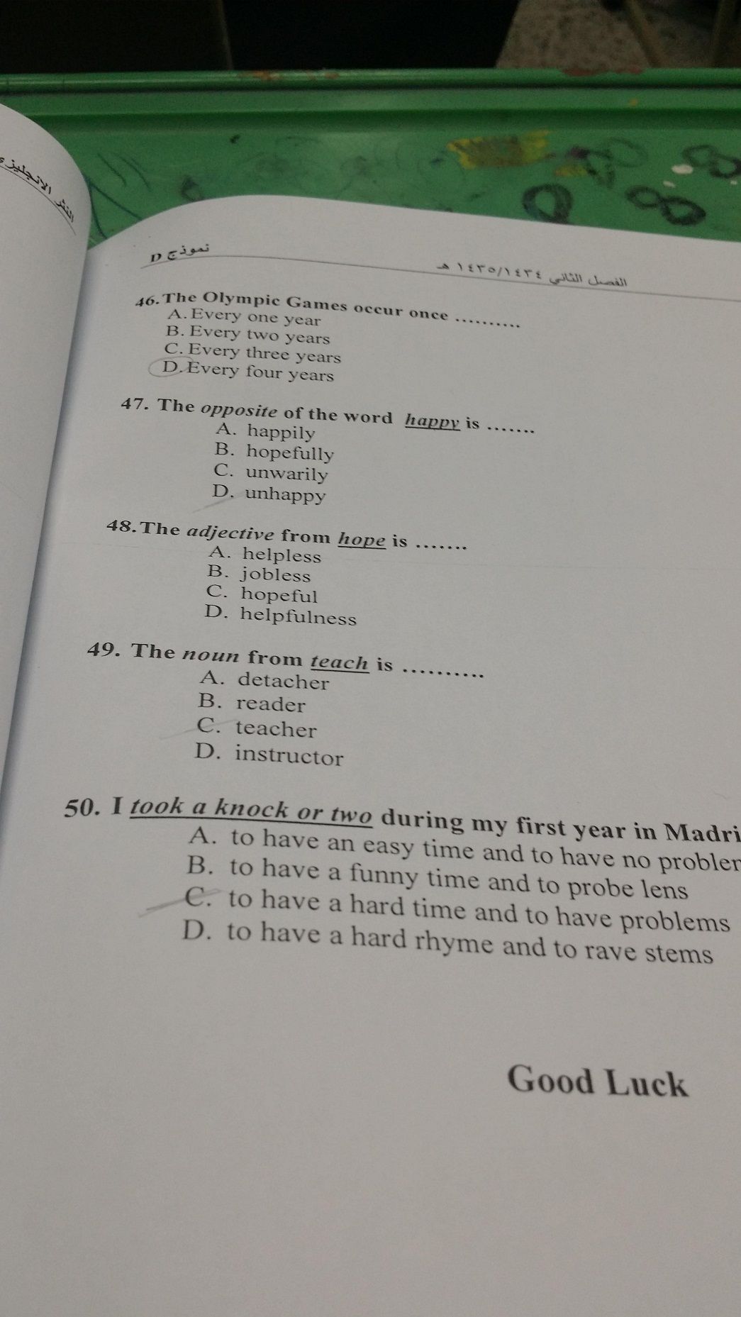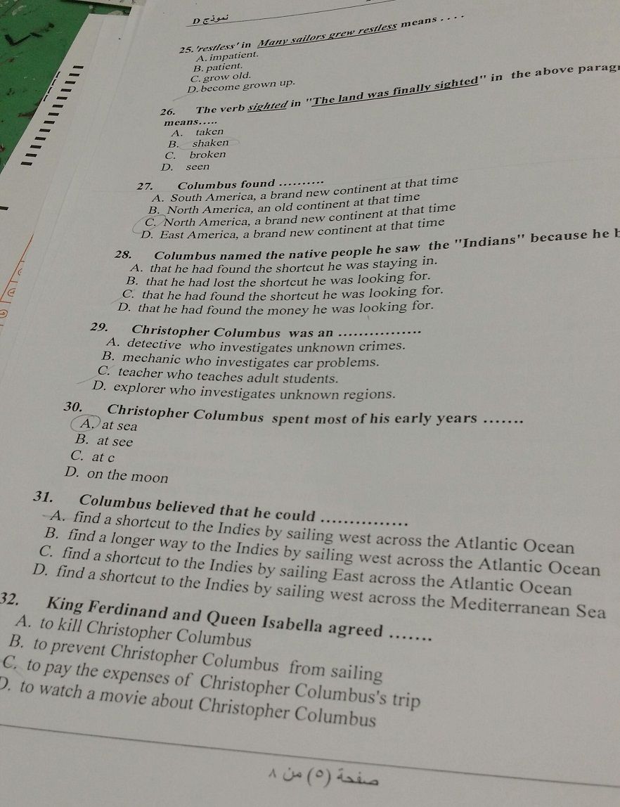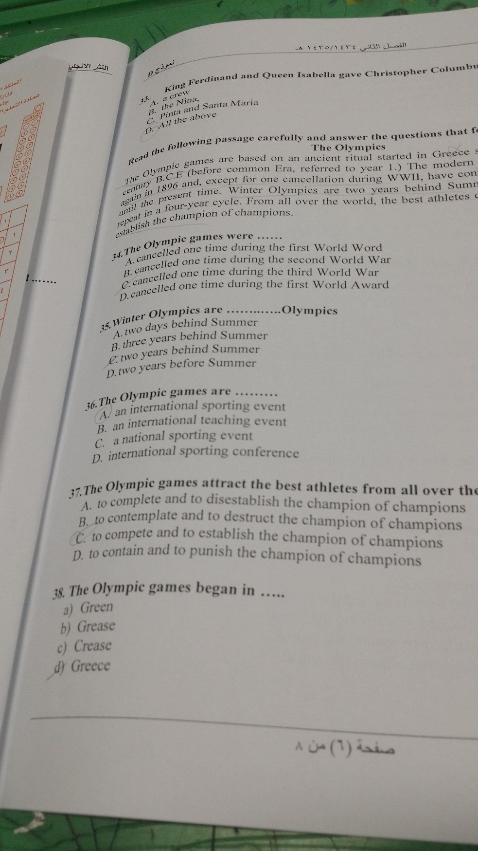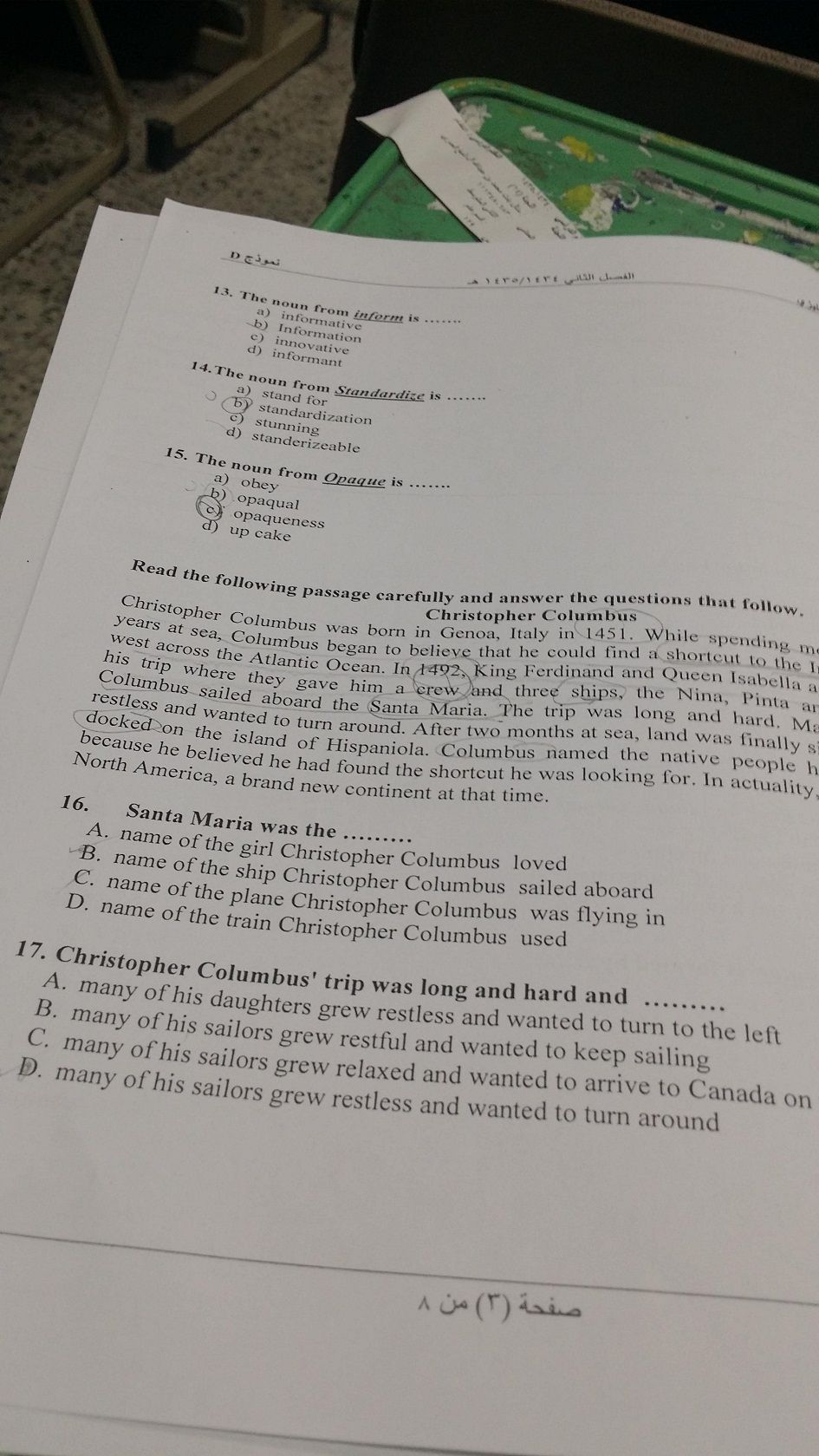 اسئلة اختبار مادة النثر الإنجليزي كتابة الفصل الثاني 1435هـ نموذج (d)