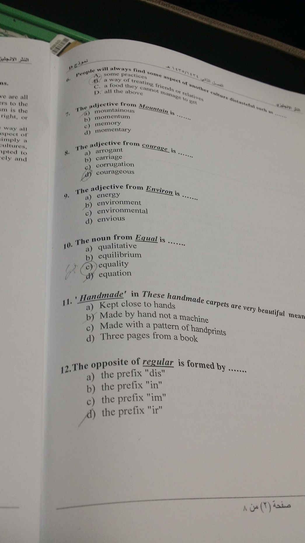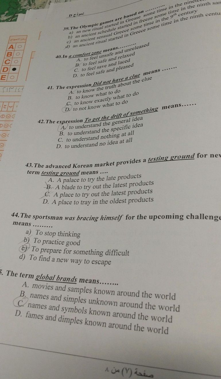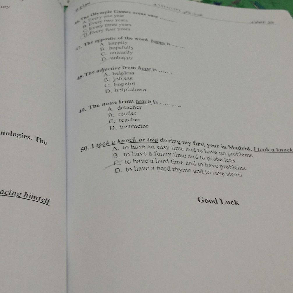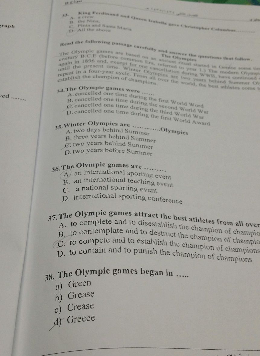 اسئلة اختبار مادة النثر الإنجليزي كتابة الفصل الثاني 1435هـ نموذج (d)