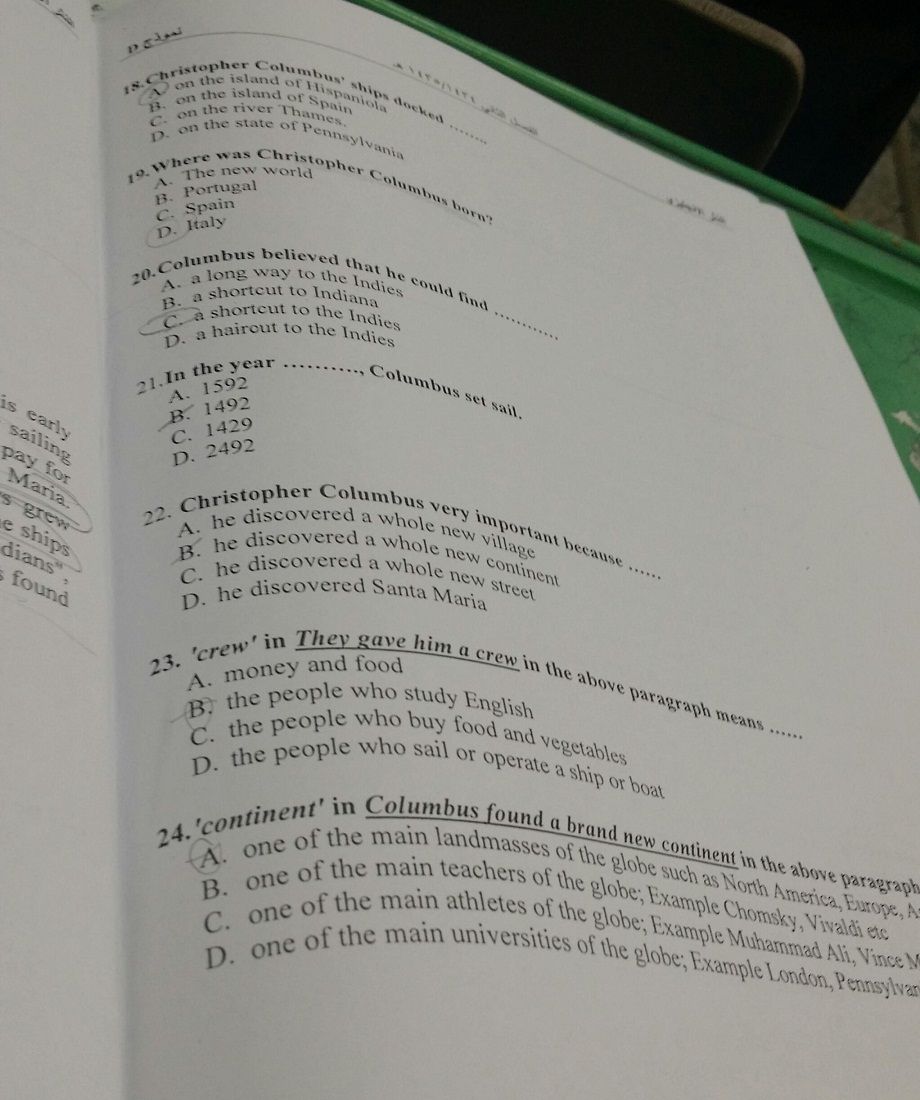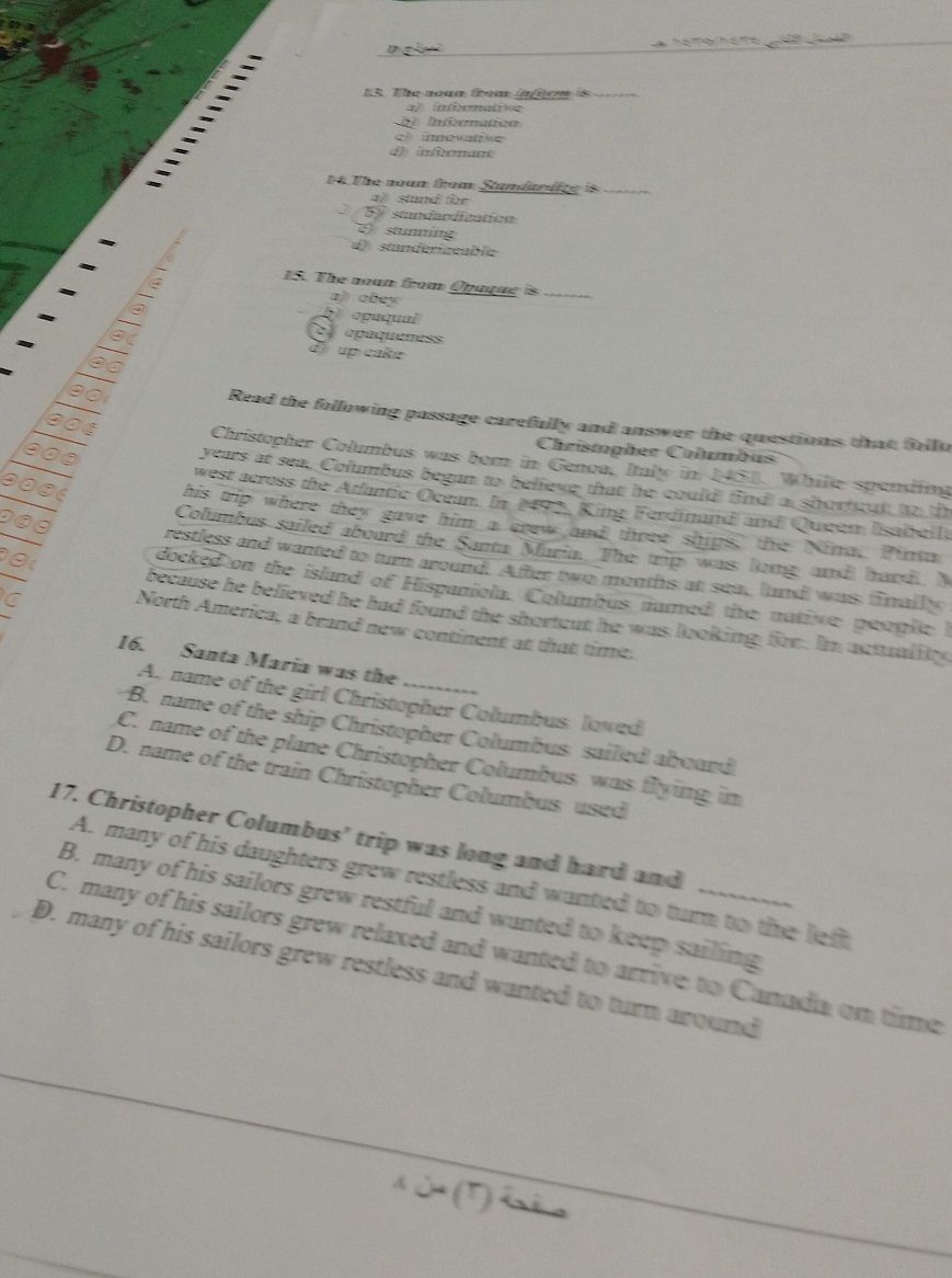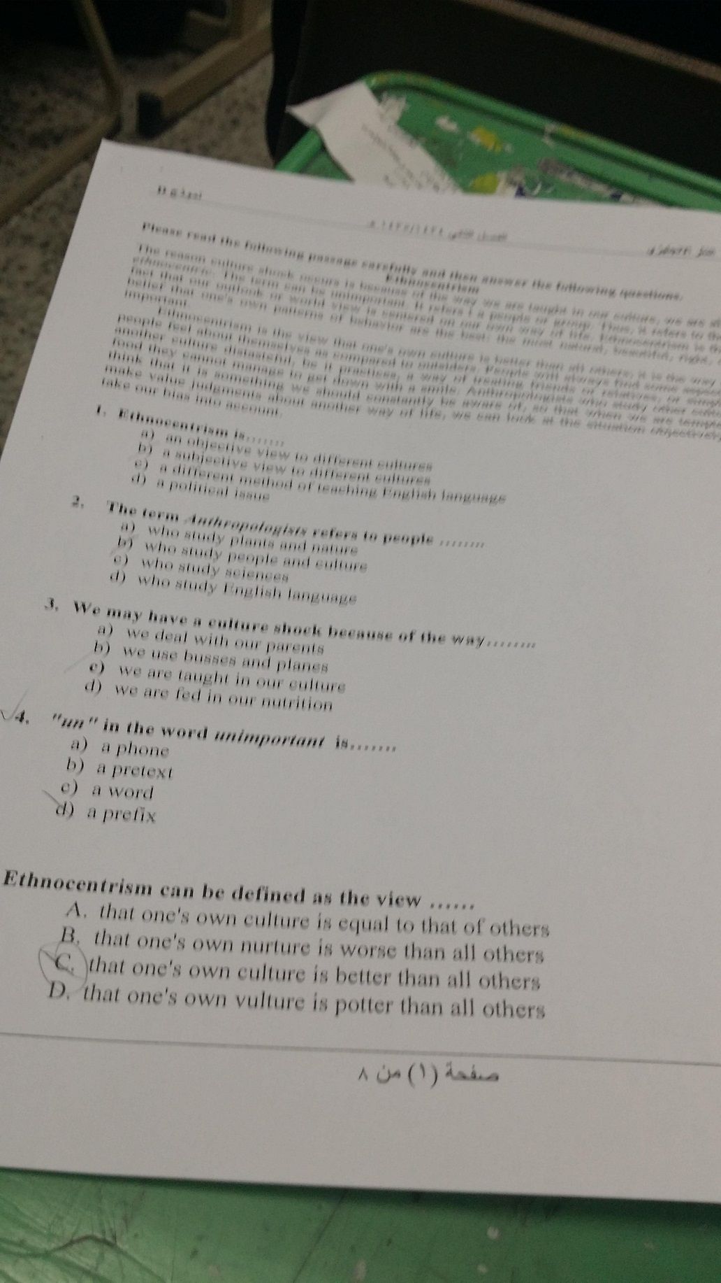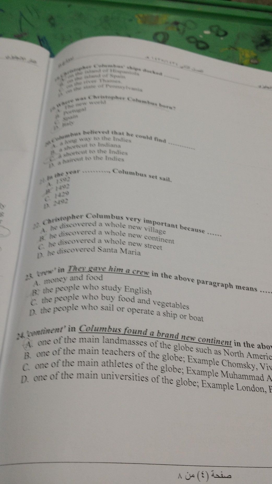 اسئلة اختبار مادة النثر الإنجليزي كتابة الفصل الثاني 1435هـ نموذج (d)
