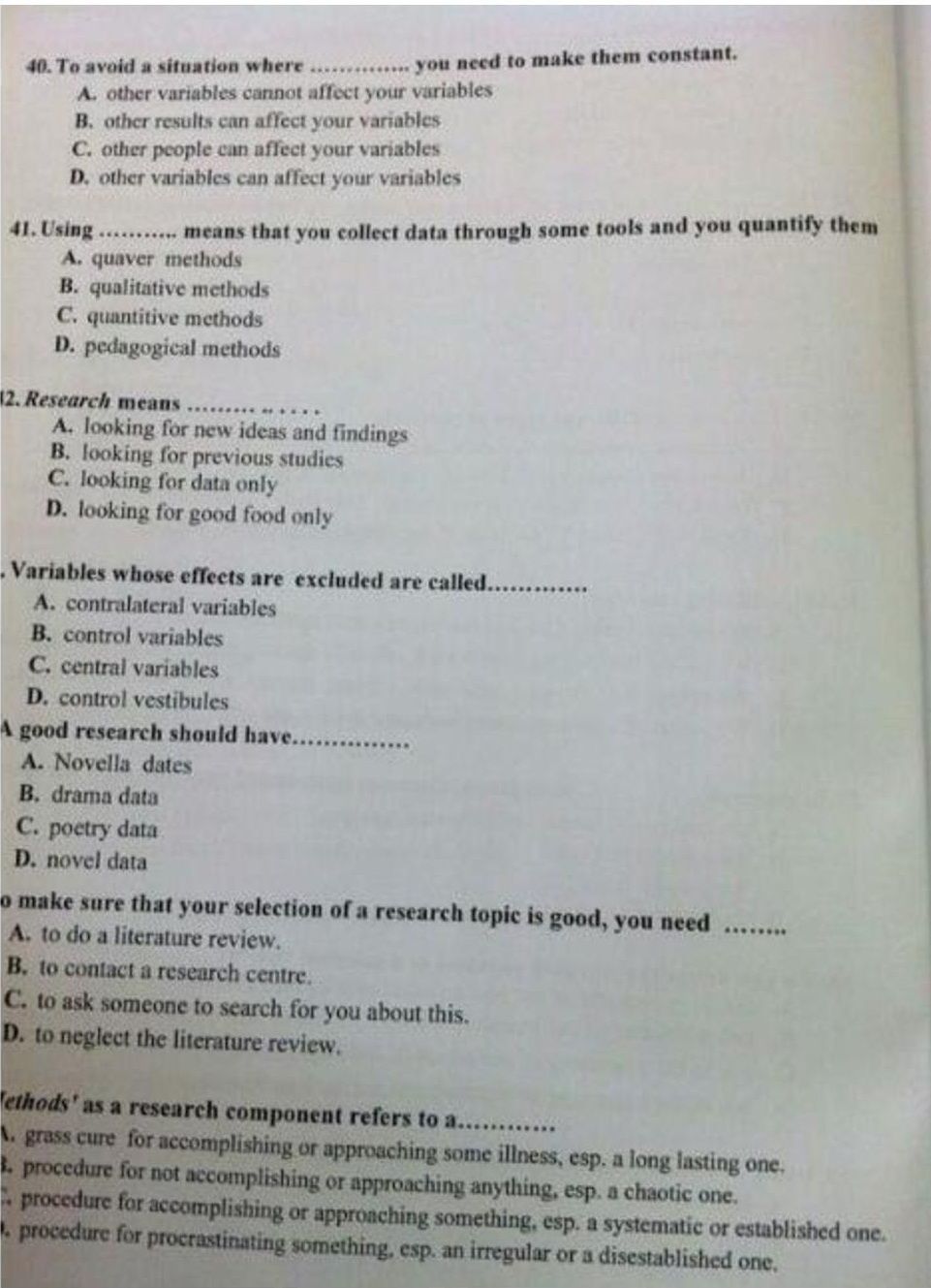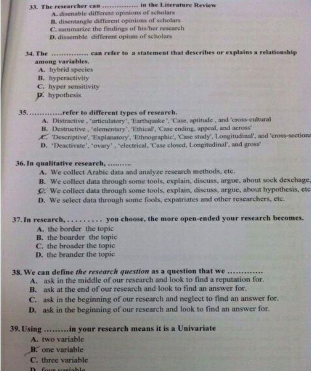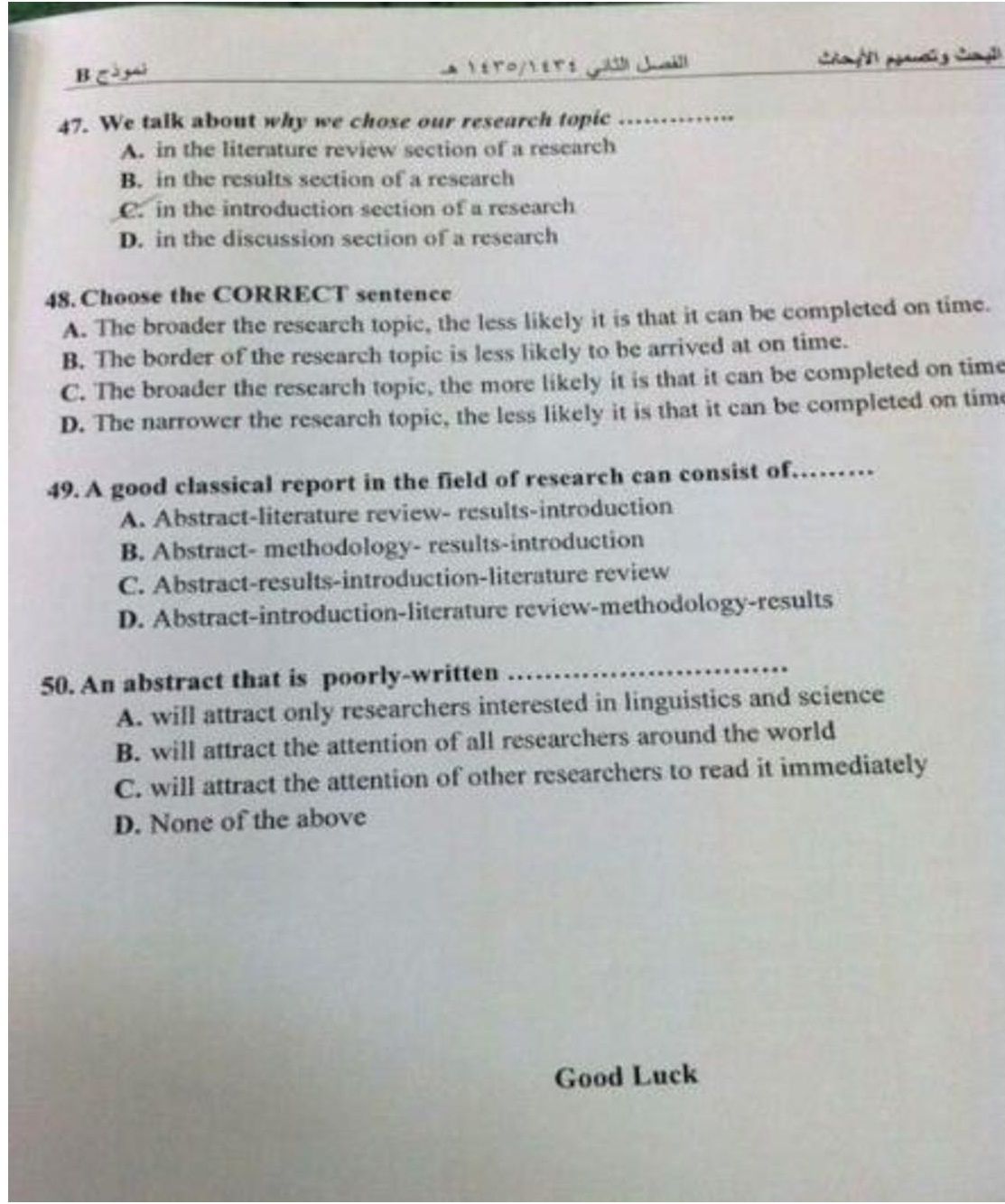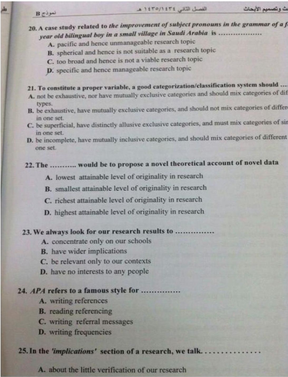 اسئلة اختبار طرق البحث وتصميم الأبحاث الفصل الثاني 1435هـ نموذج (B)