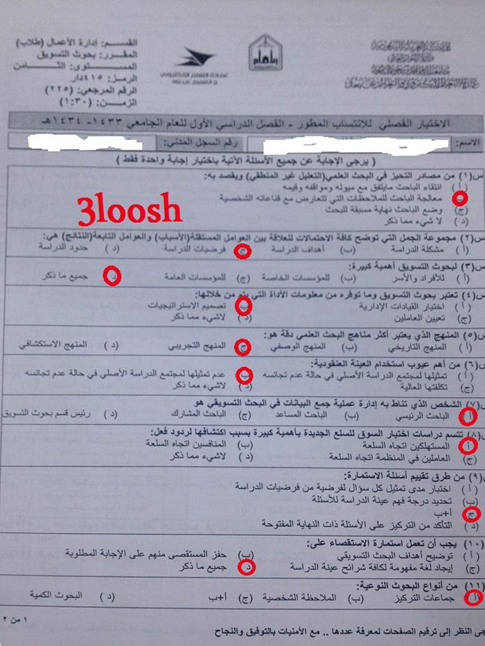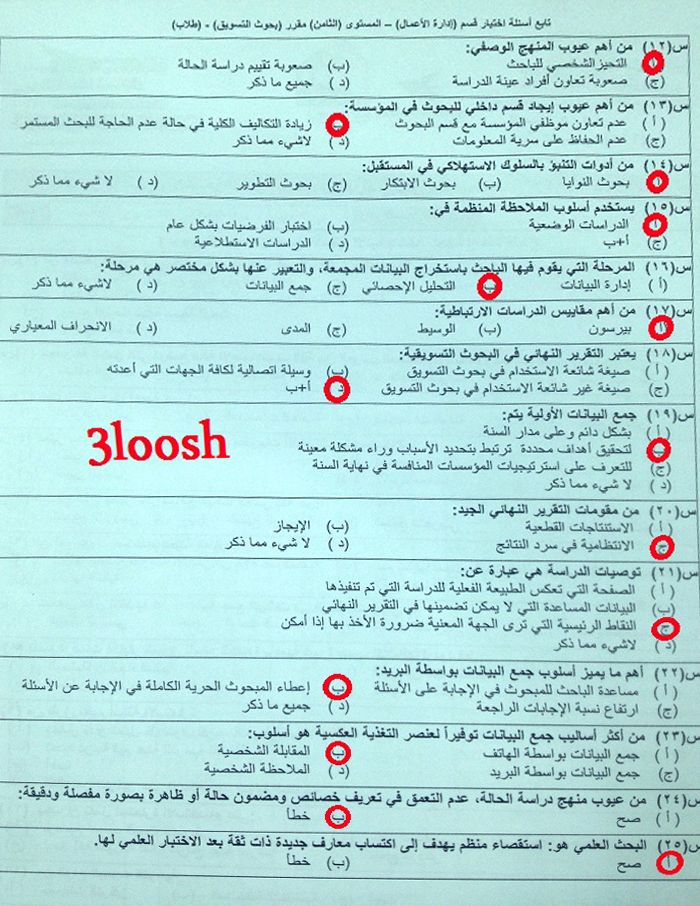 اسئلة مادة إدارة بحوث التسويق دار 415 للإنتساب المطور الفصل الدراسي الأول 1434هـ طلاب