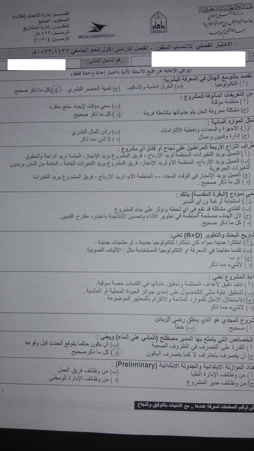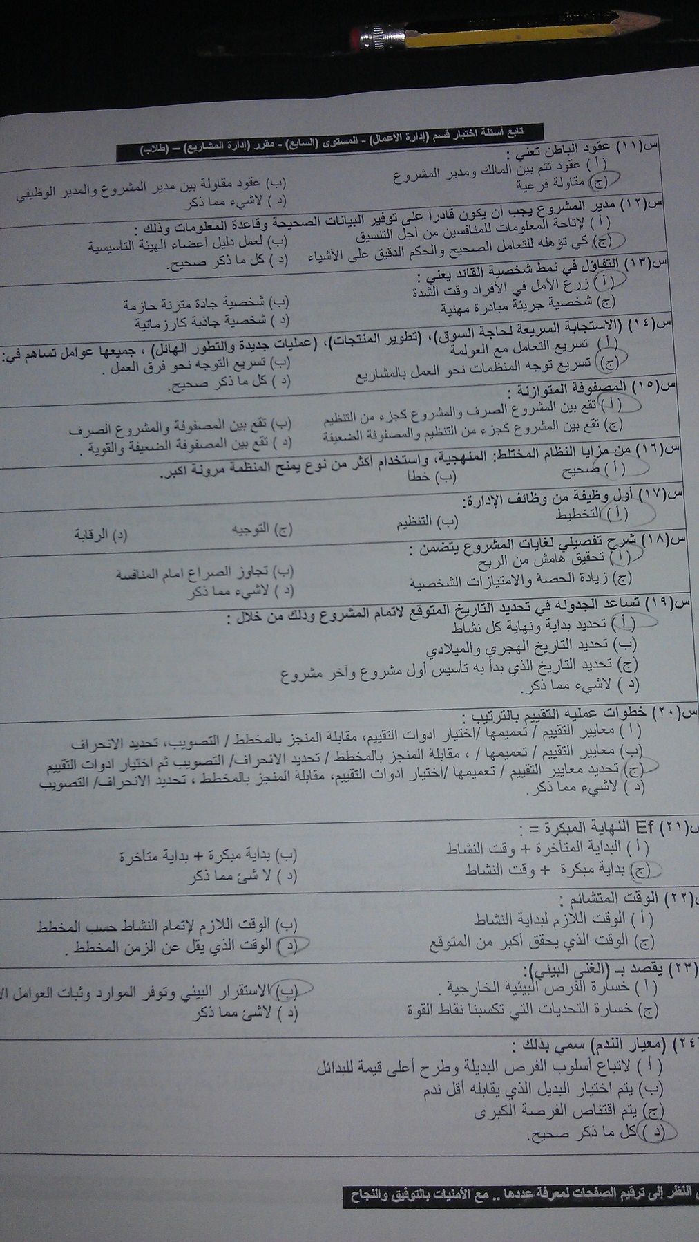اسئلة مادة إدارة المشاريع دار 422 للإنتساب المطور الفصل الدراسي الأول 1433هـ طلاب