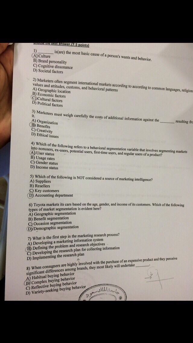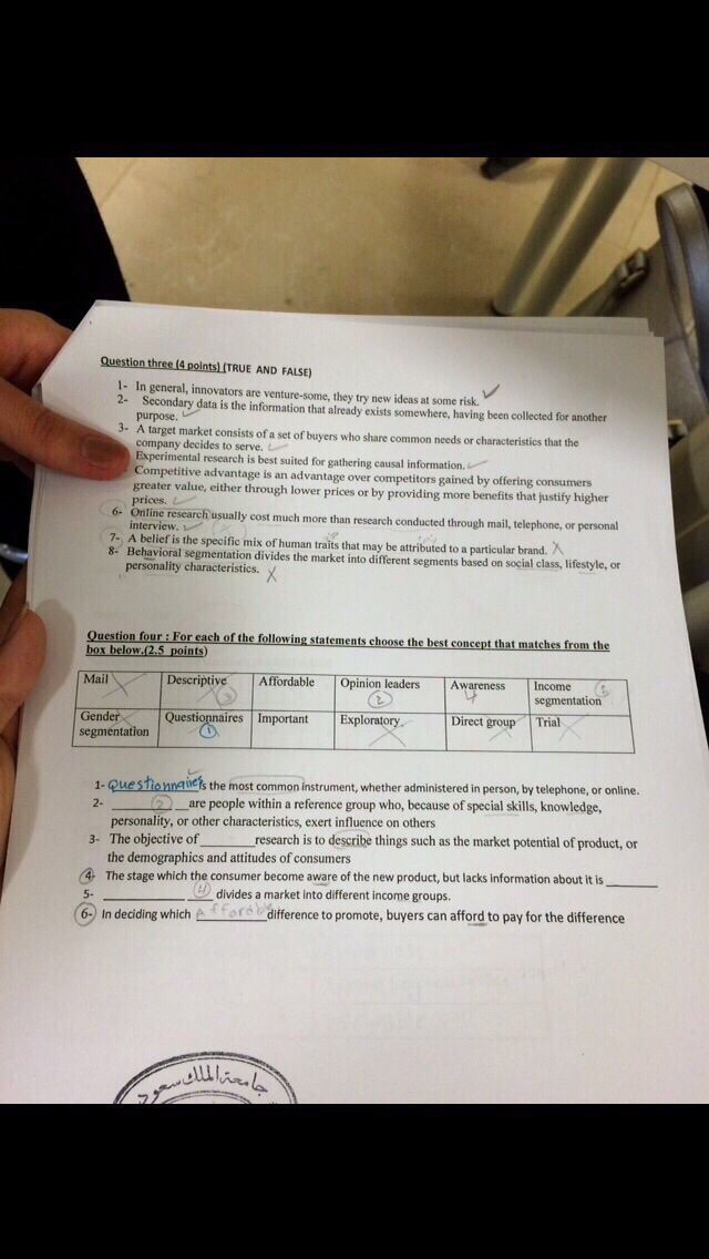 اختبار مبادئ التسويق تسق 201 الفصل الأول 1437هـ