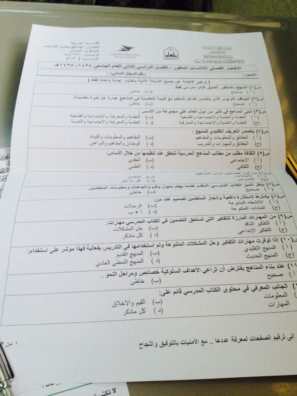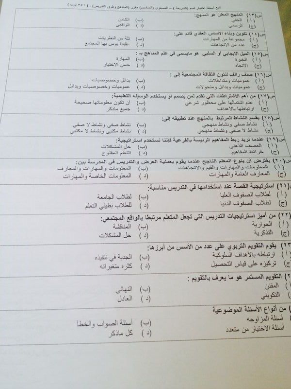 اسئلة مادة المناهج وطرق التدريس ترب 351 للإنتساب المطور الفصل الدراسي الثاني 1435هـ
