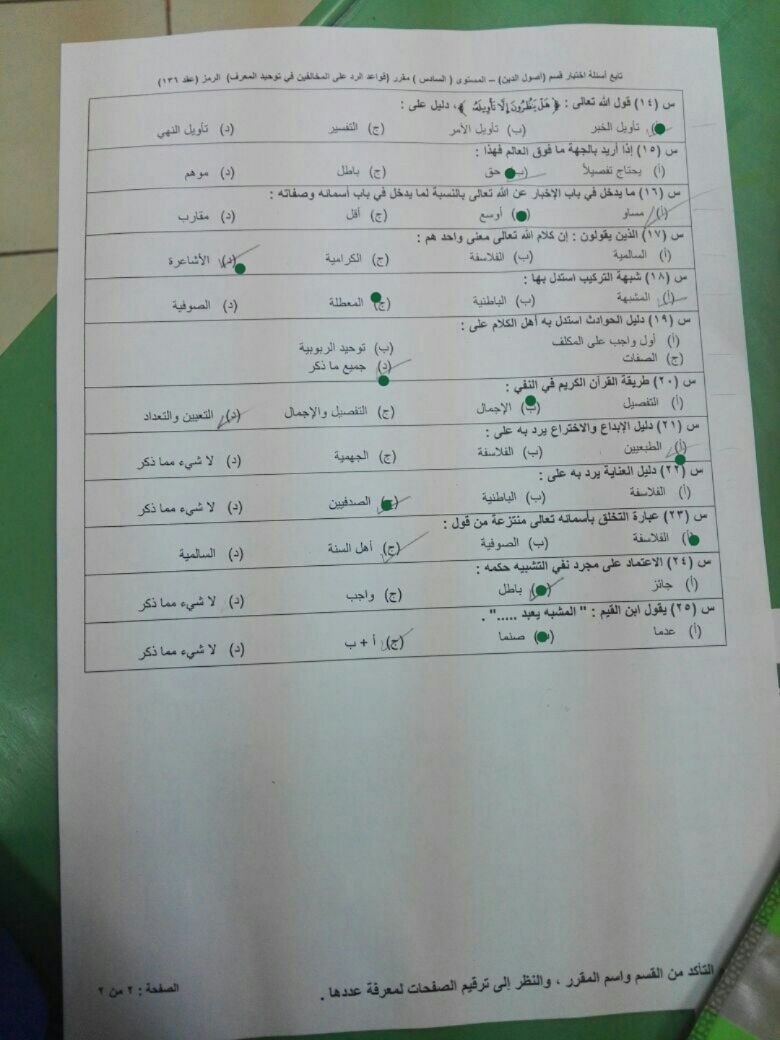 اختبار قواعد الرد على المخالفين عقد 136 عام 1438هـ