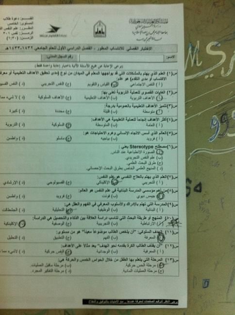 اسئلة مادة علم النفس التربوي نفس 301 للإنتساب المطور الفصل الدراسي الأول 1433هـ طلاب