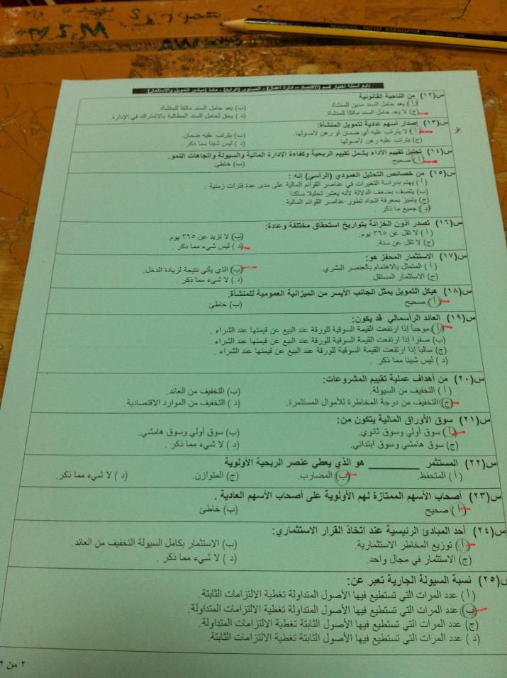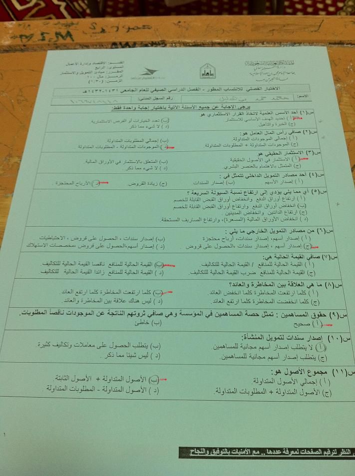 اسئلة مادة مبادئ التمويل والإستثمار مال 100 للإنتساب المطور الفصل الدراسي الصيفي 1432هـ