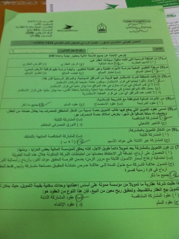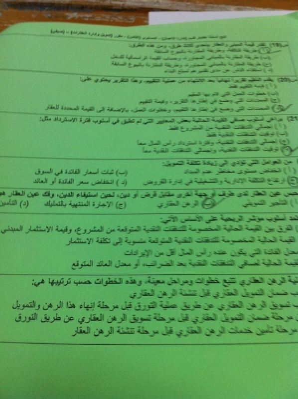 اسئلة مادة تمويل وإدارة العقارات مال 441 للإنتساب المطور الفصل الدراسي الصيفي 1433هـ