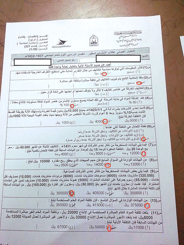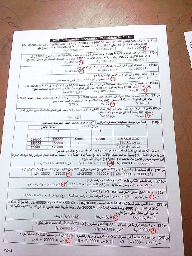 اسئلة مادة مبادئ المحاسبة 2 حسب 221 الفصل الأول 1432هـ المستوى الرابع اقتصاد