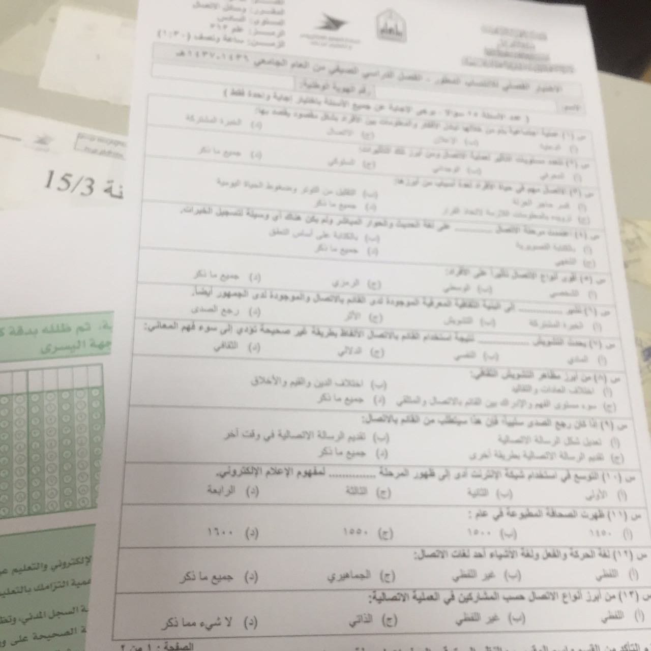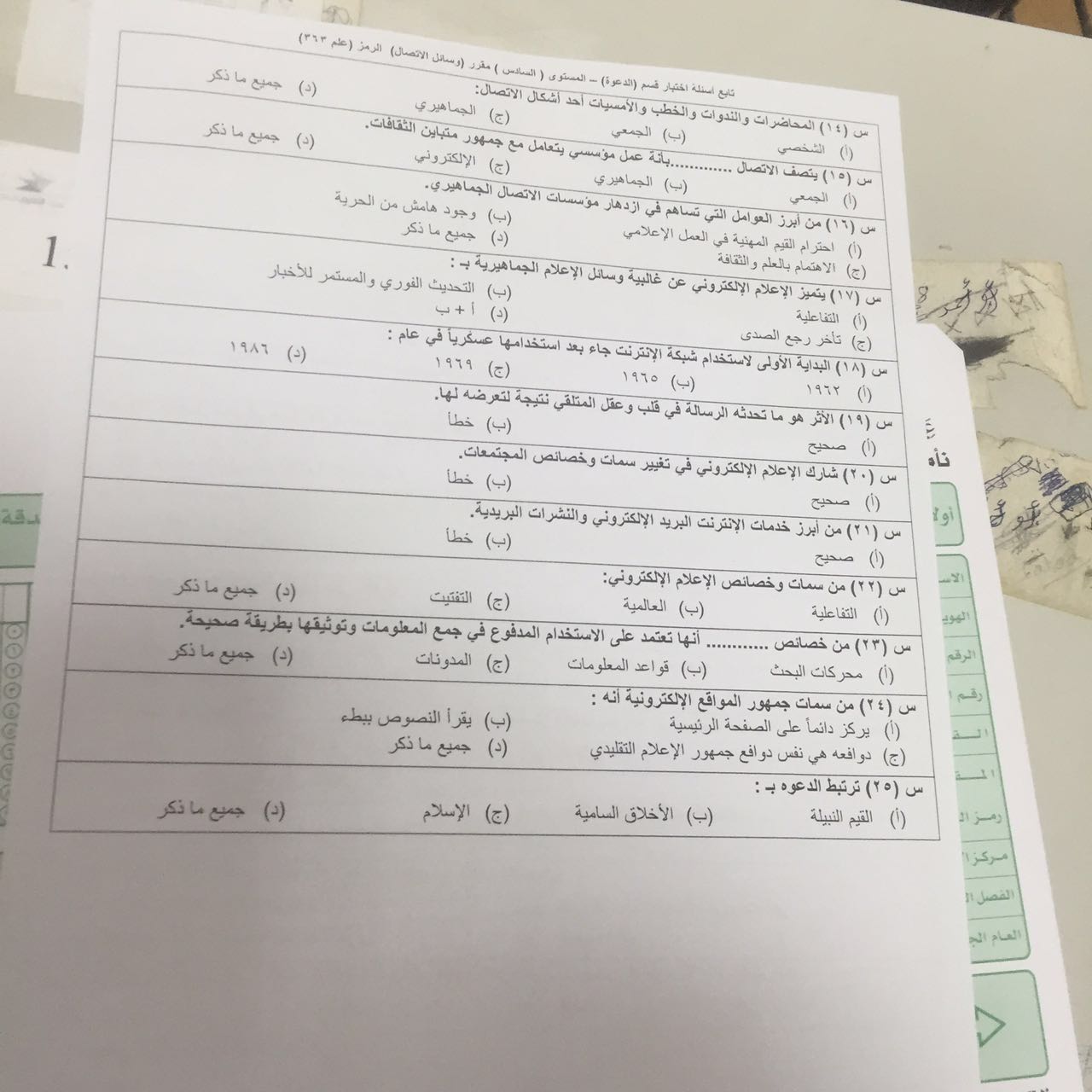 اختبار وسائل الاتصال علم 363 الفصل الصيفي 1437هـ