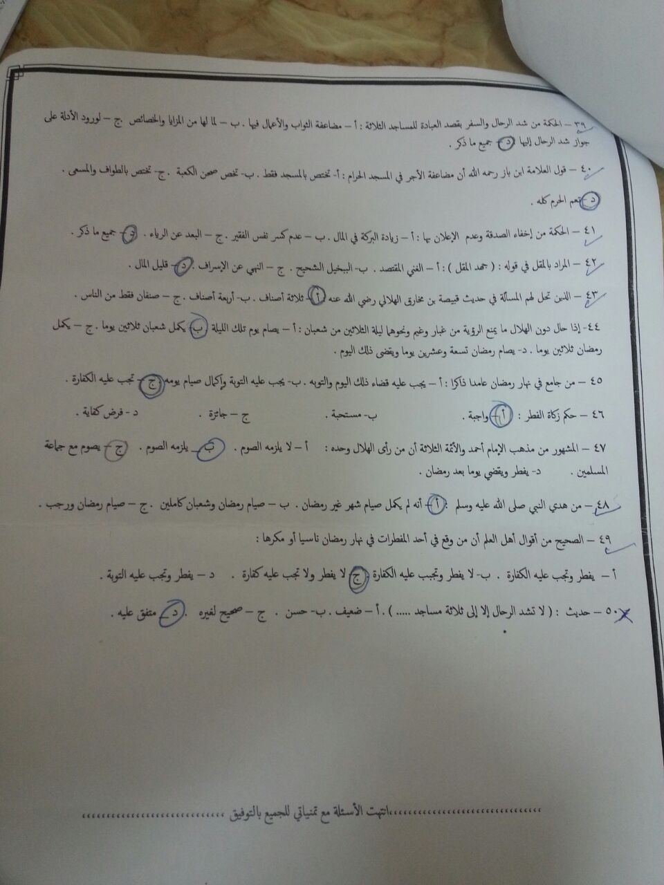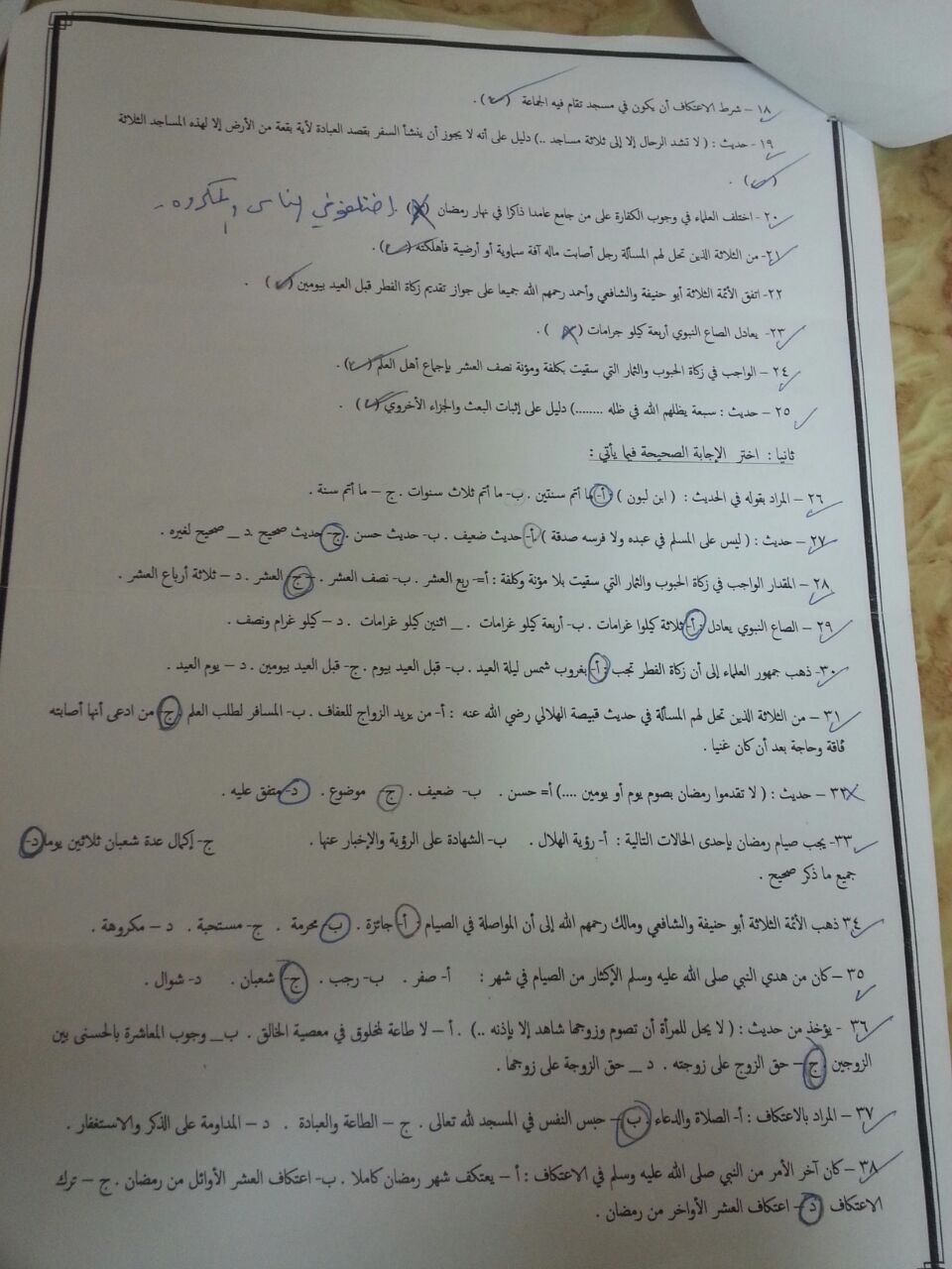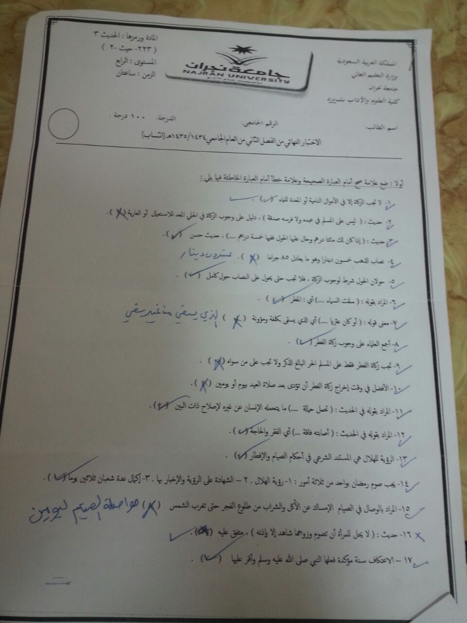 اسئلة اختبار حديث 3 الفصل الثاني 1435هـ المستوى الرابع