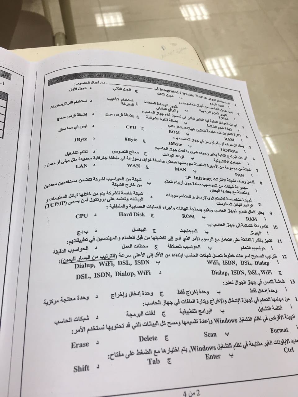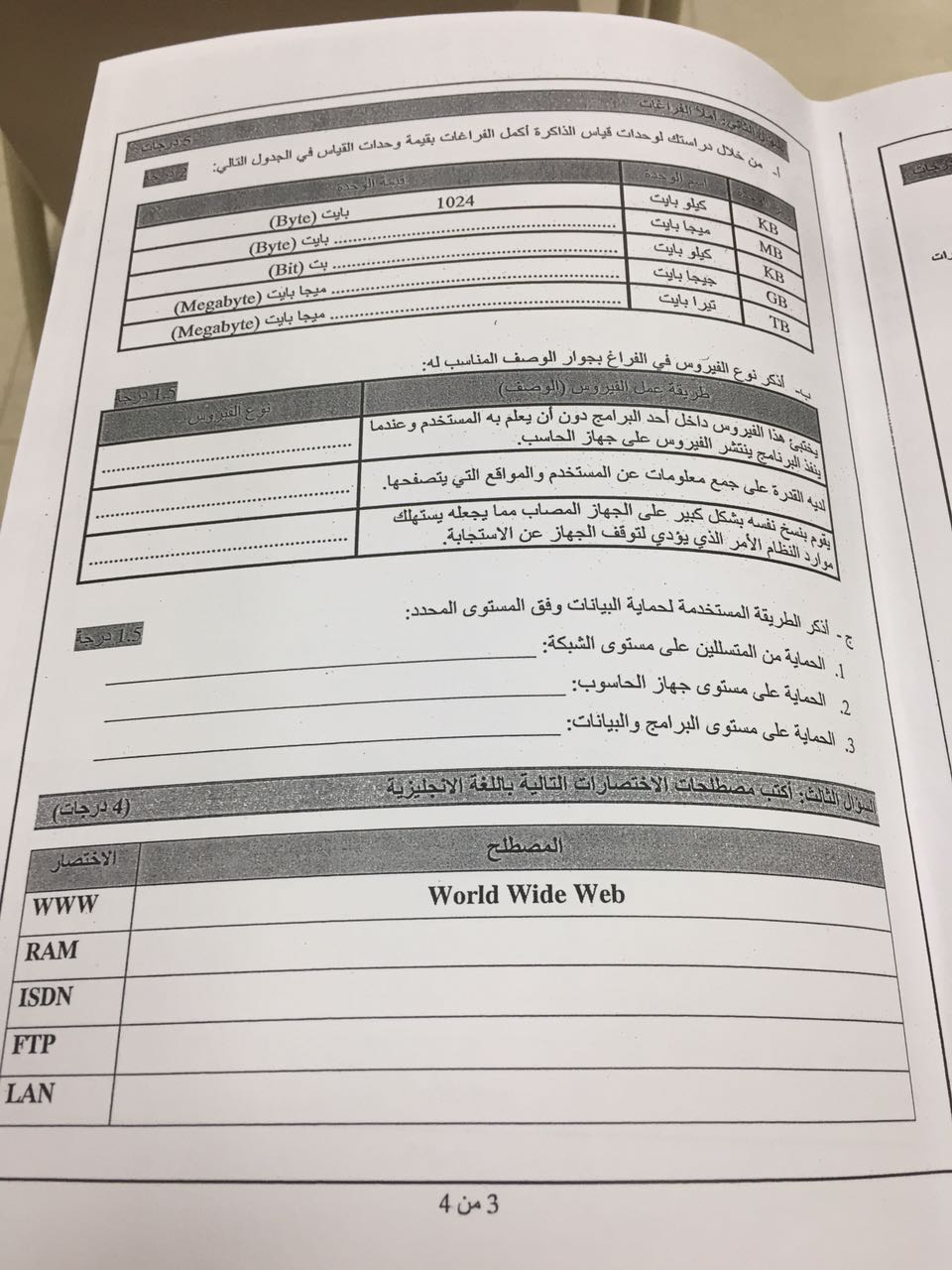 اختبار مهارات الحاسب الفصلي الاول – الفصل الاول1438