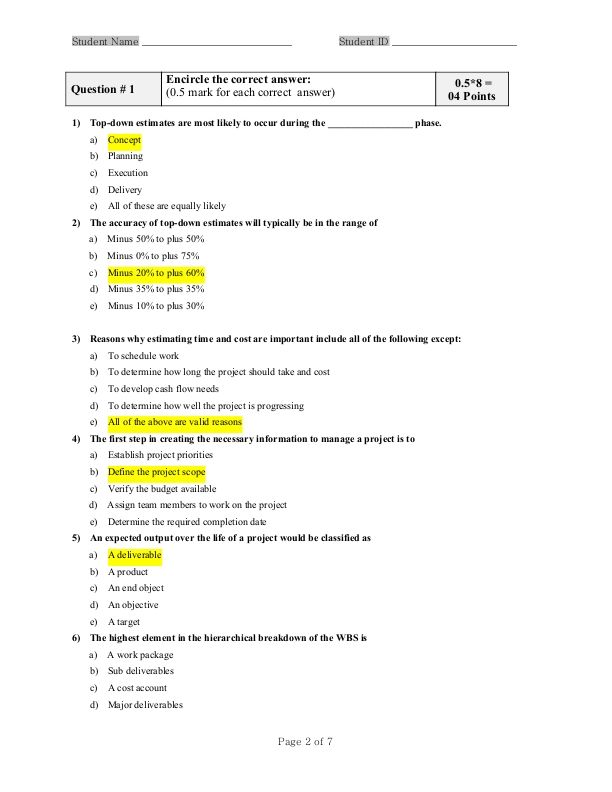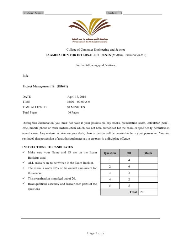 اسئلة الميد ترم الثاني ادارة مشاريع الفصل الثاني 1437هـ