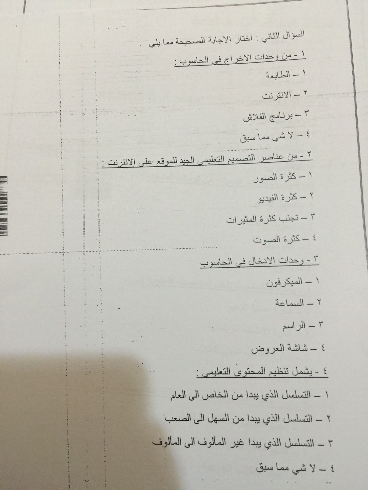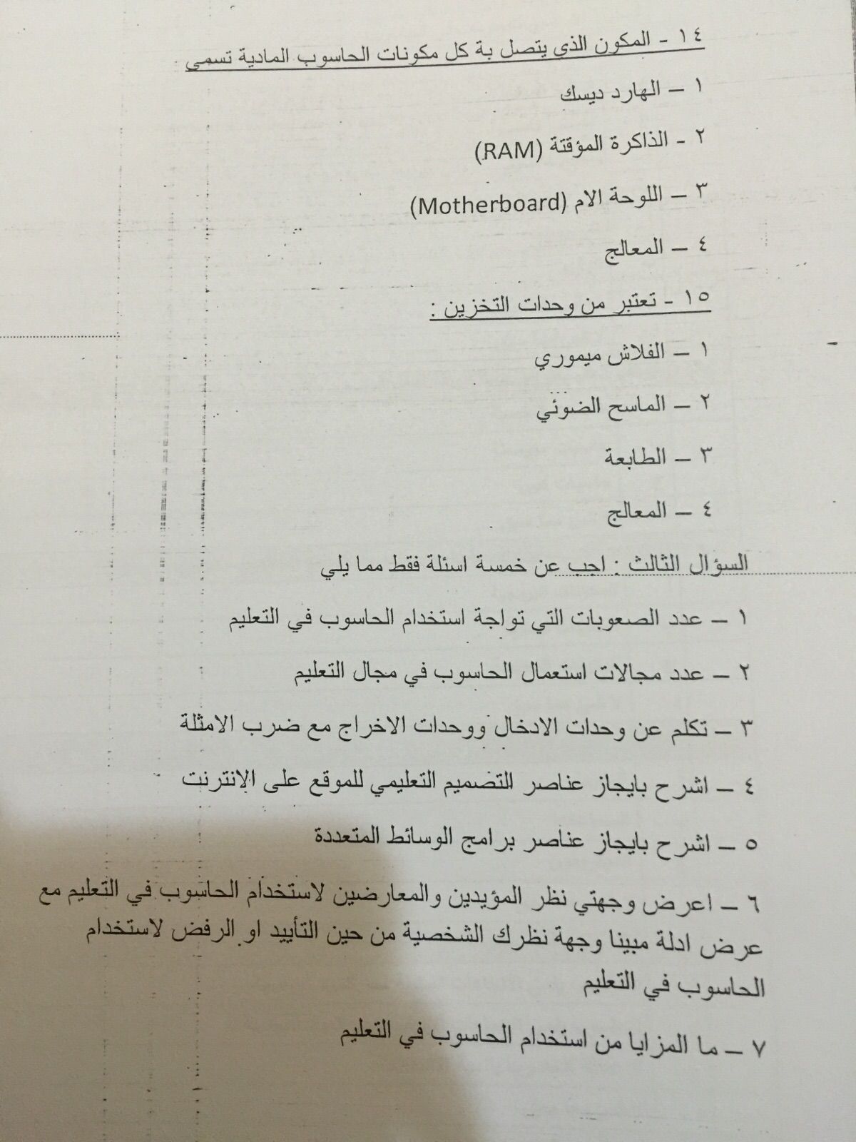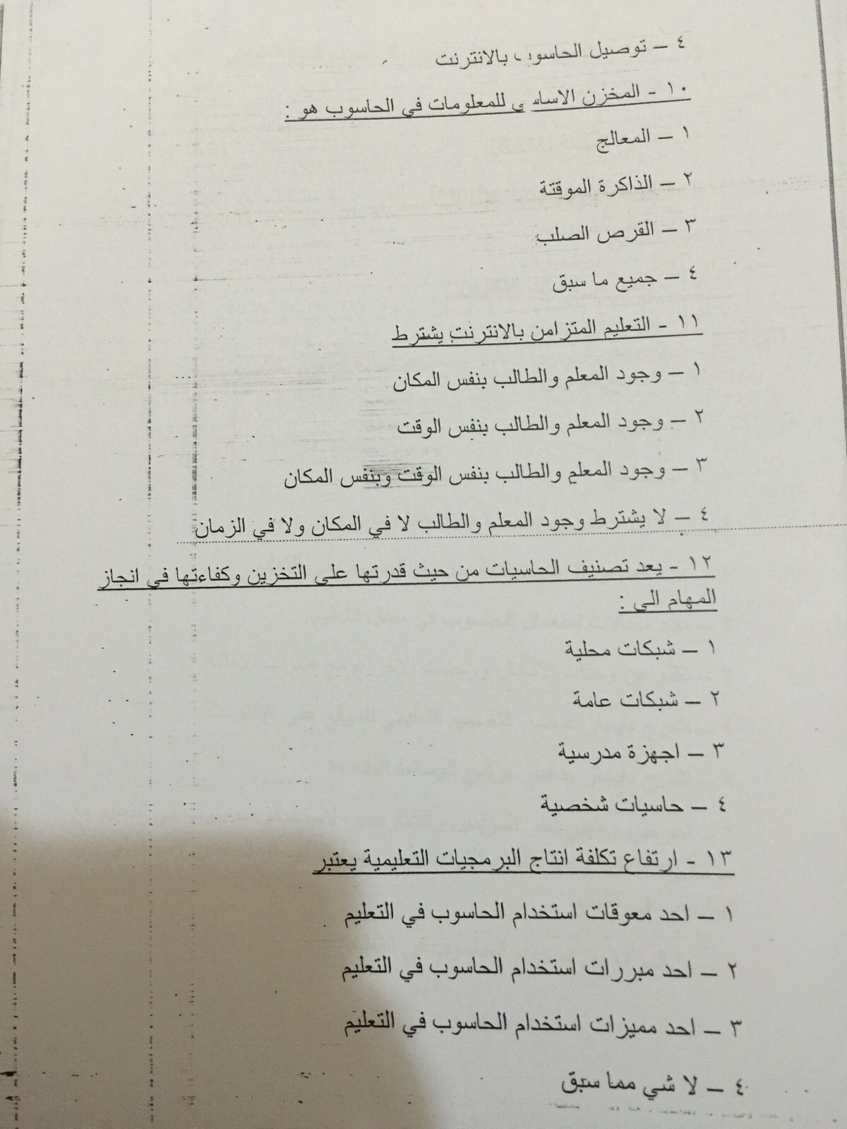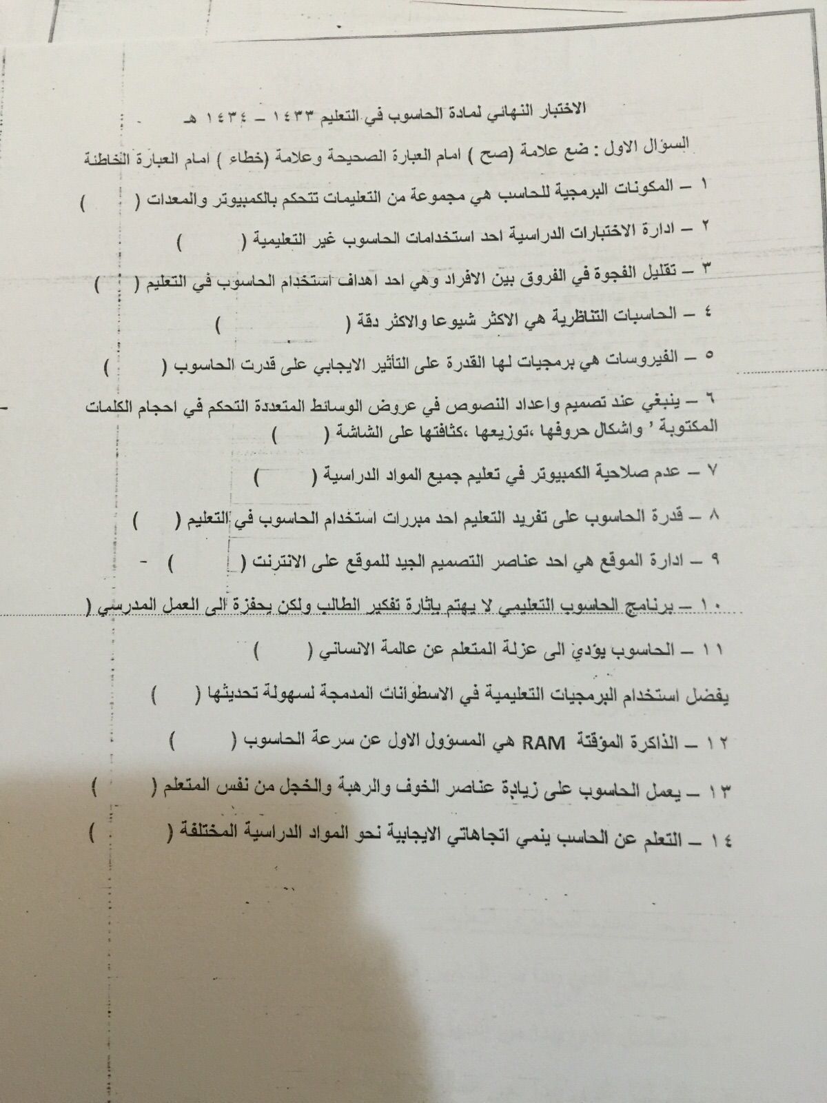 الاختبار النهائي لمادة الحاسوب في التعليم 1434هـ