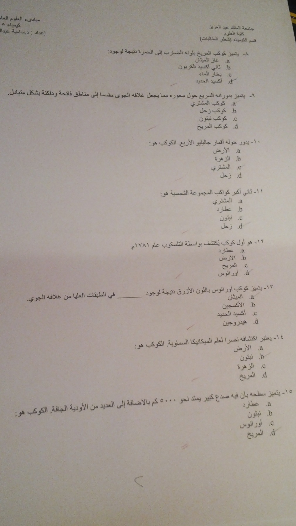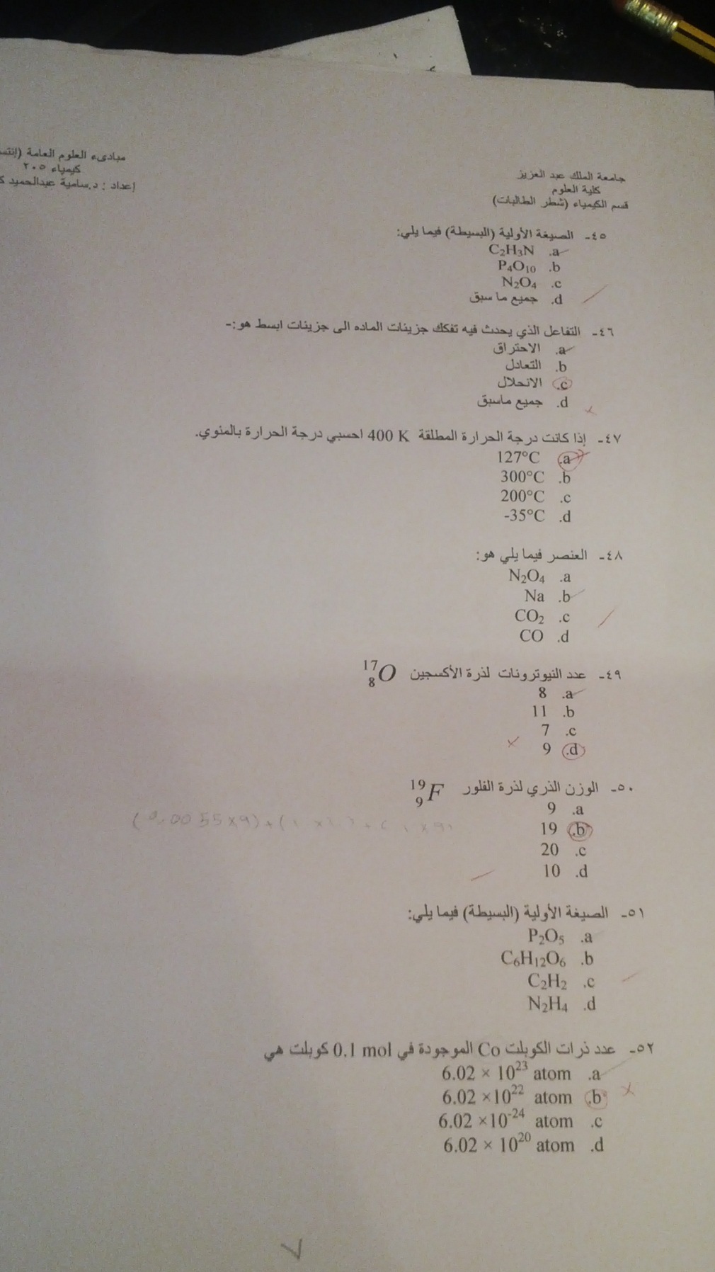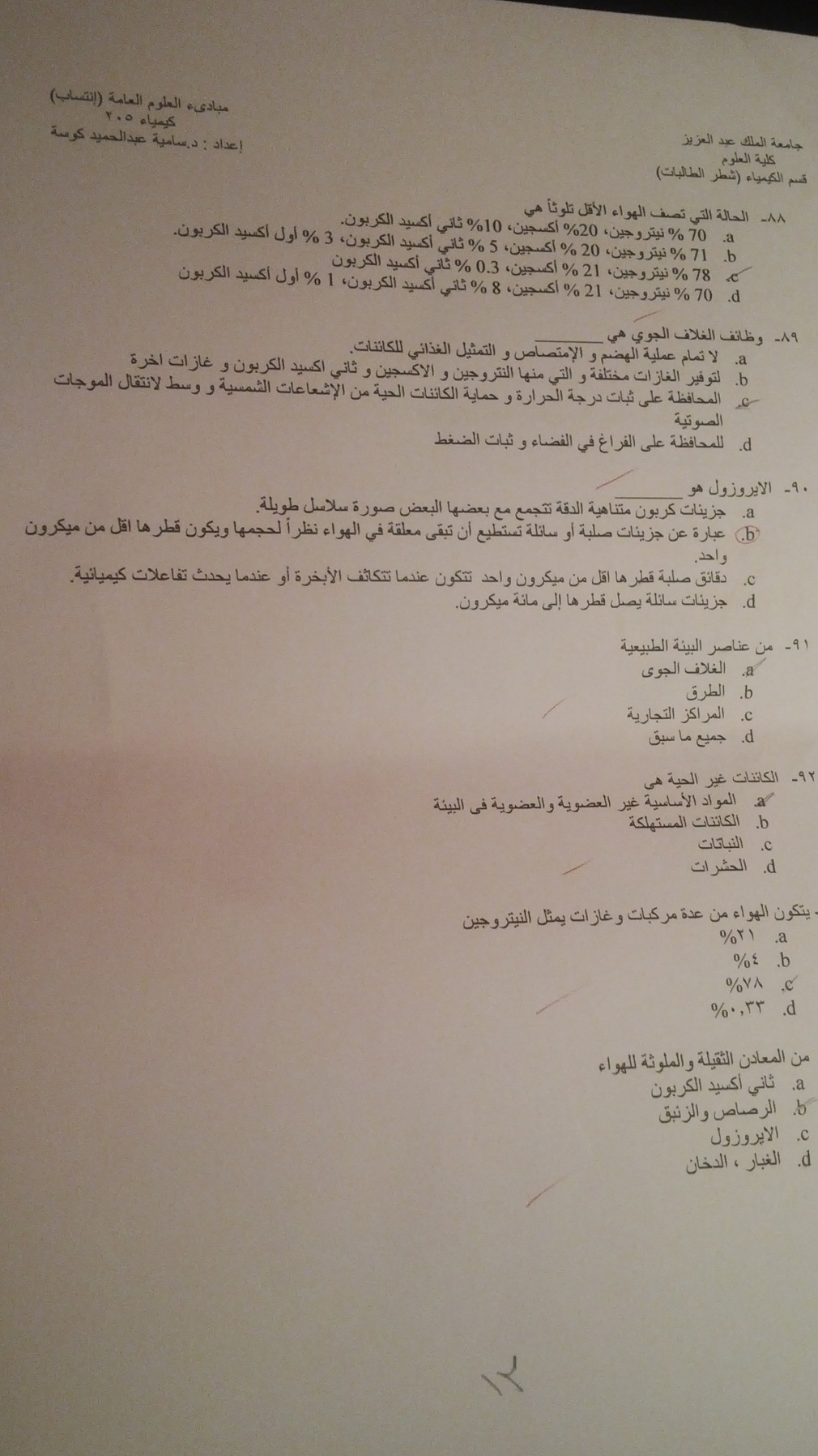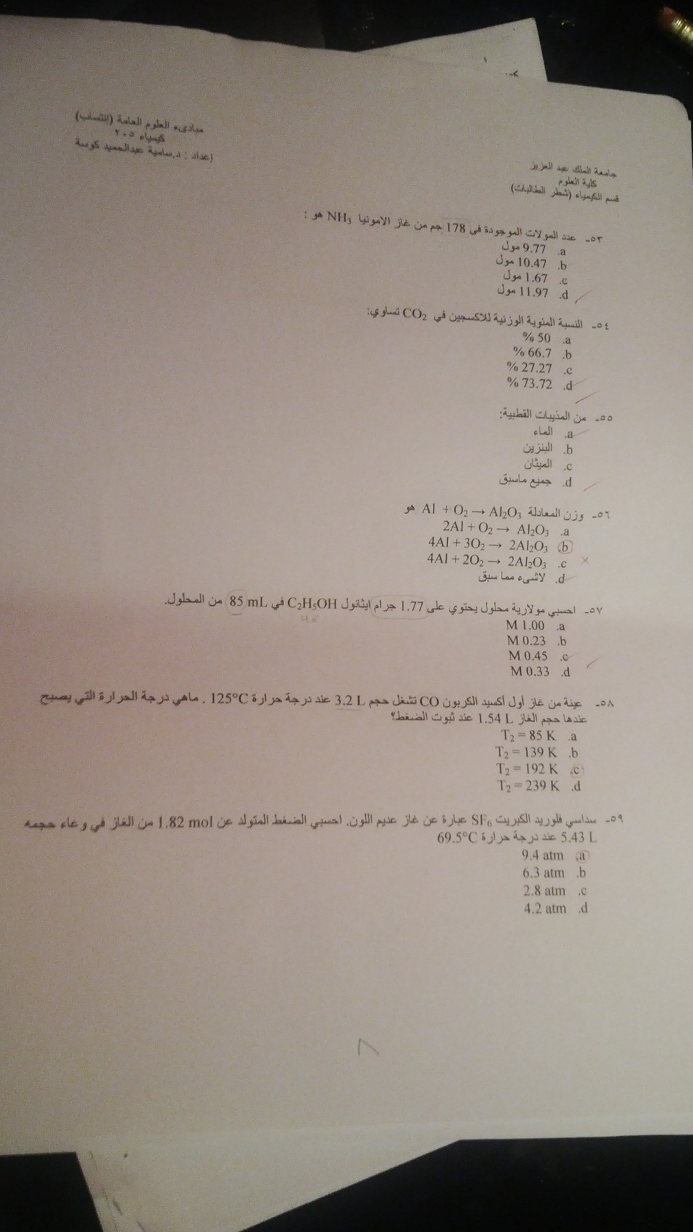 نماذج مادة مقدمة في العلوم الطبيعية chem 205