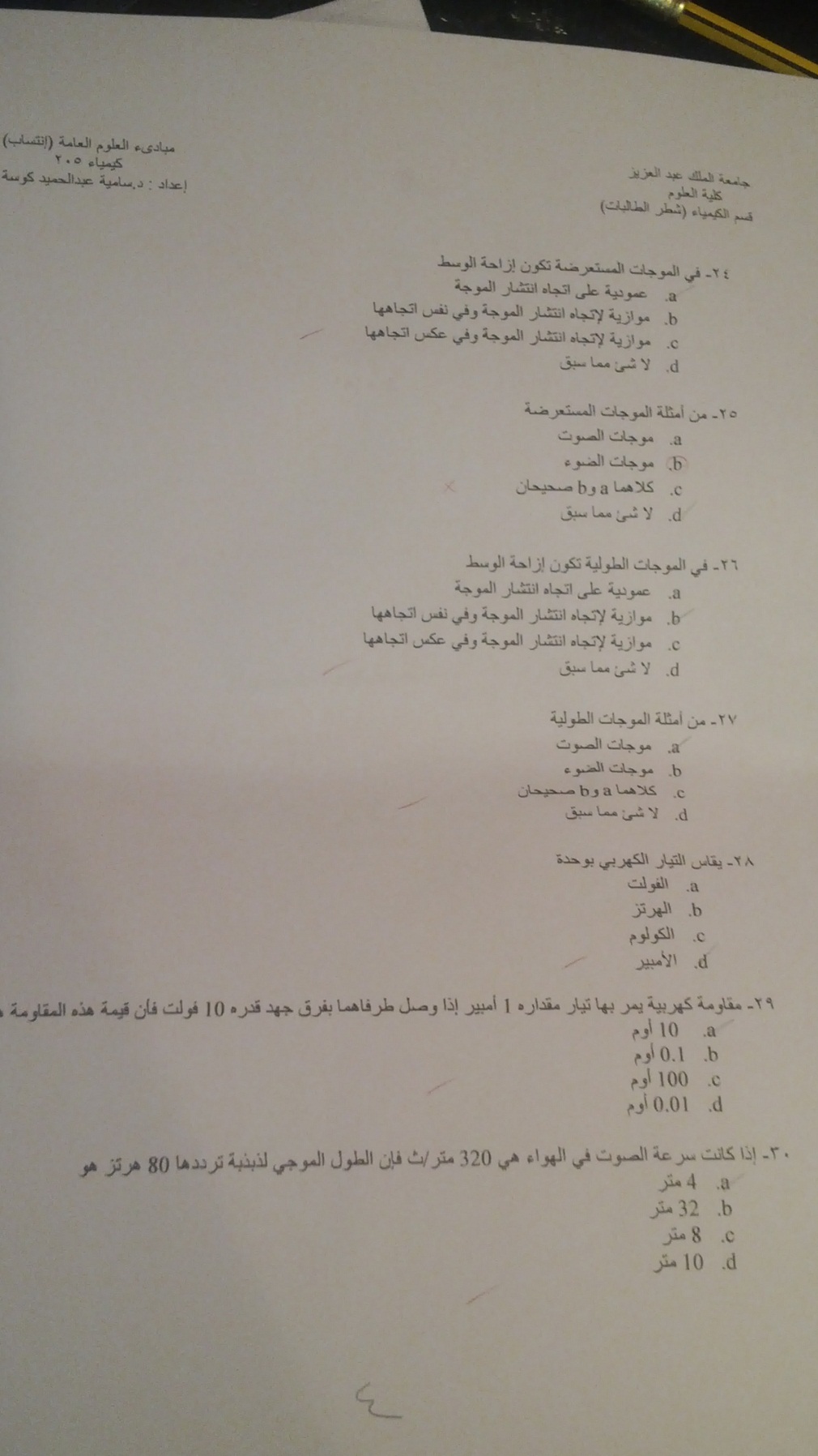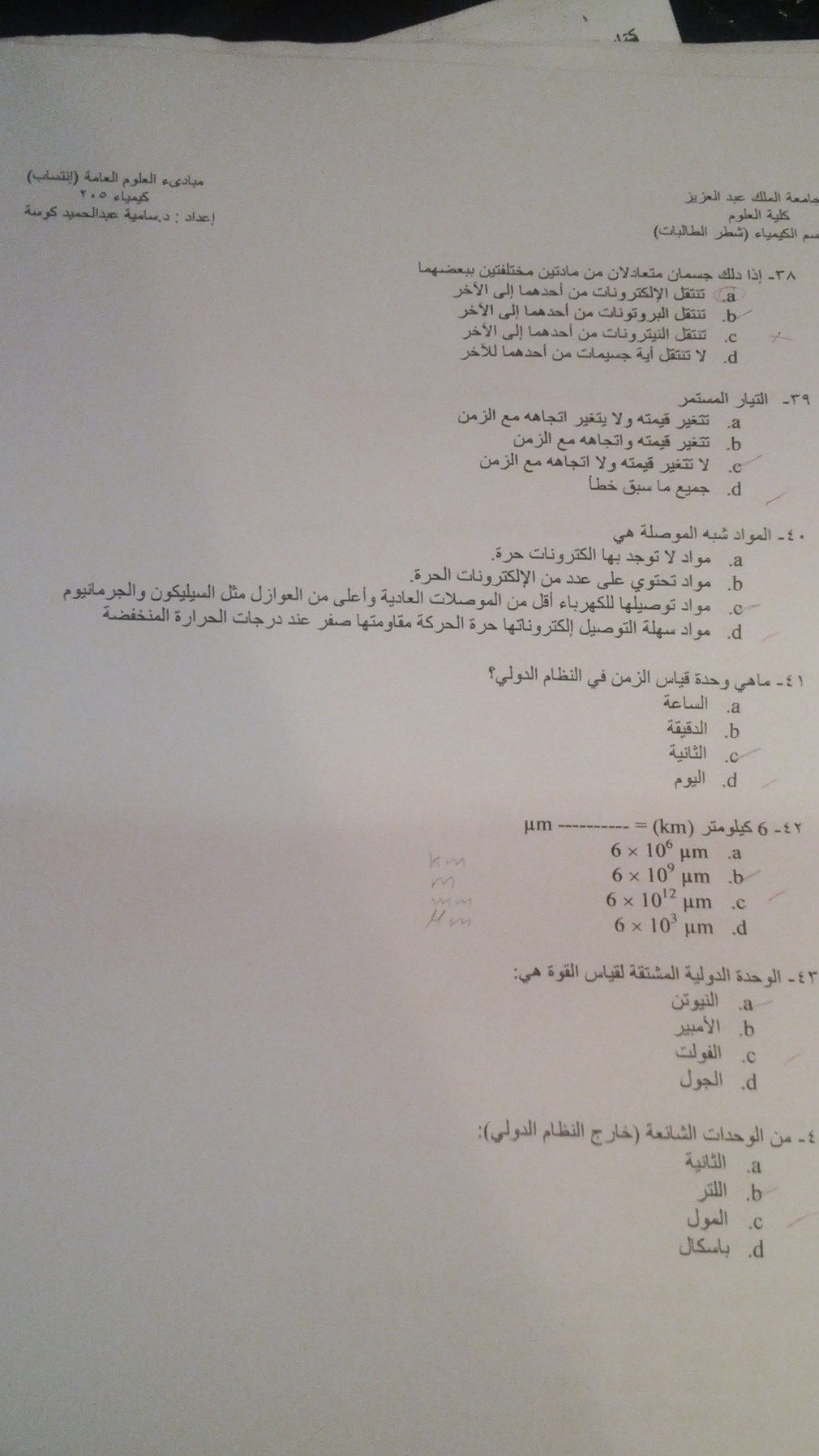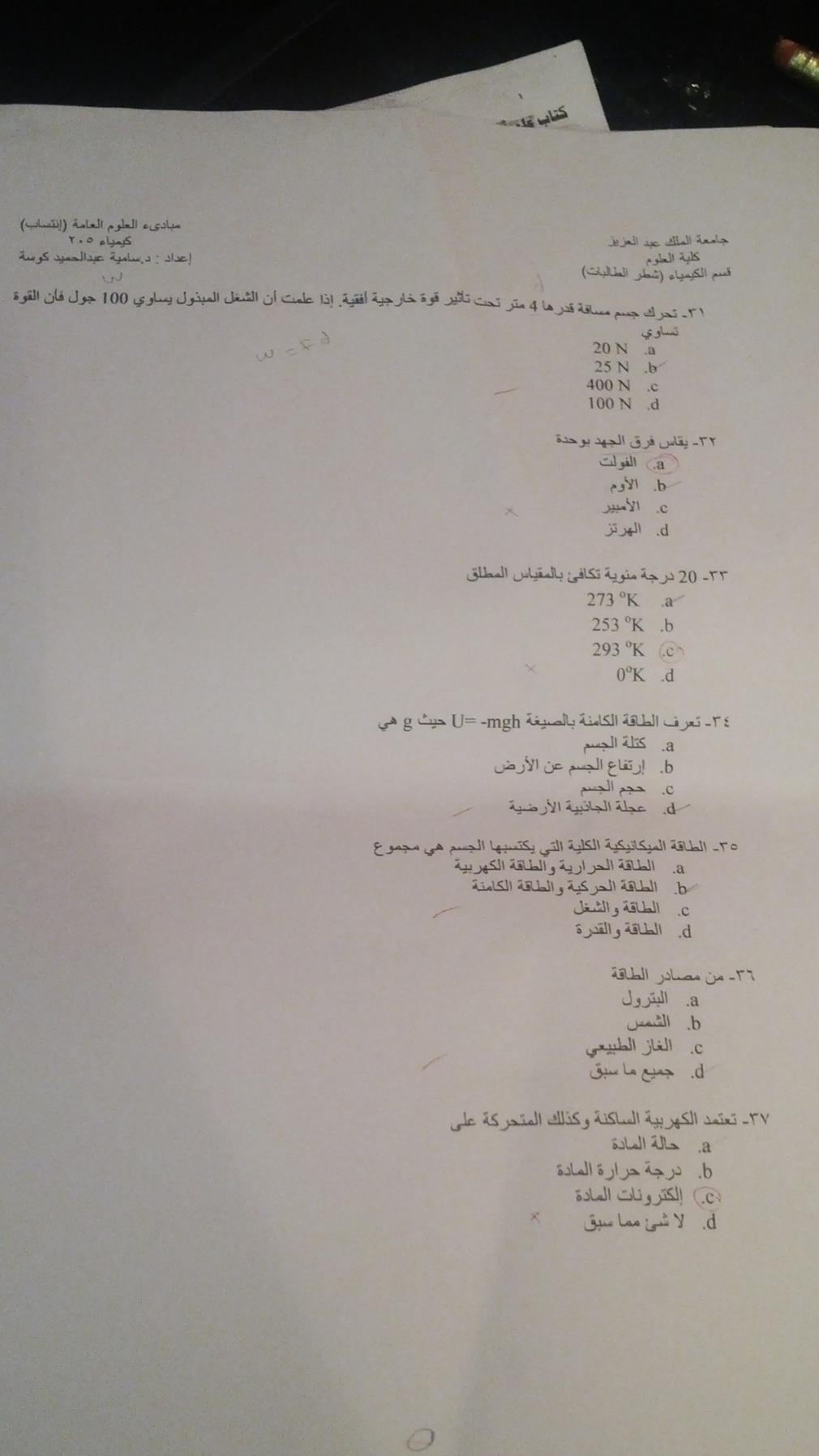 نماذج مادة مقدمة في العلوم الطبيعية chem 205
