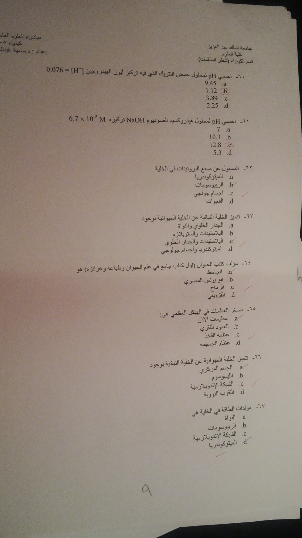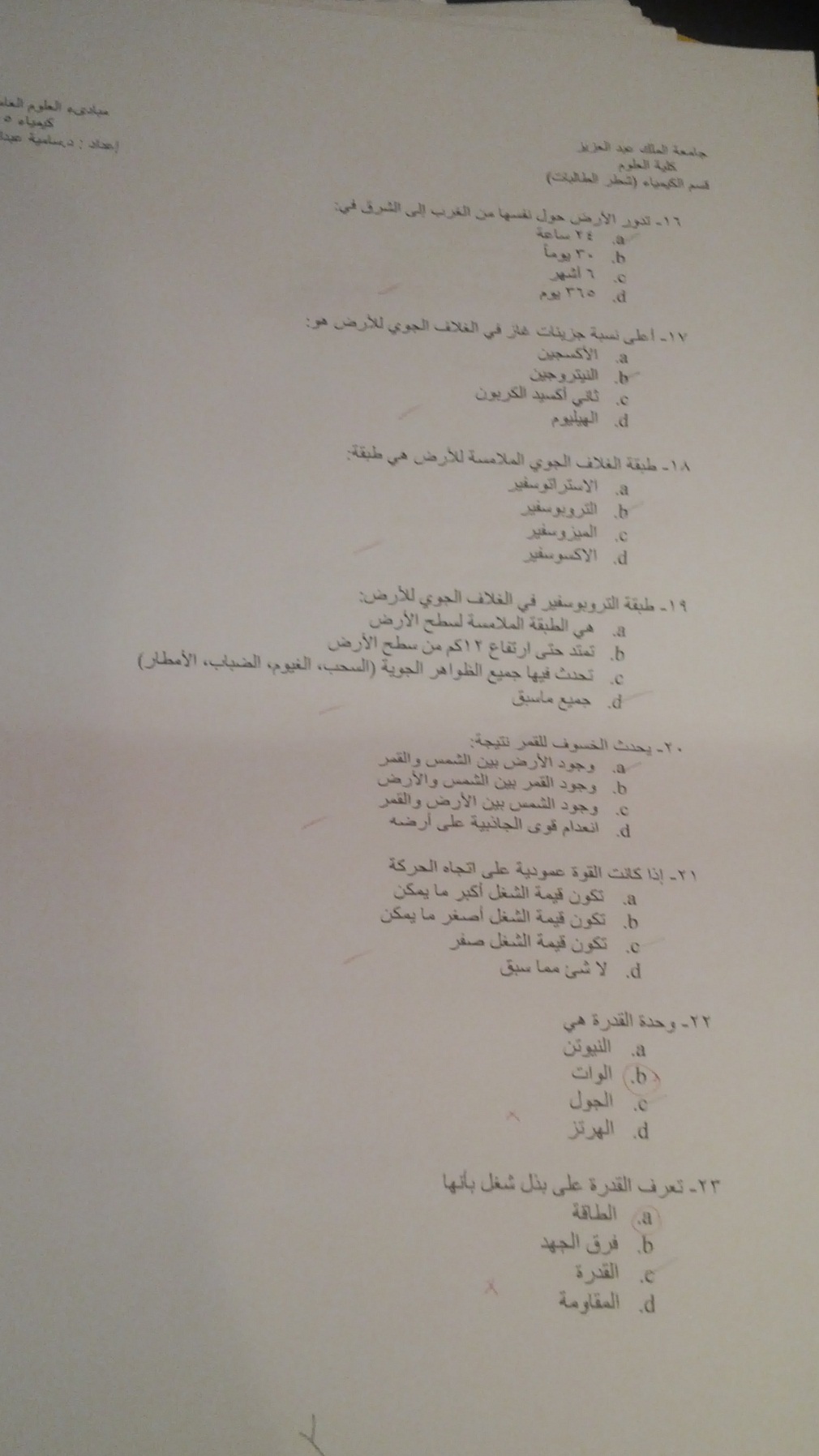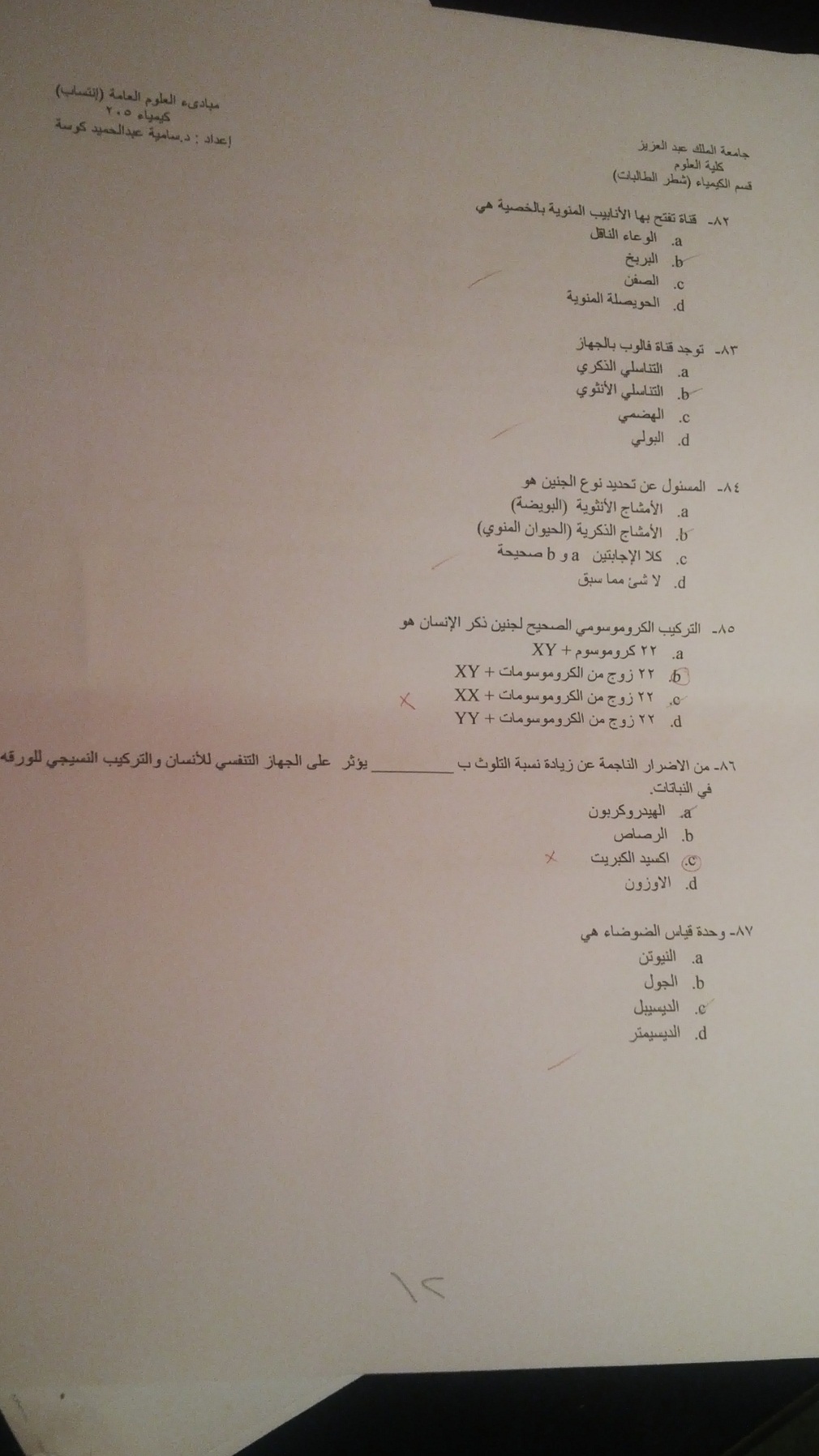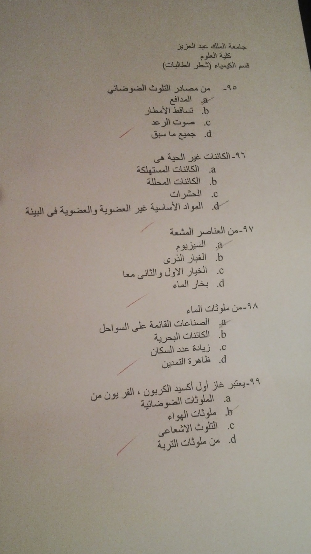 نماذج مادة مقدمة في العلوم الطبيعية chem 205