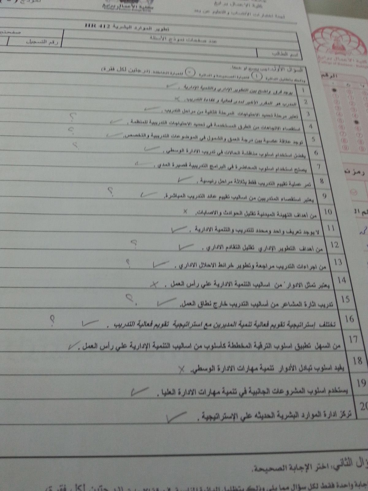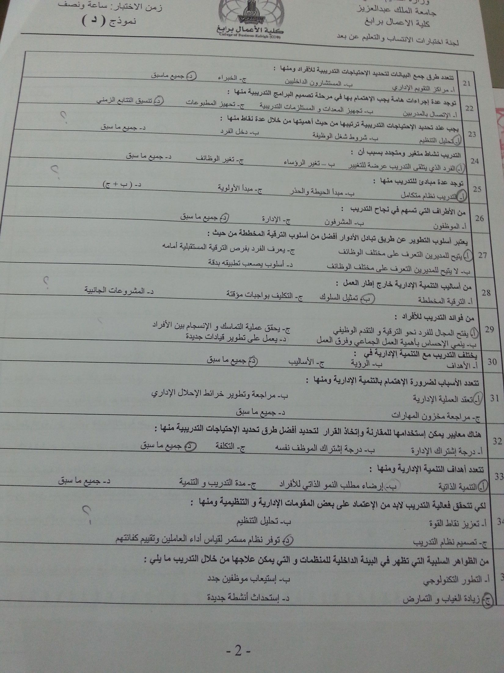 اسئلة اختبار تطوير الموارد البشرية hr 412 انتساب وتعليم عن بعد الفصل الثاني 1436هـ نموذج (د)