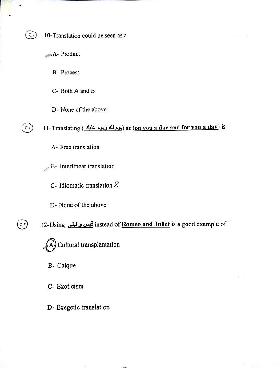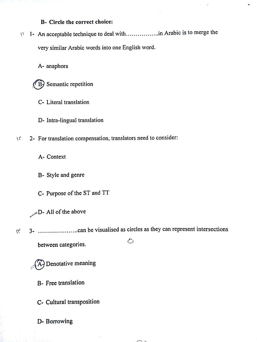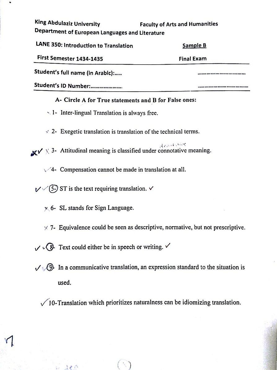 اسئلة مادة مقدمة في الترجمة lane 350 انتساب الفصل الدراسي الأول 1435هـ نموذج (b)