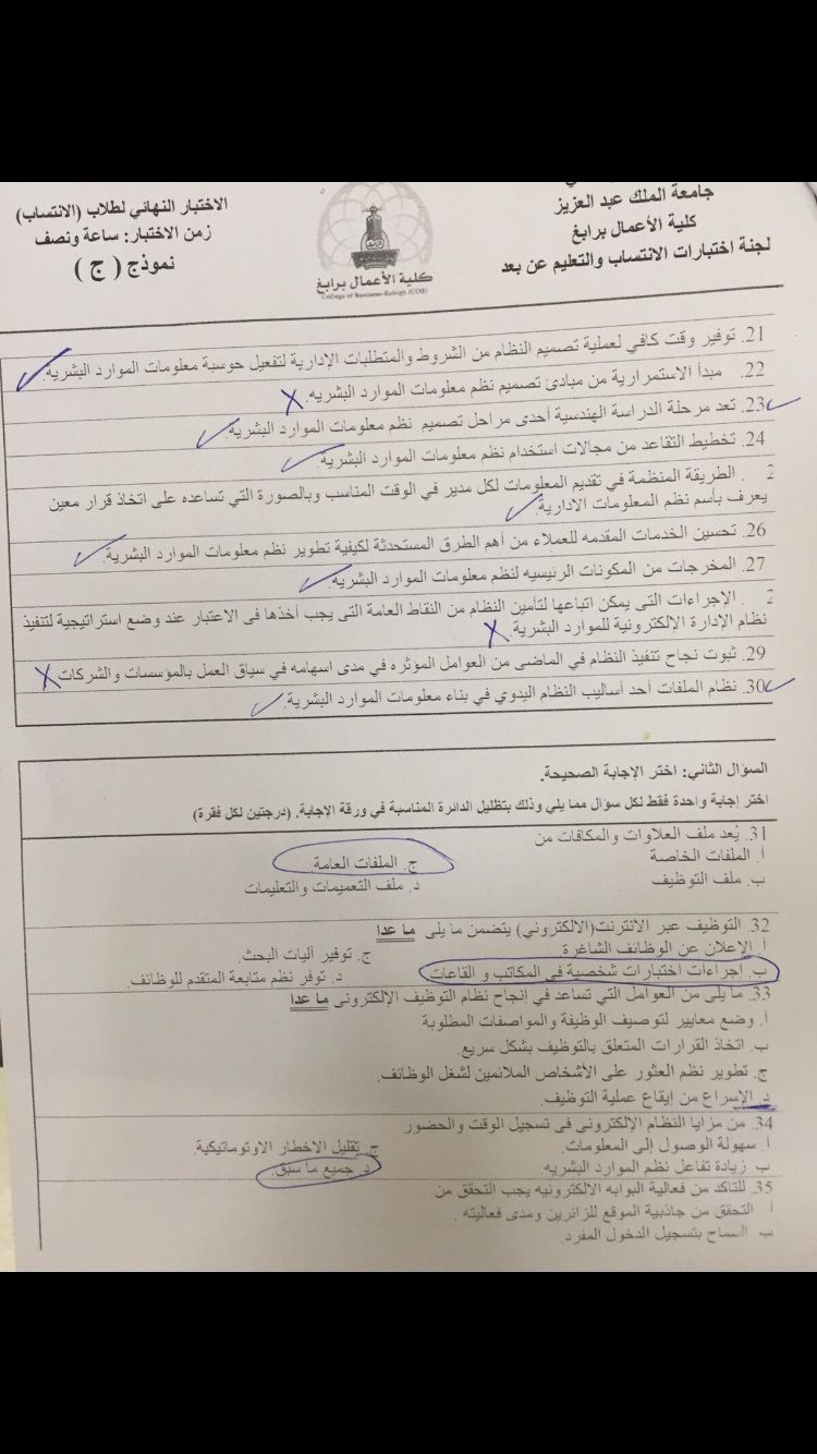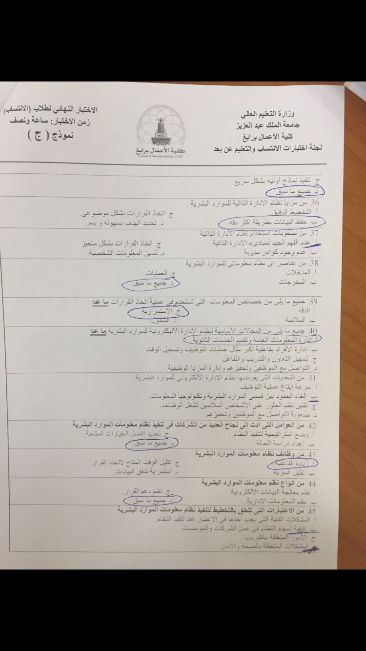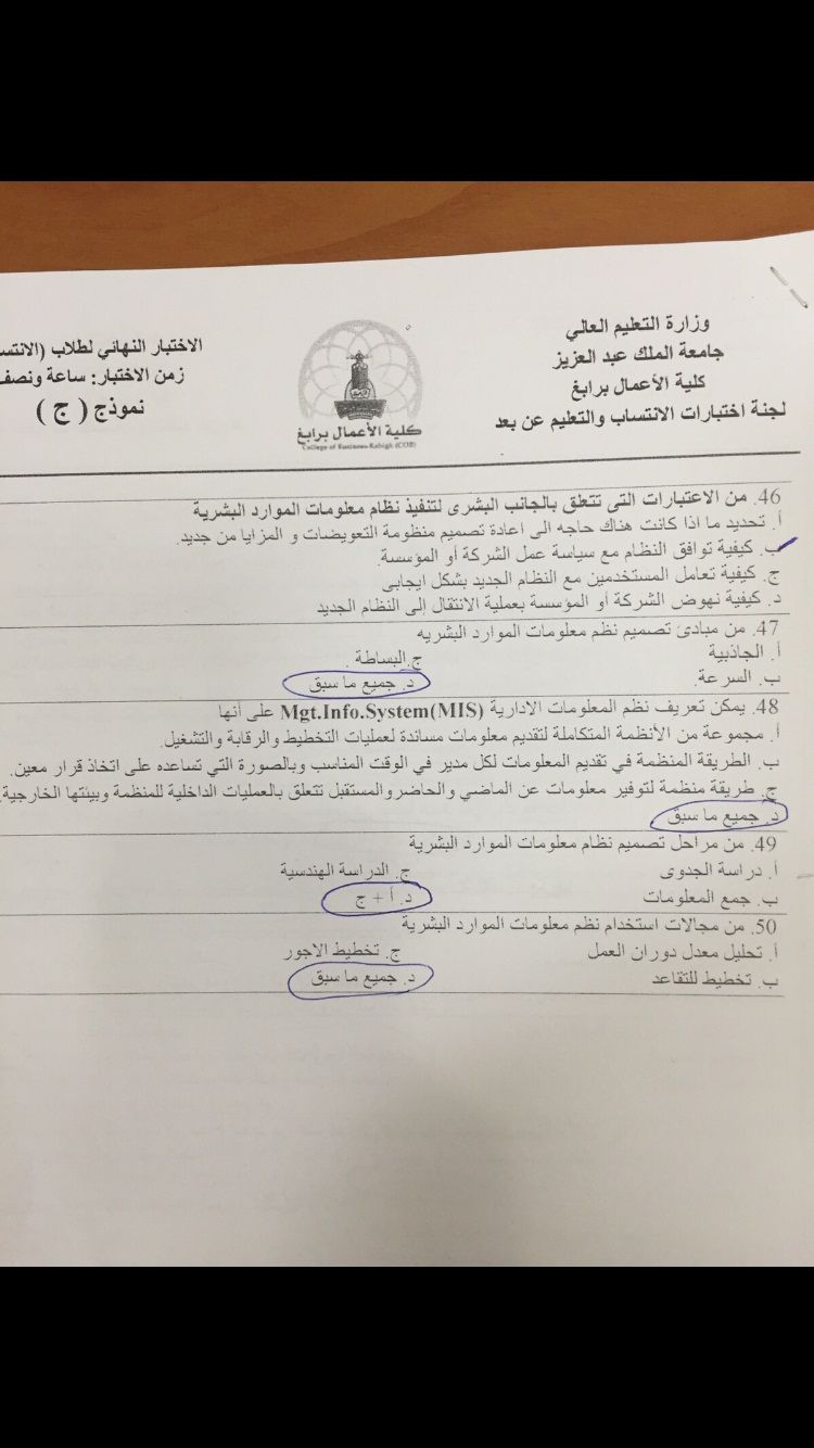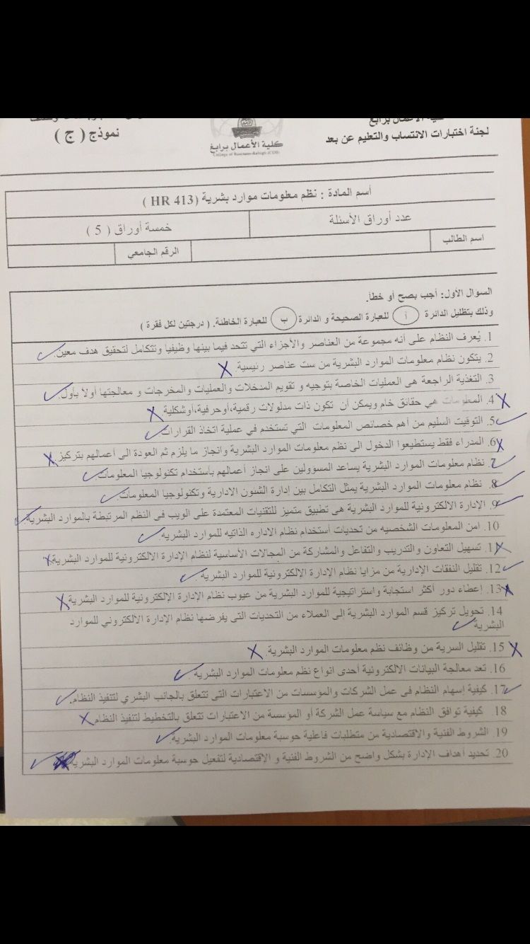 اسئلة اختبار نظم معلومات الموارد البشرية HR 413 نموذج ج