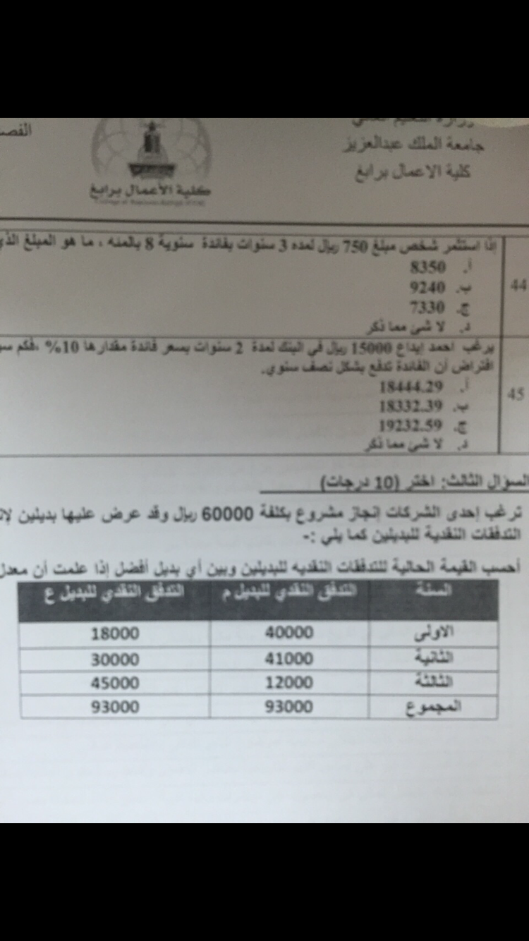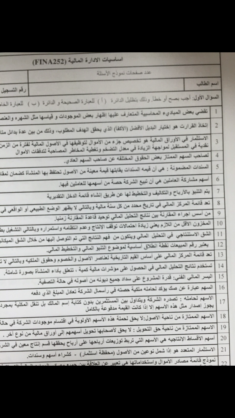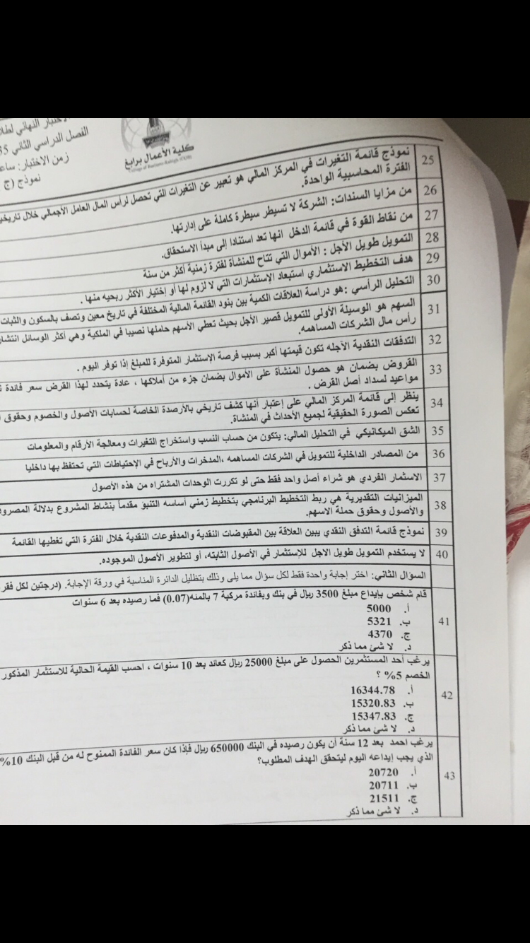 اسئلة اختبار اساسيات الإدارة المالية FINA 252 الفصل الثاني 1436هـ نموذج ج