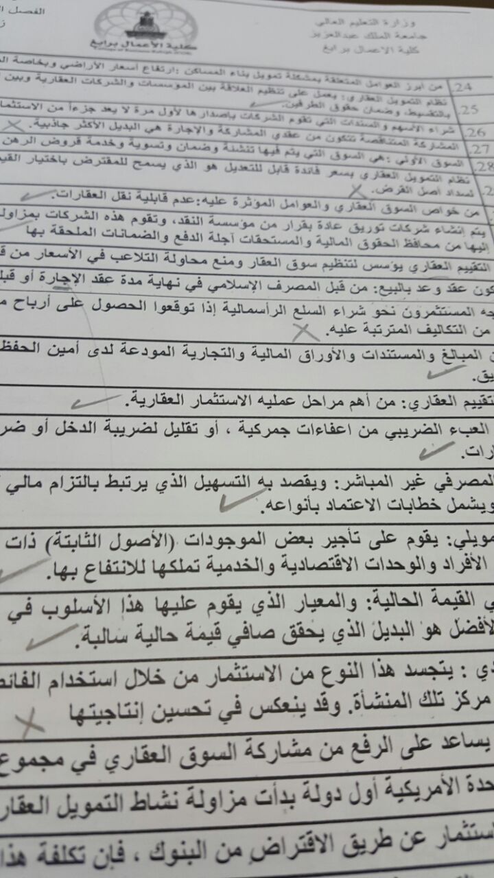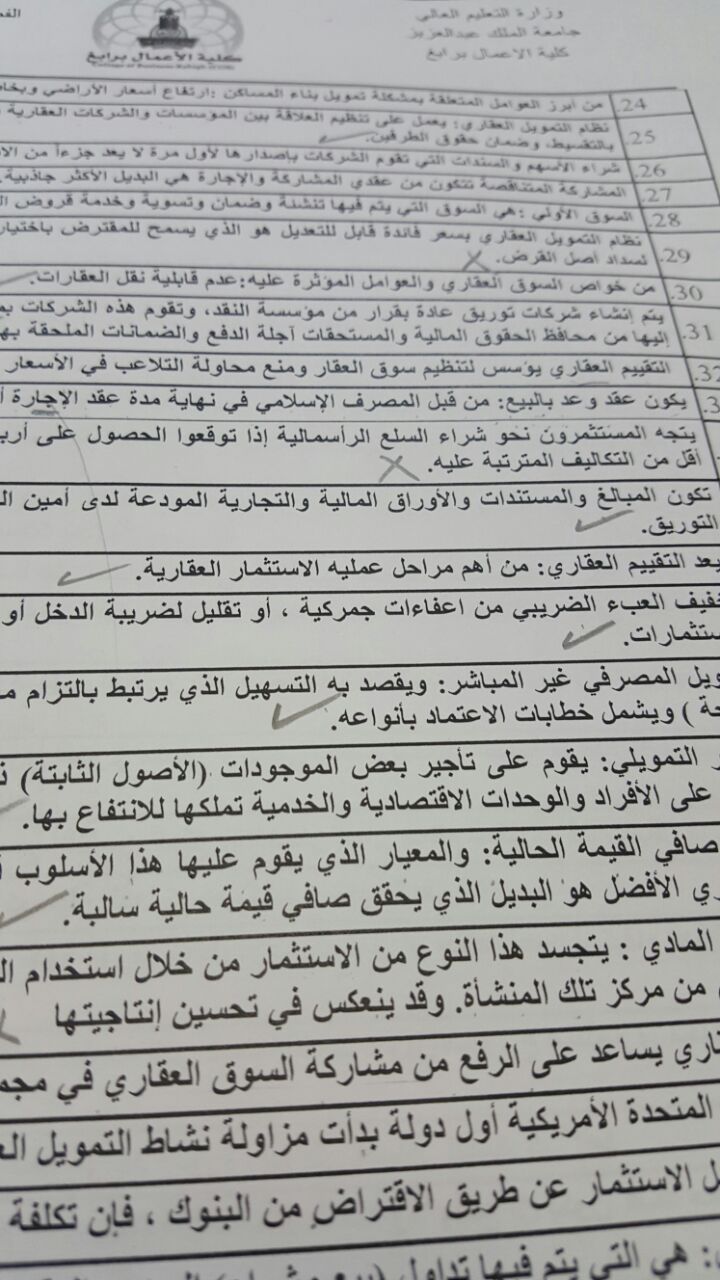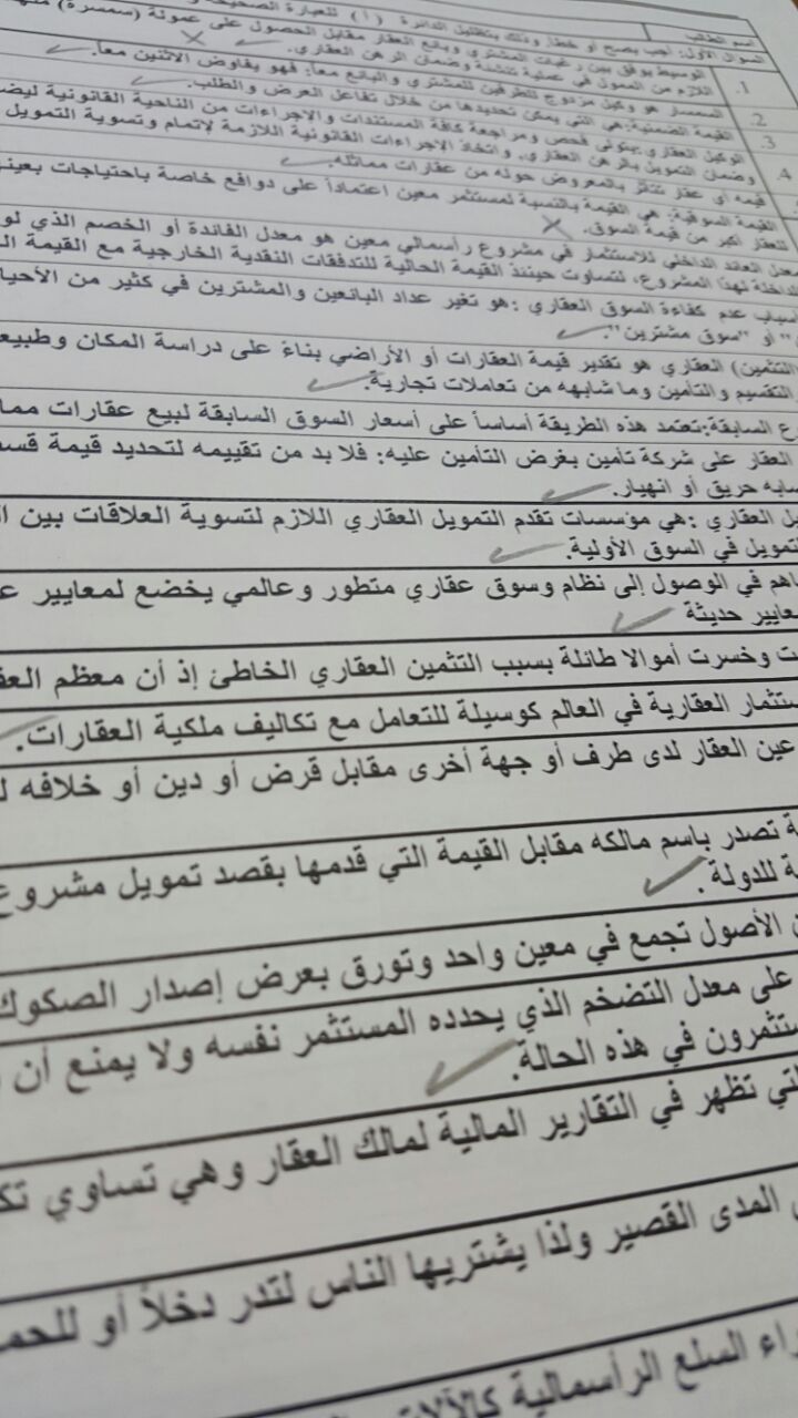 اسئلة الاستثمار العقاري FINA 321 الفصل الأول 1438هـ