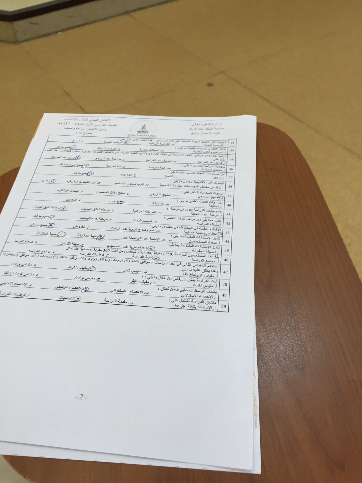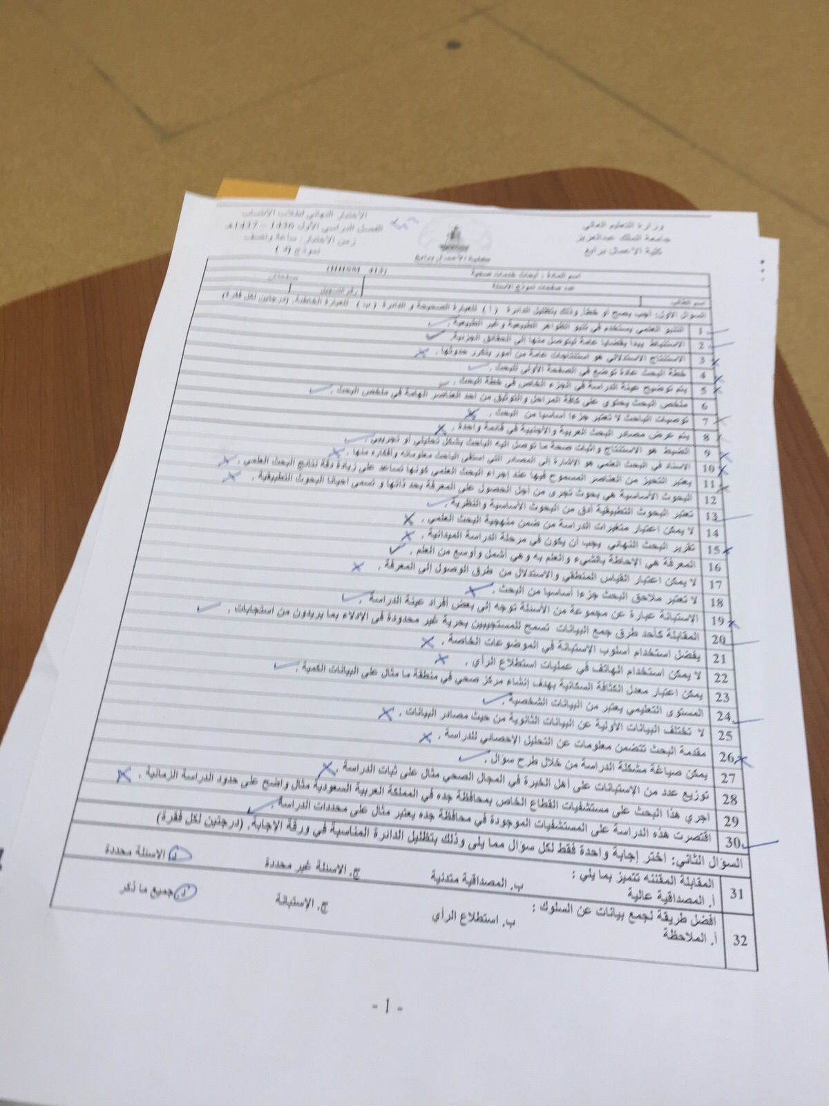 اسئلة اختبار أبحاث خدمات صحية HHSM 413 الفصـل الأول 1437هـ نموذج د