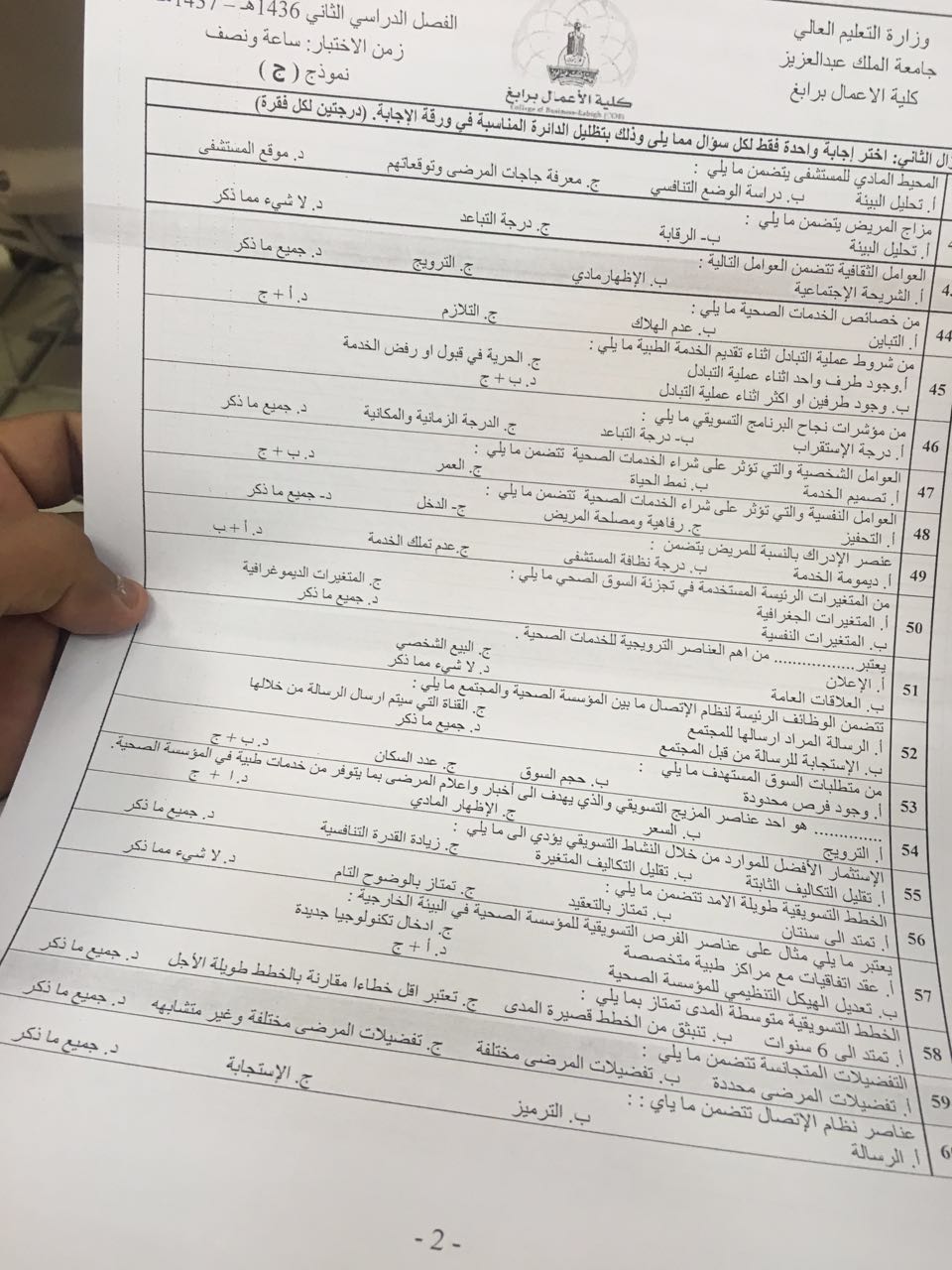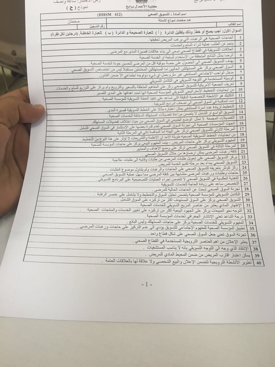 اسئلة تسويق الخدمات الصحية HHSM 412 الفصل الثاني 1437هـ نموذج ج