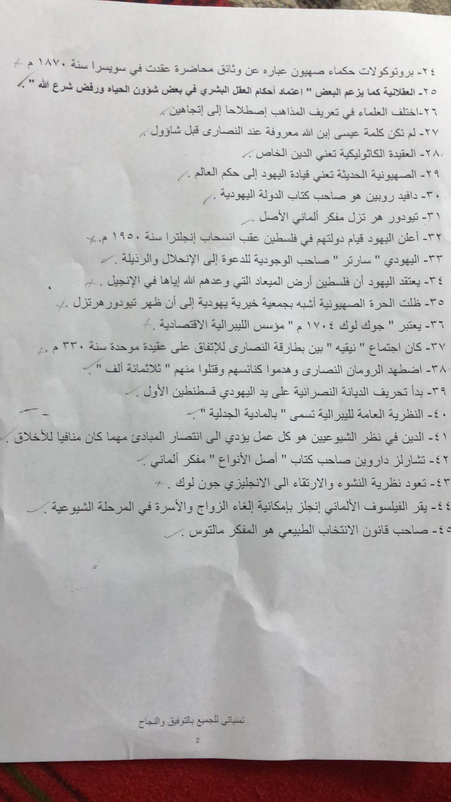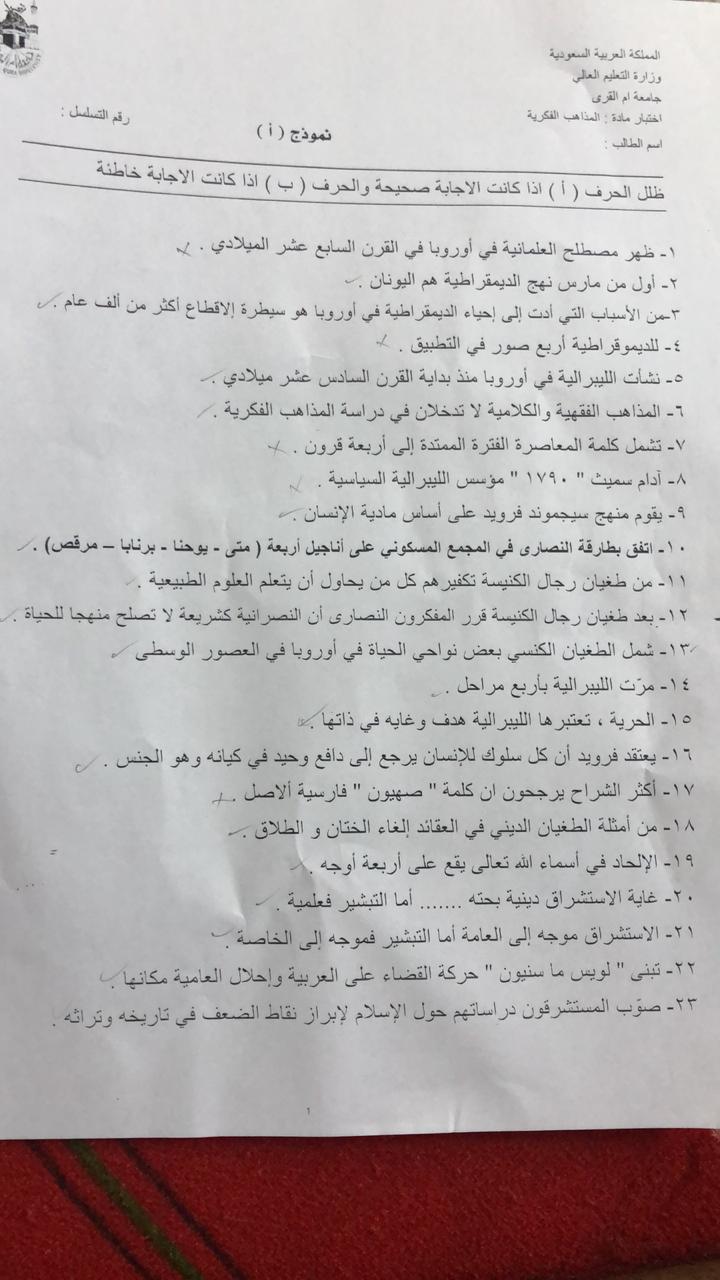 اختبار المذاهب الفكرية عام 1439 انتساب نموذج أ