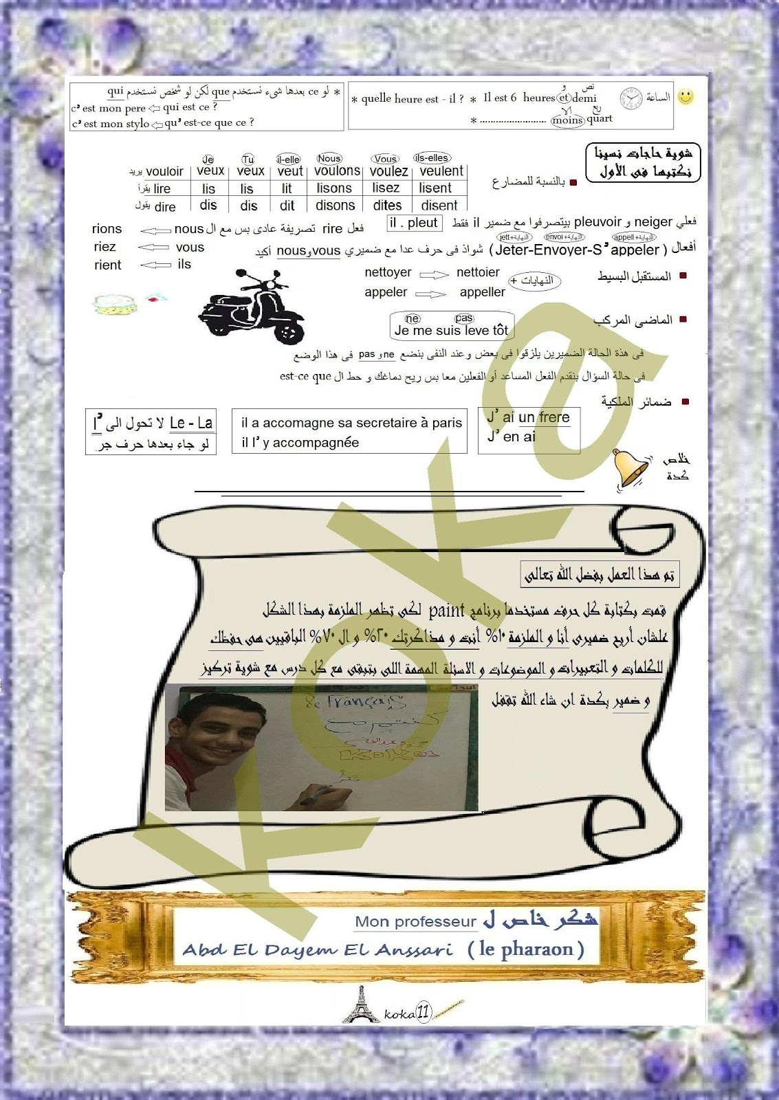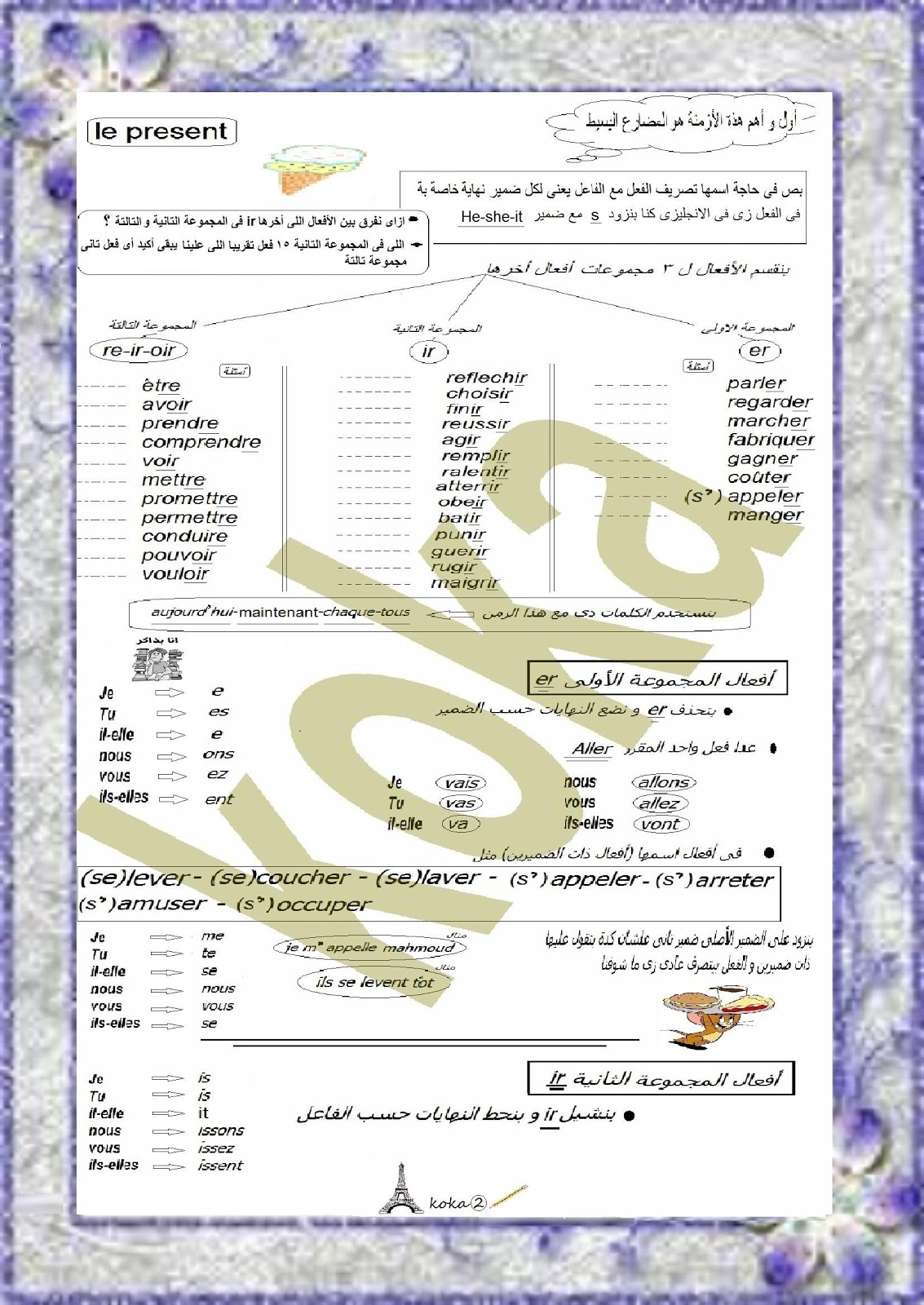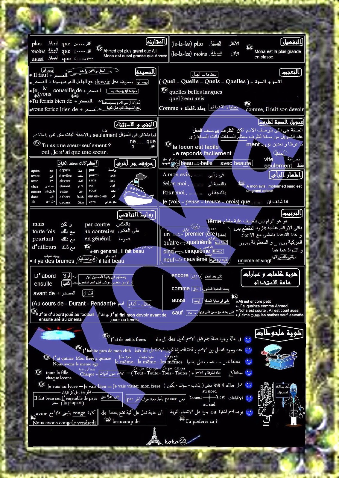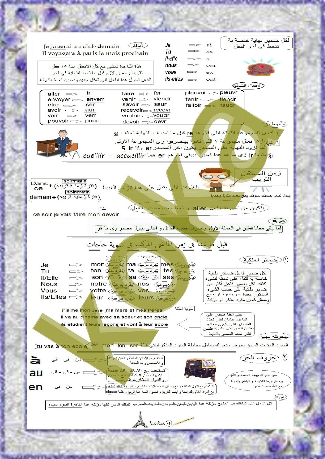 ملخص قواعد اللغه الفرنسيه للصف الاول الثانوى فى ورقتين