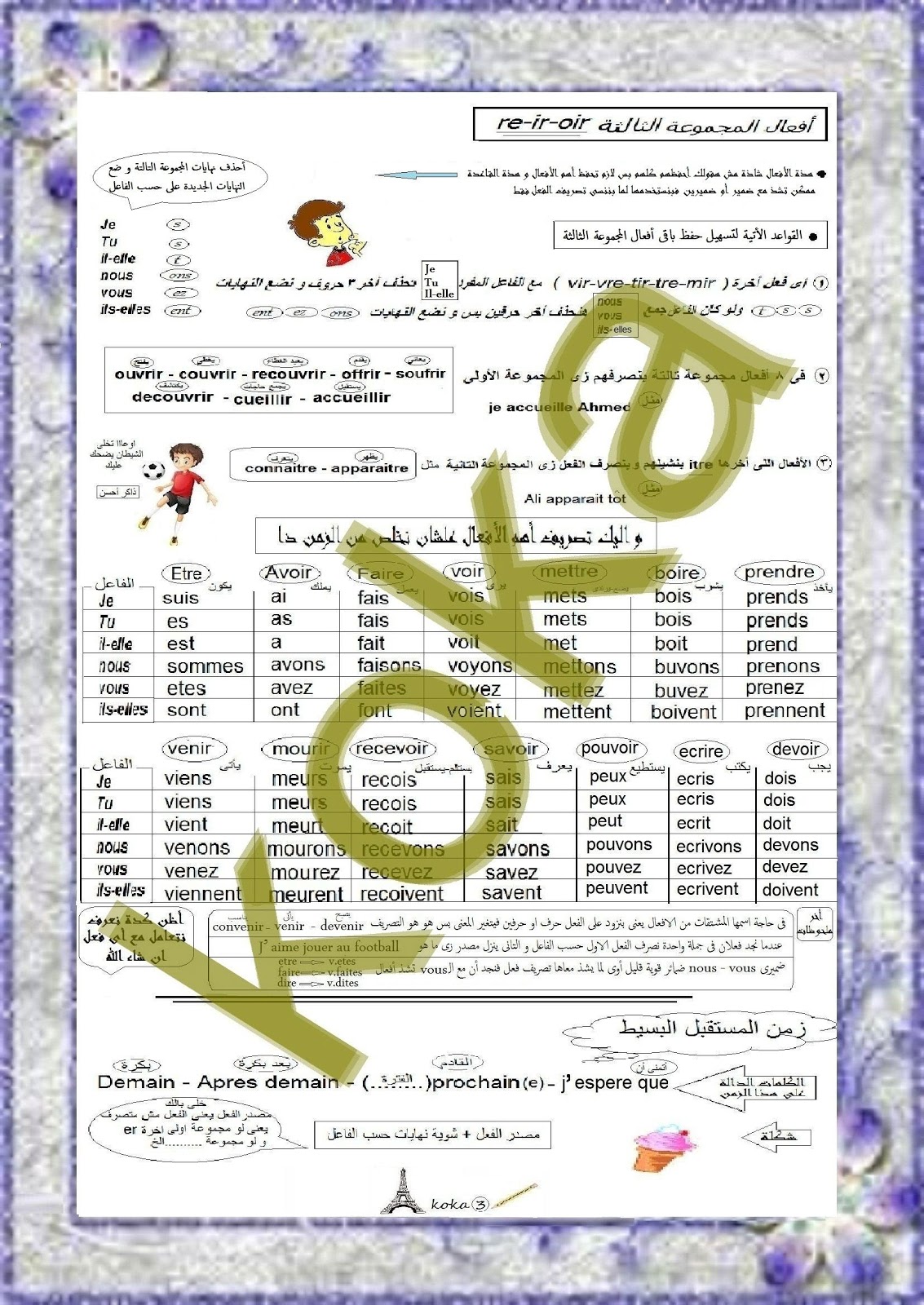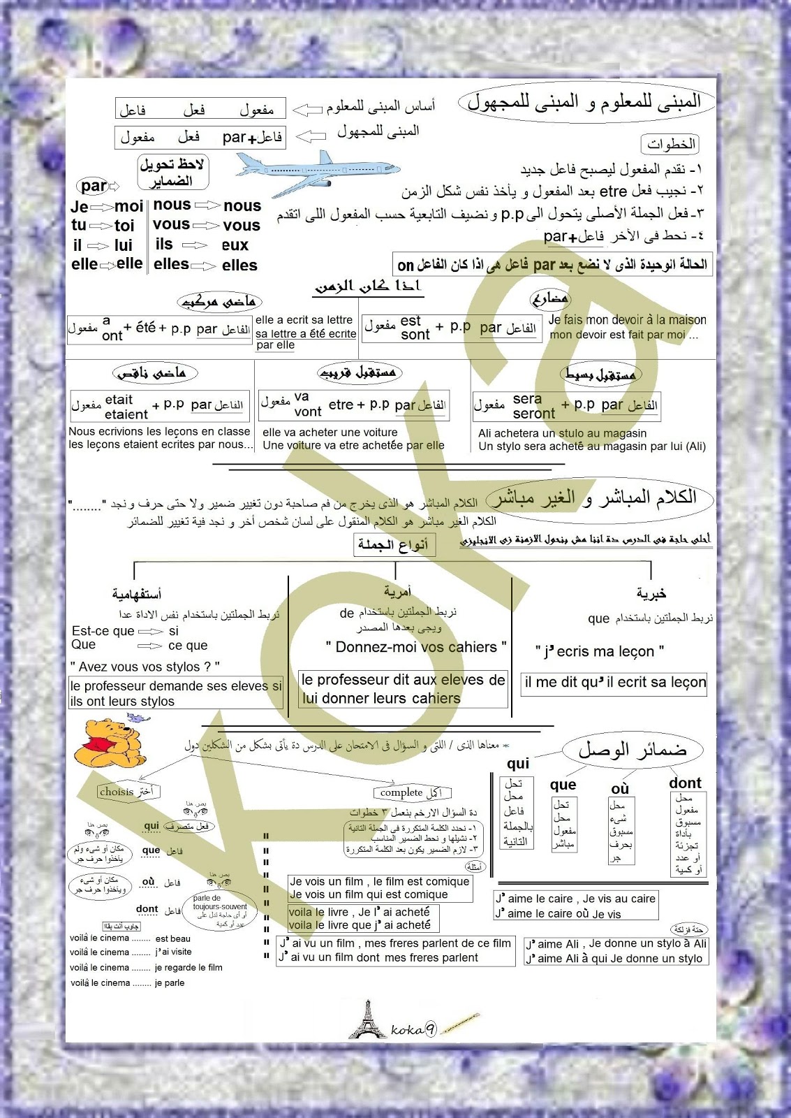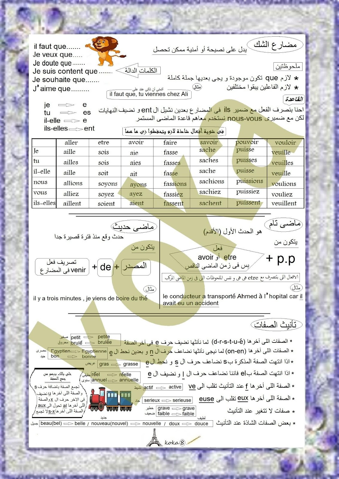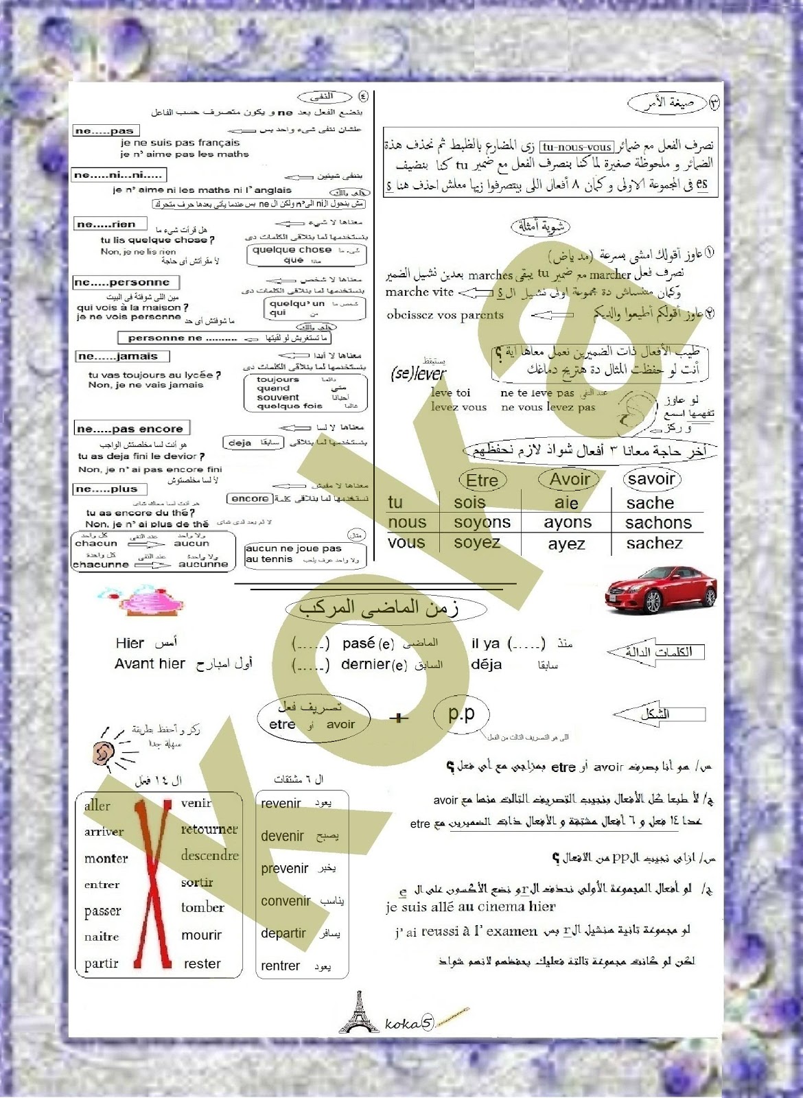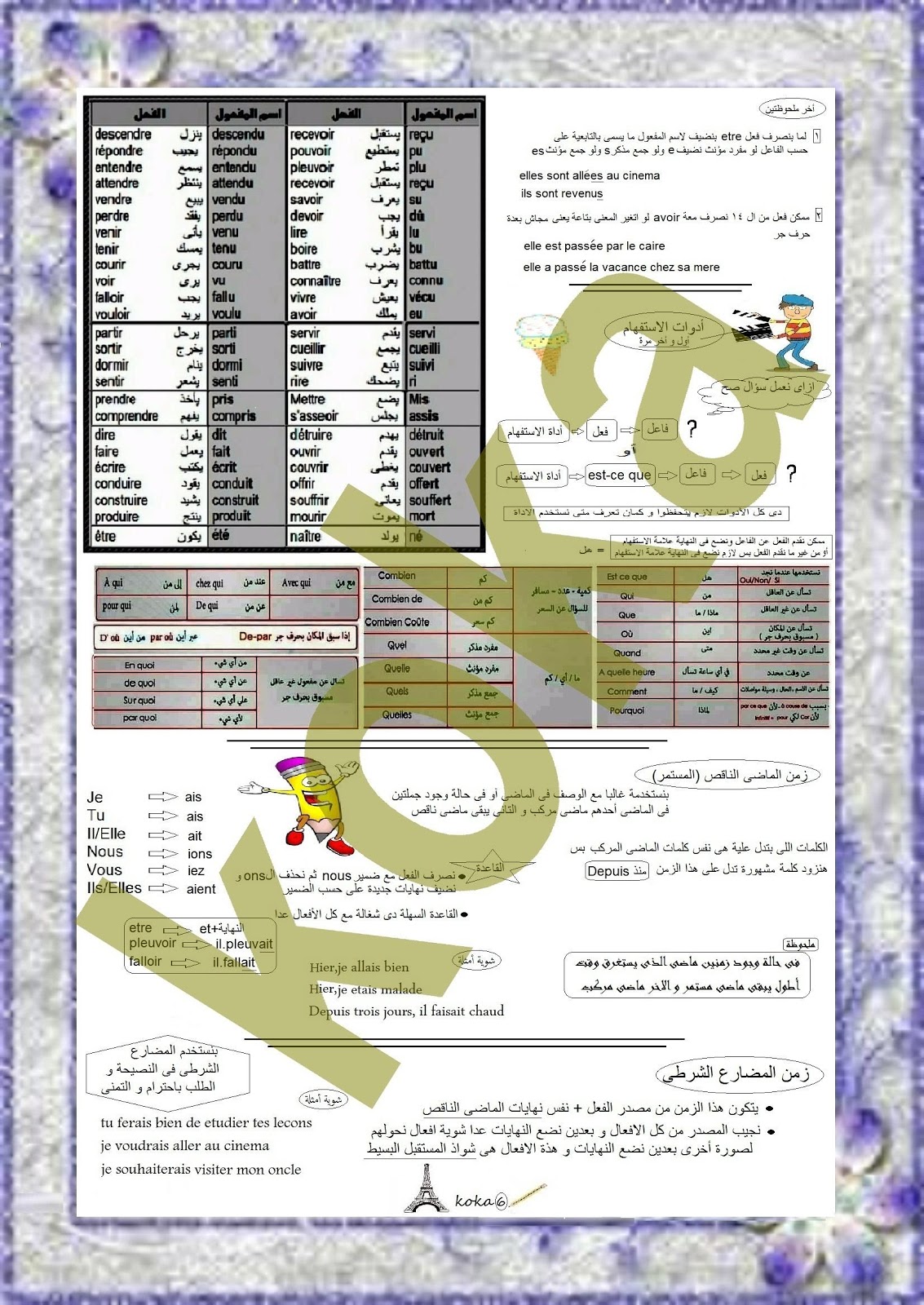 ملخص قواعد اللغه الفرنسيه للصف الاول الثانوى فى ورقتين