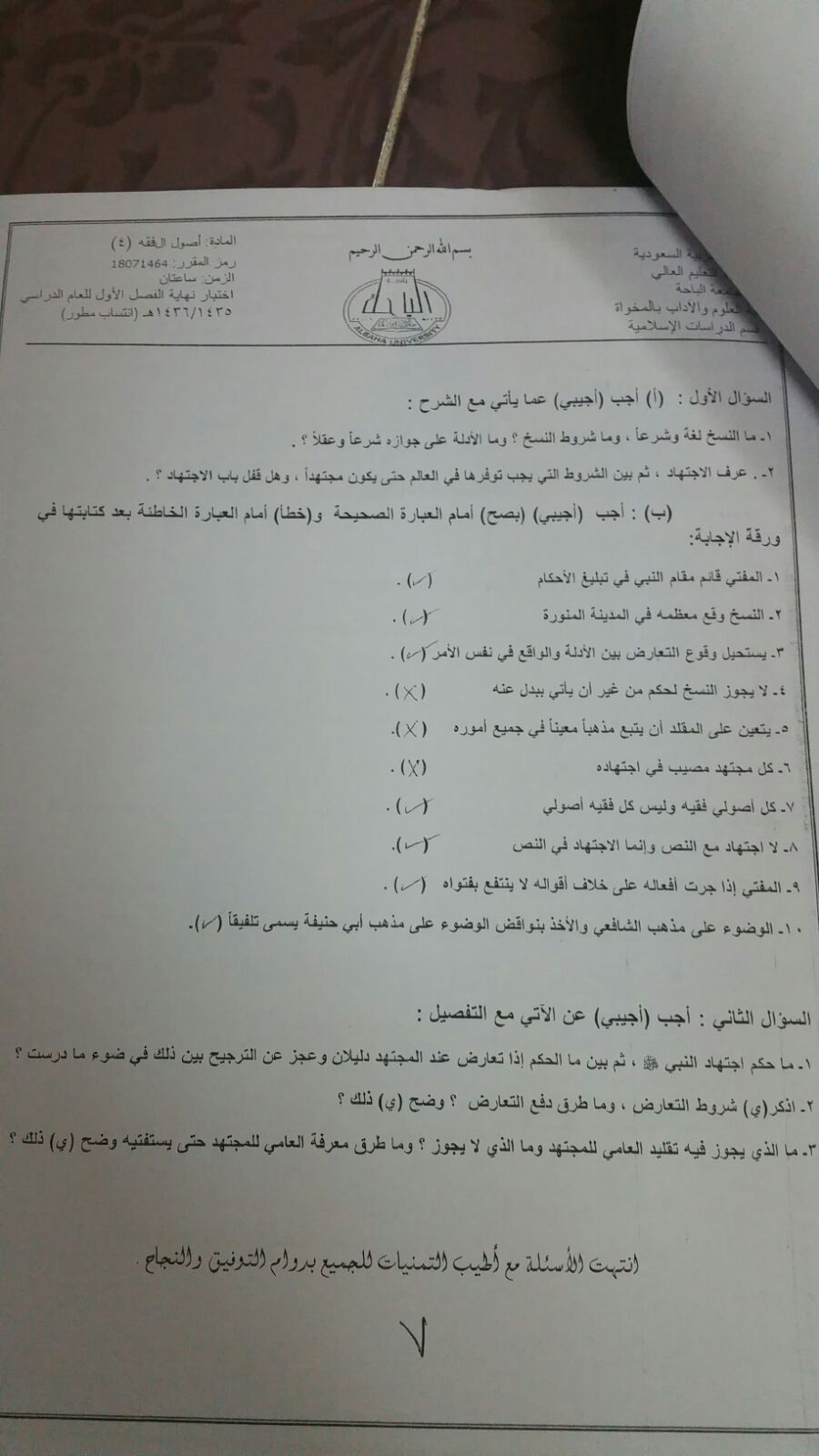 اختبار الفقه 4 الفصل الأول 1435هـ