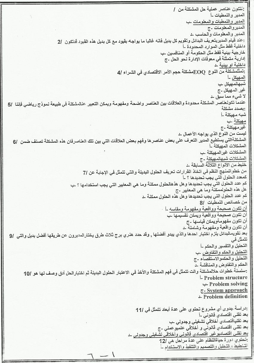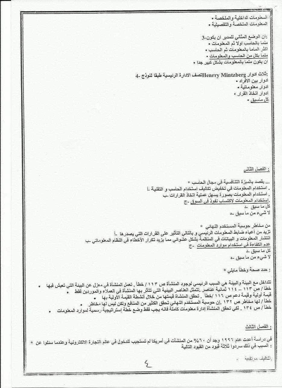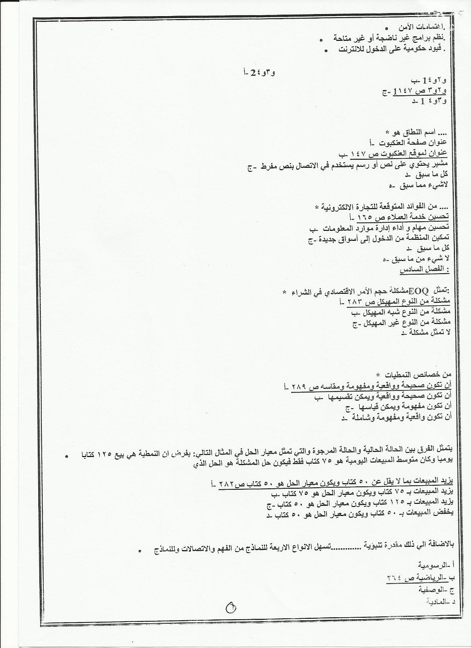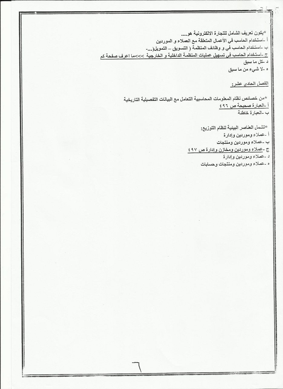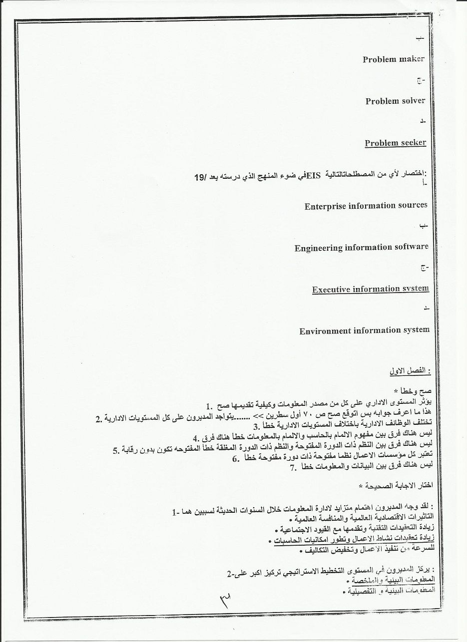 اسئلة اختبار مادة نظم معلومات إدارية BUS 351