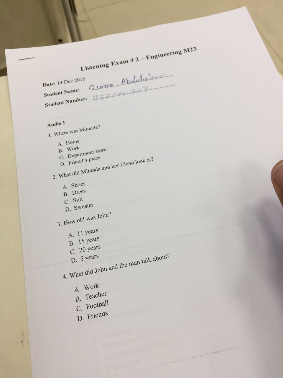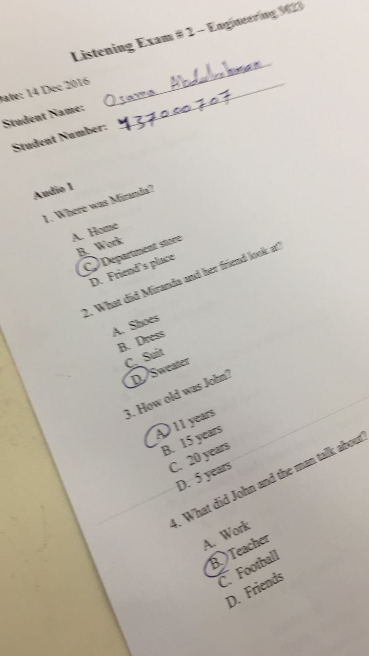 اختبار مادة الانجليزي طلاب السنة التحضيرية هندسة