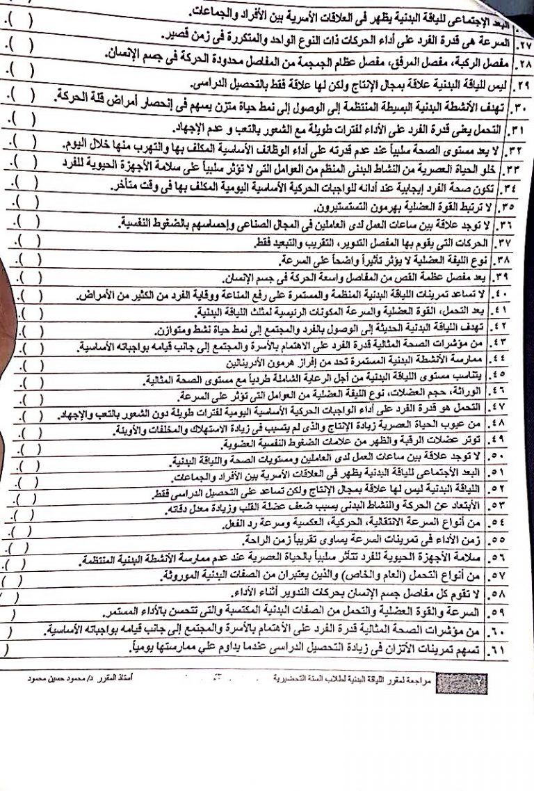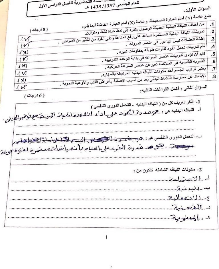 اختبارات اللياقة البدنيه للسنة التحضيرية