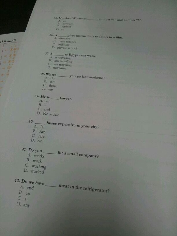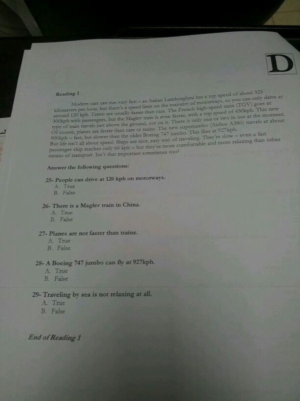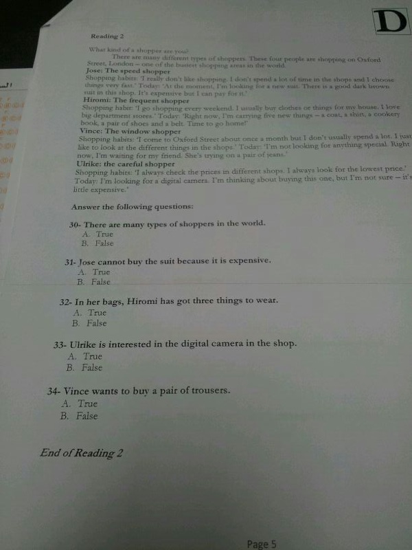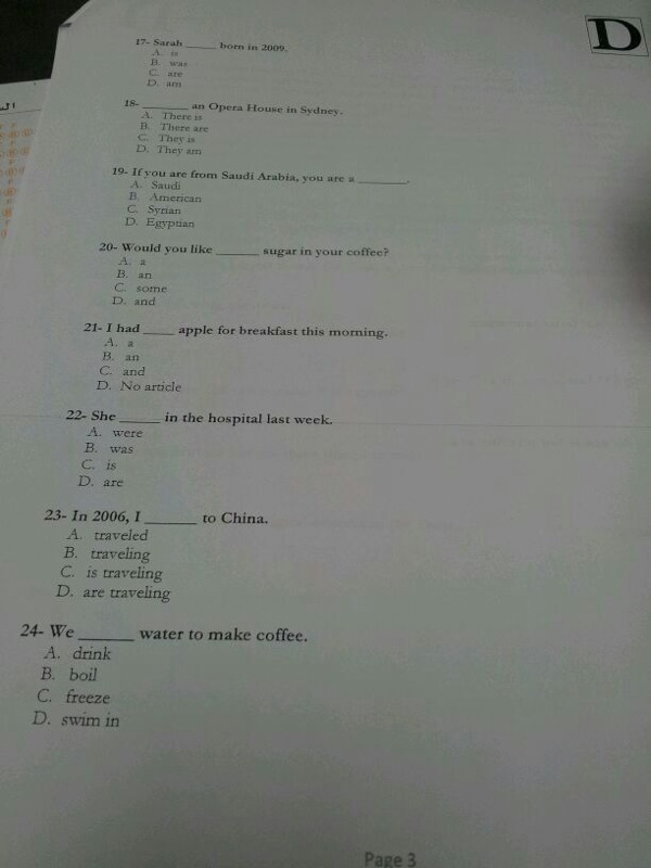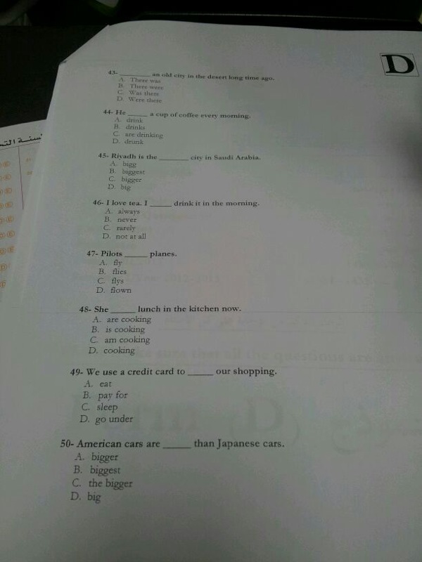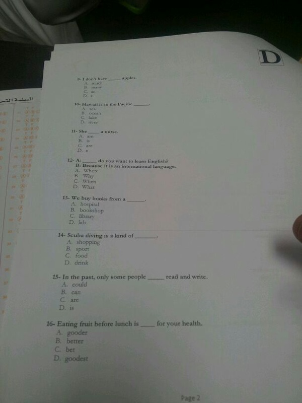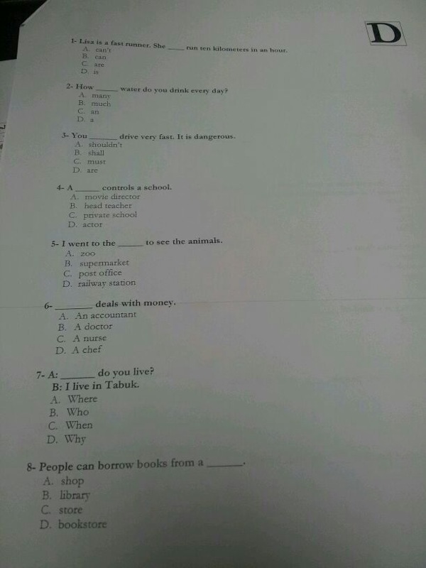 اسئلة اختبار مادة اللغة الانجليزية 1 نموذج (D)