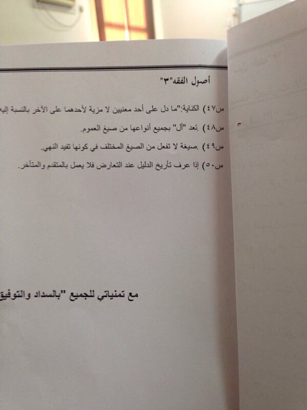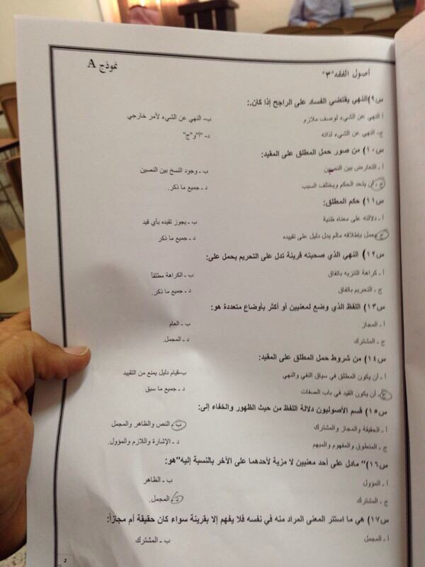 اسئلة اختبار أصول الفقه 3 الفصل الأول 1437هـ نموذج A
