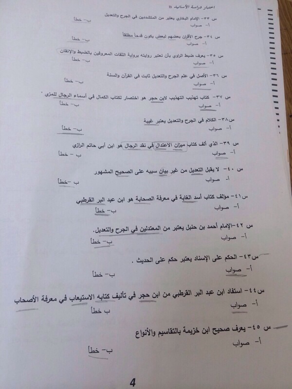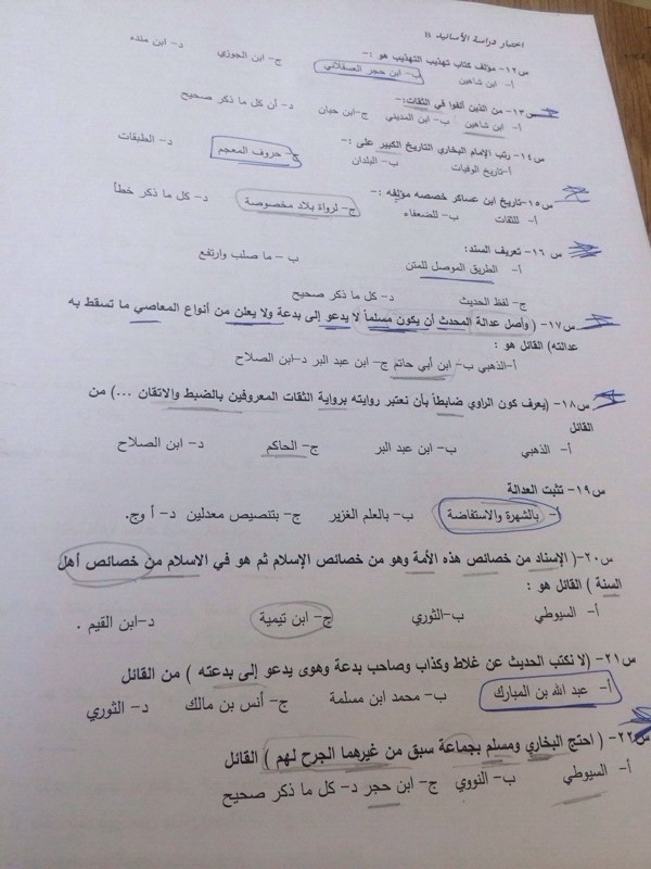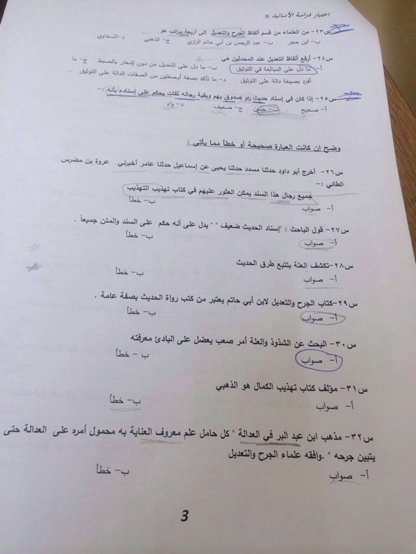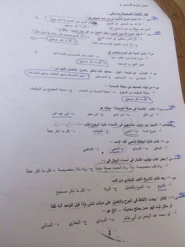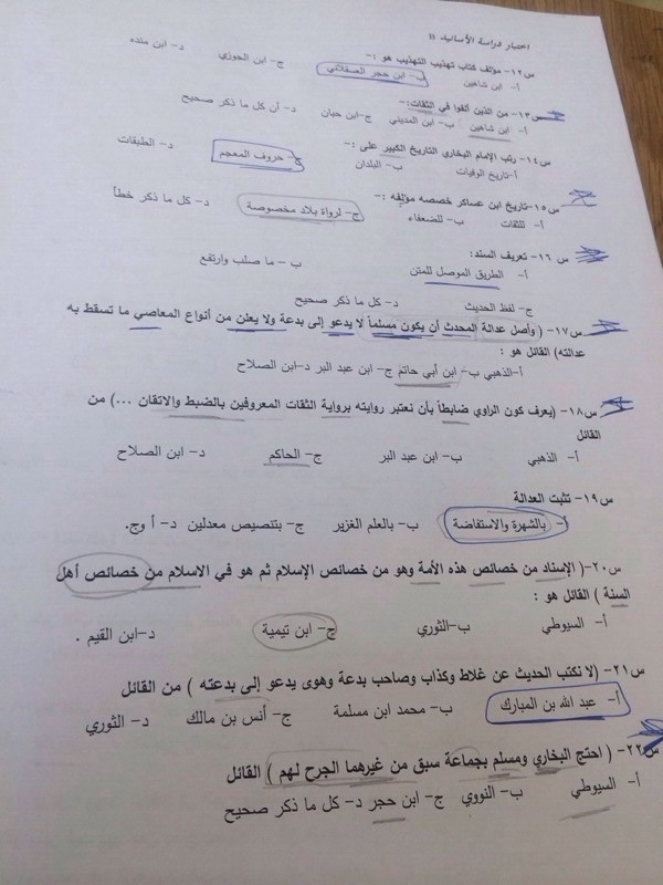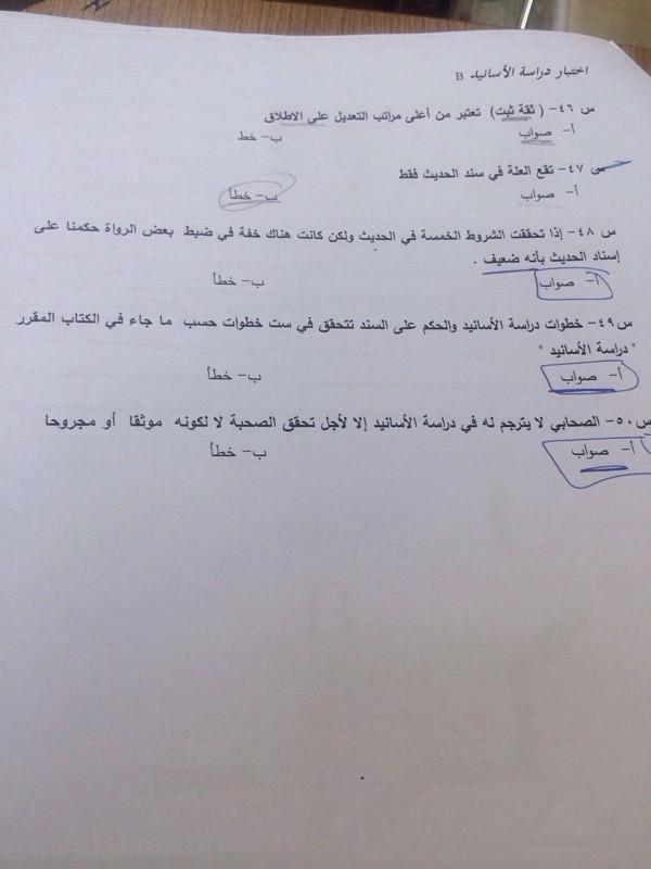 اسئلة الاختبار النهائي لمادة دراسة الاسانيد نموذج B