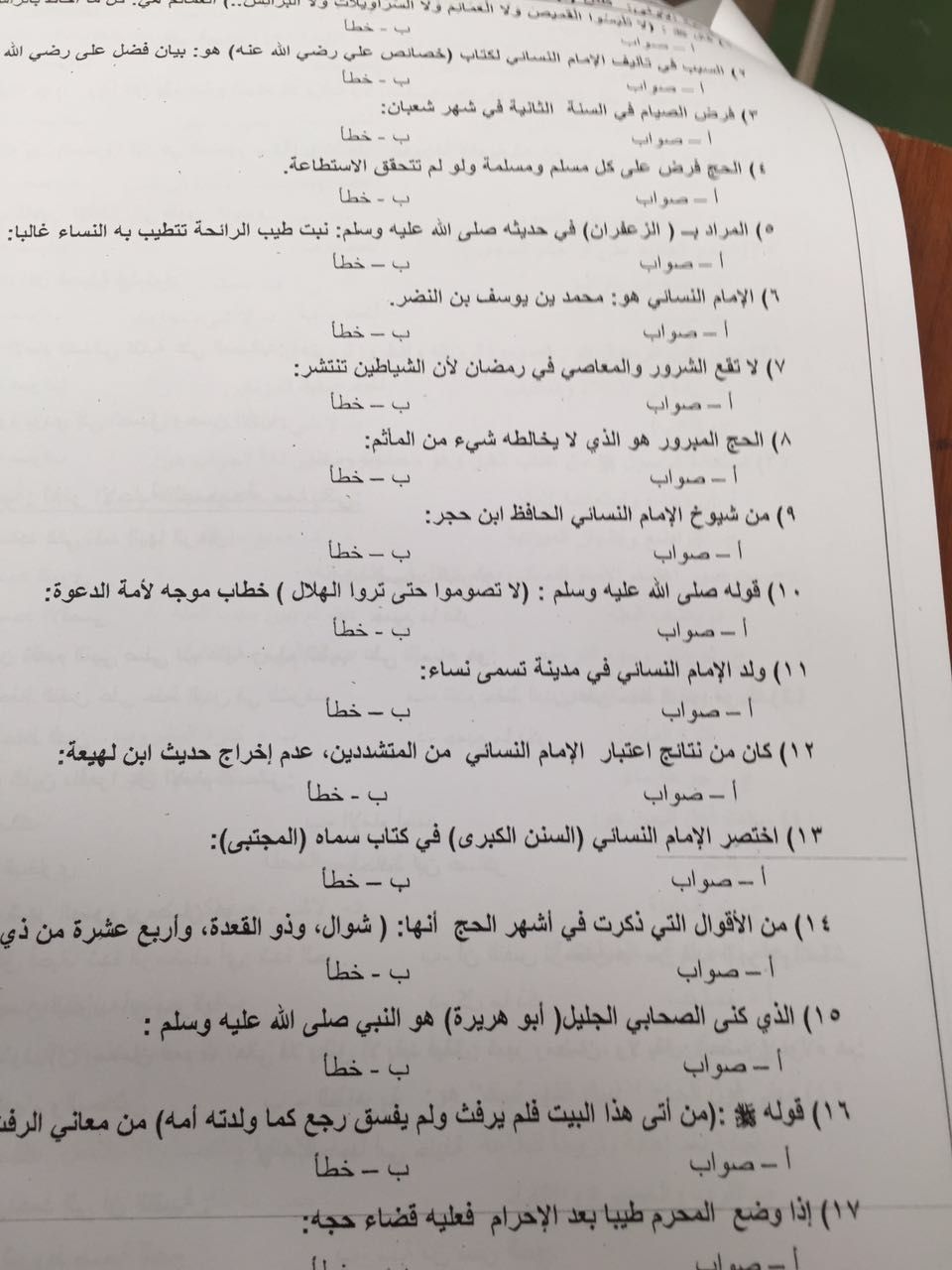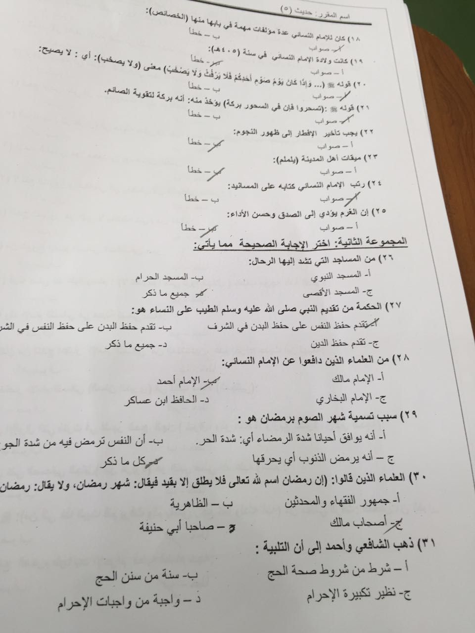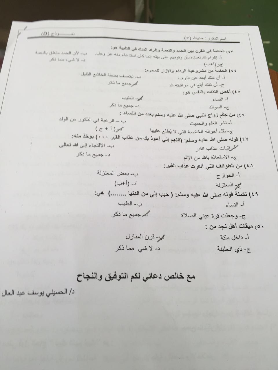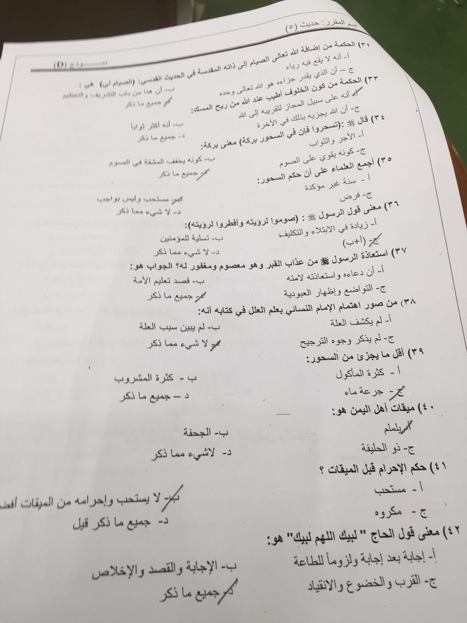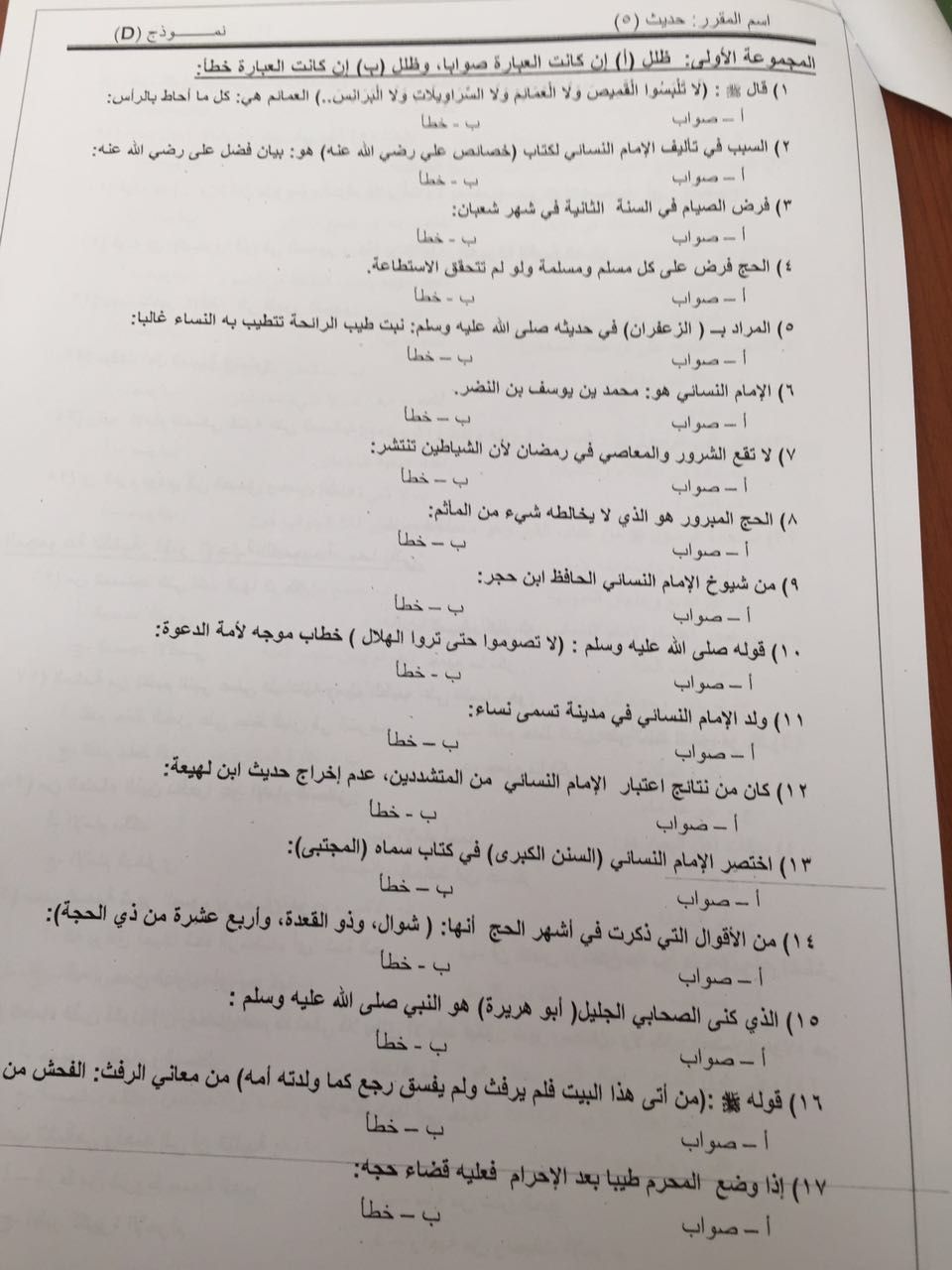 اختبار الحديث 5 الفصل الثاني 1437هـ نموذج D