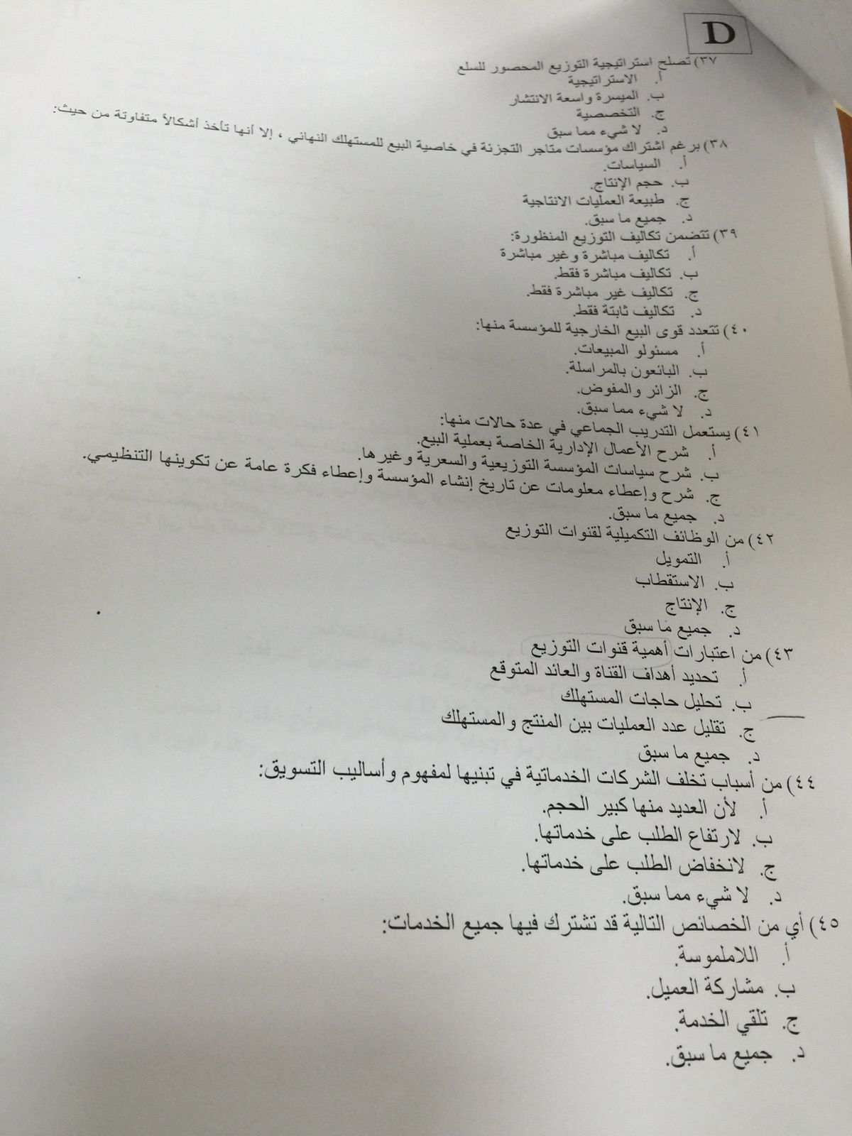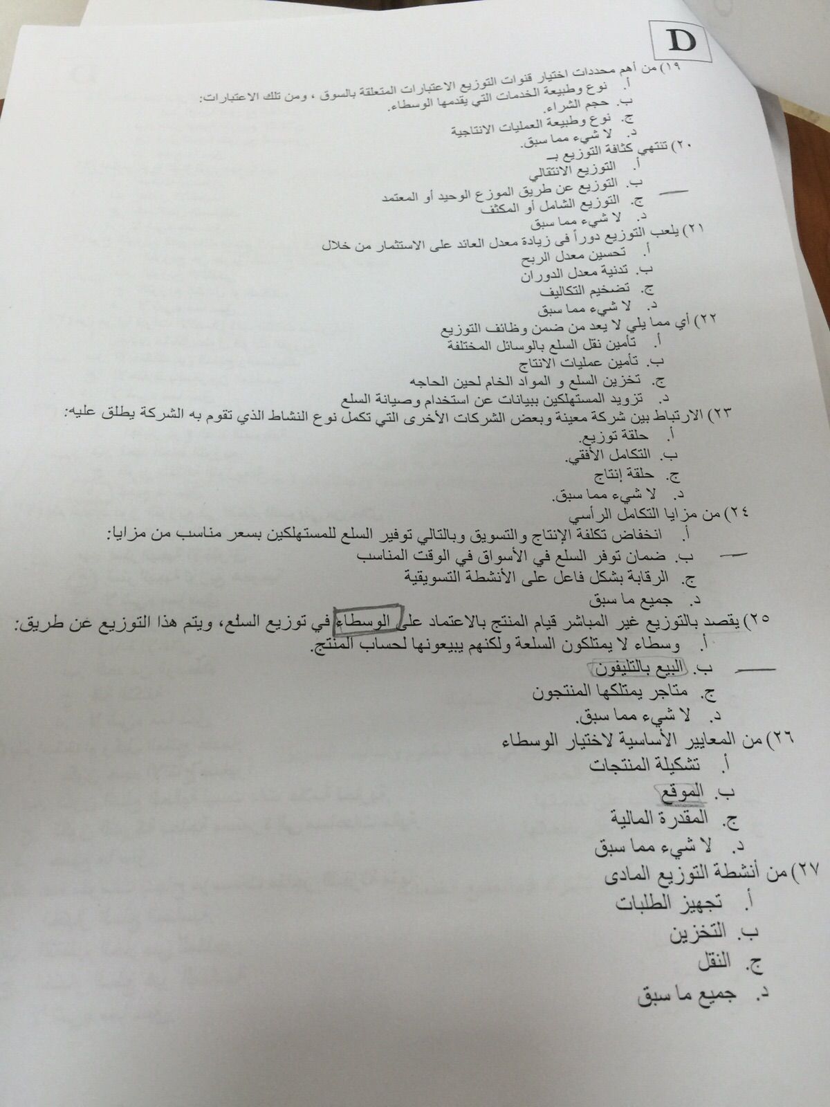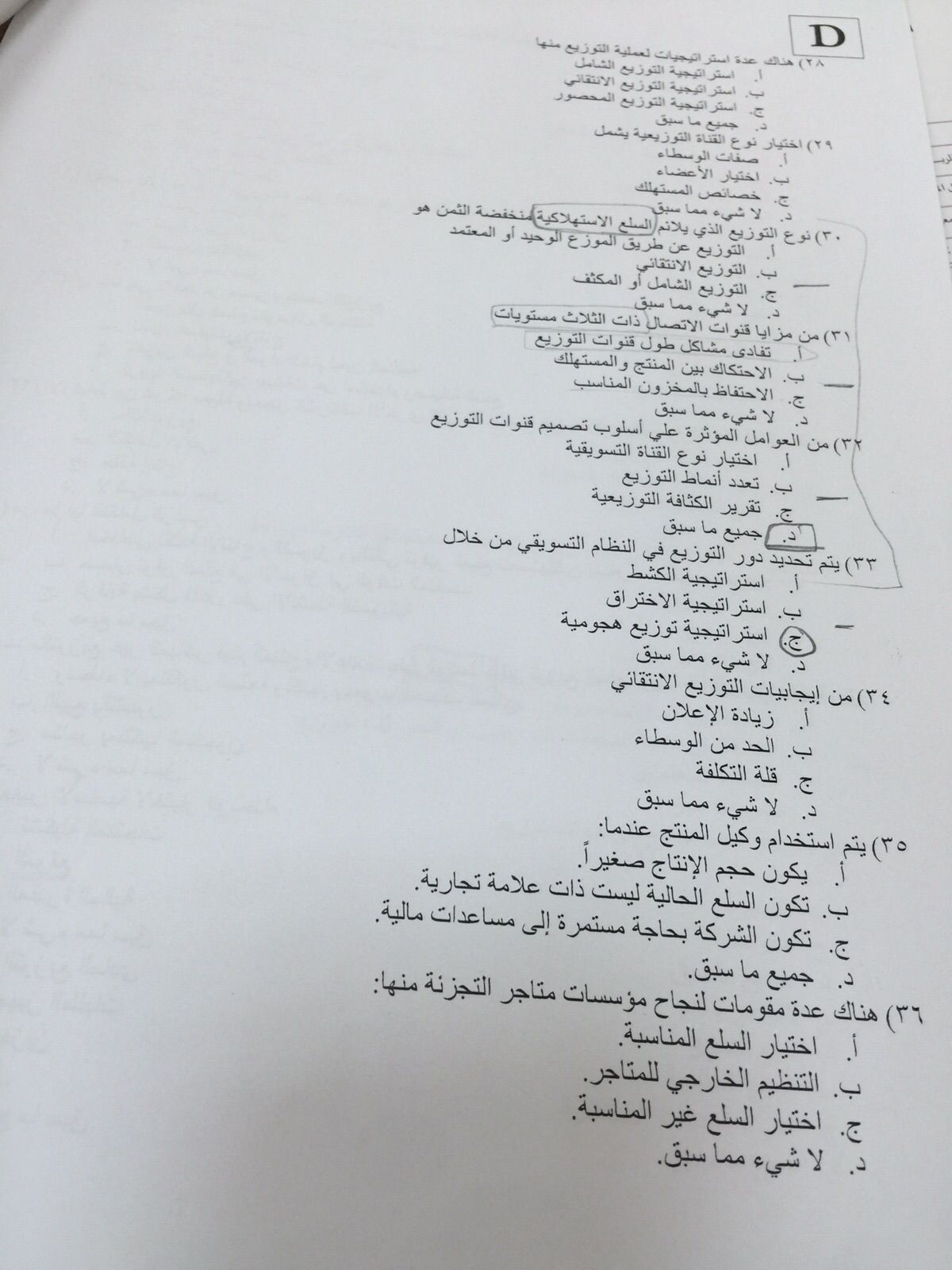 اختبار إدارة التوزيع الفصل الأول 1437هـ نموذج D