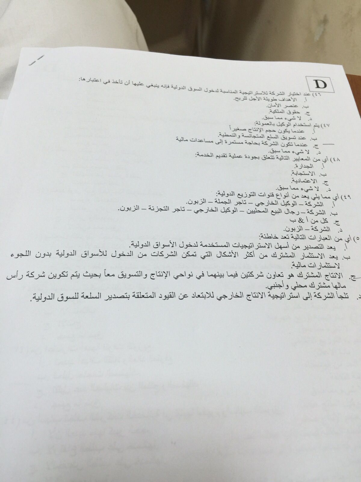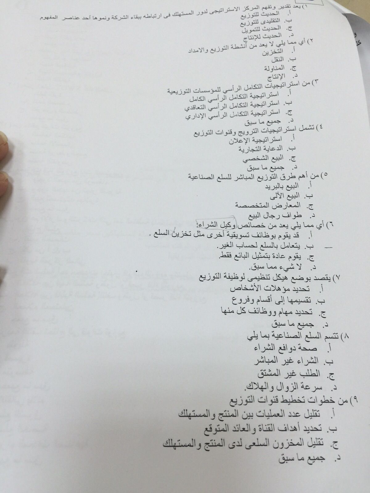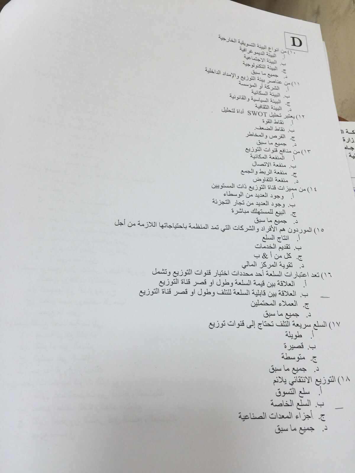 اختبار إدارة التوزيع الفصل الأول 1437هـ نموذج D