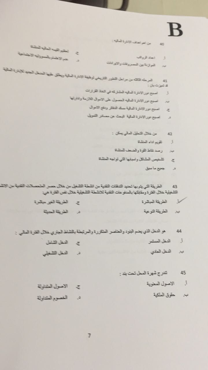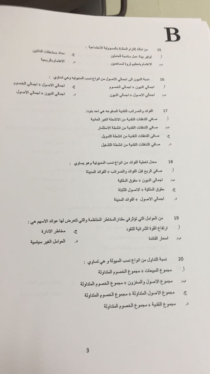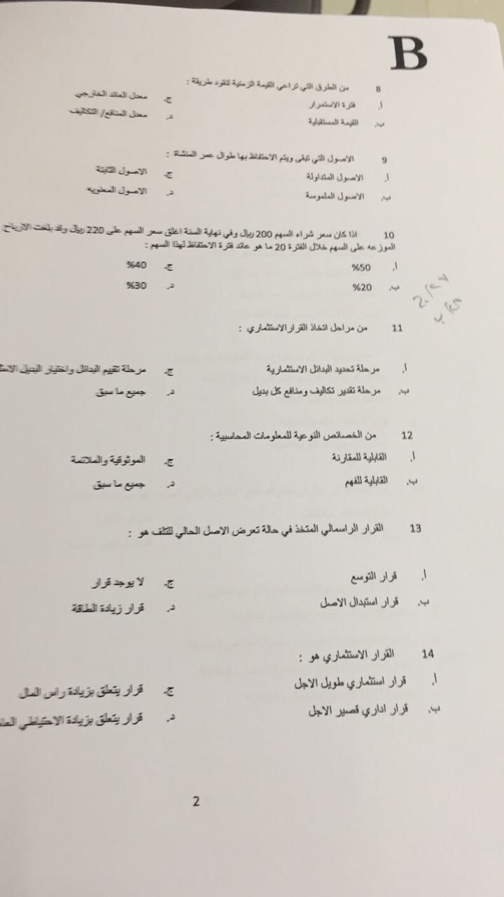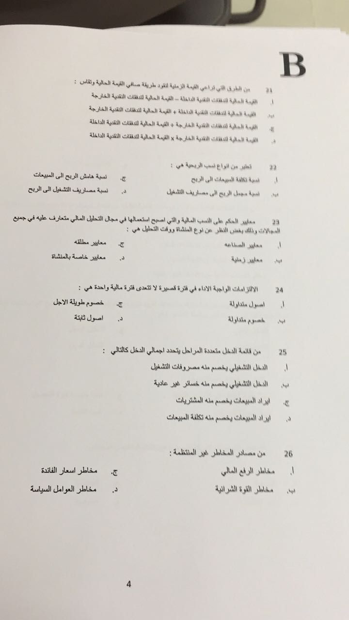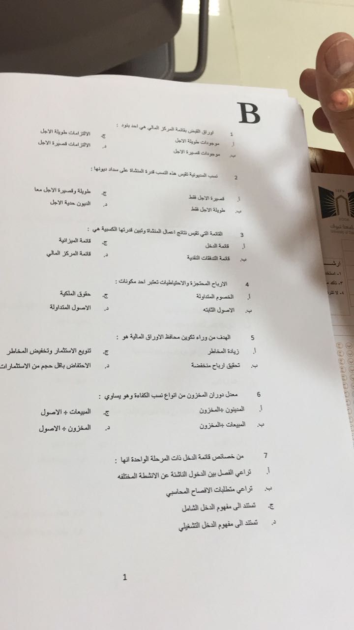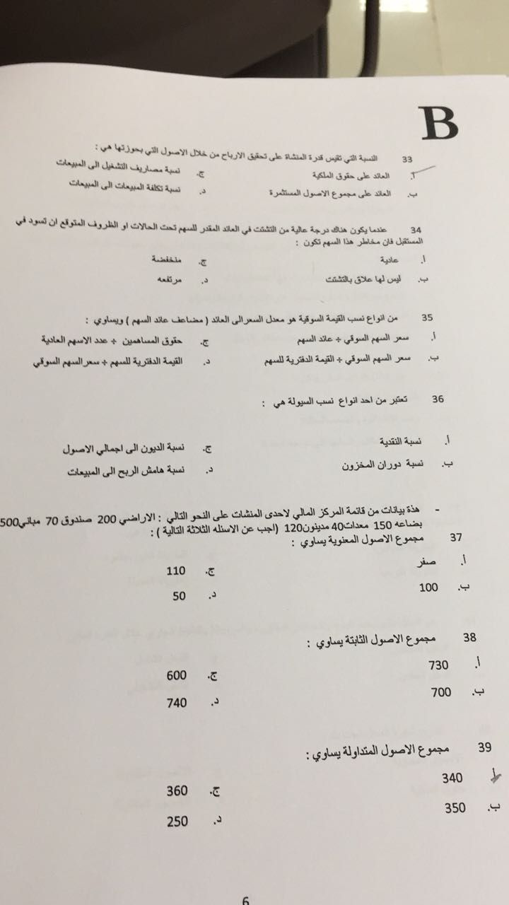 اسئلة مبادئ المالية الفصل الثاني 1438هـ نموذج B
